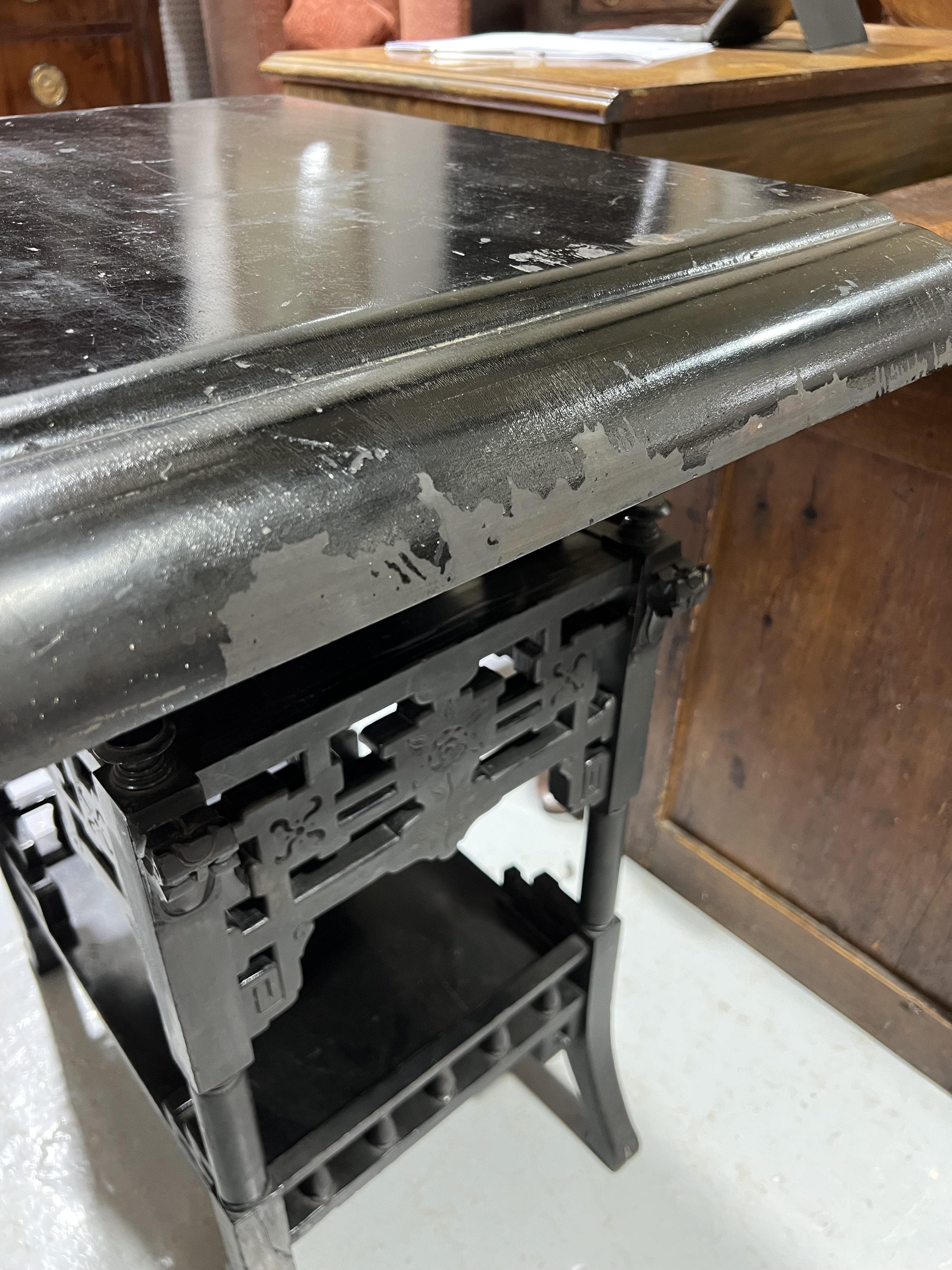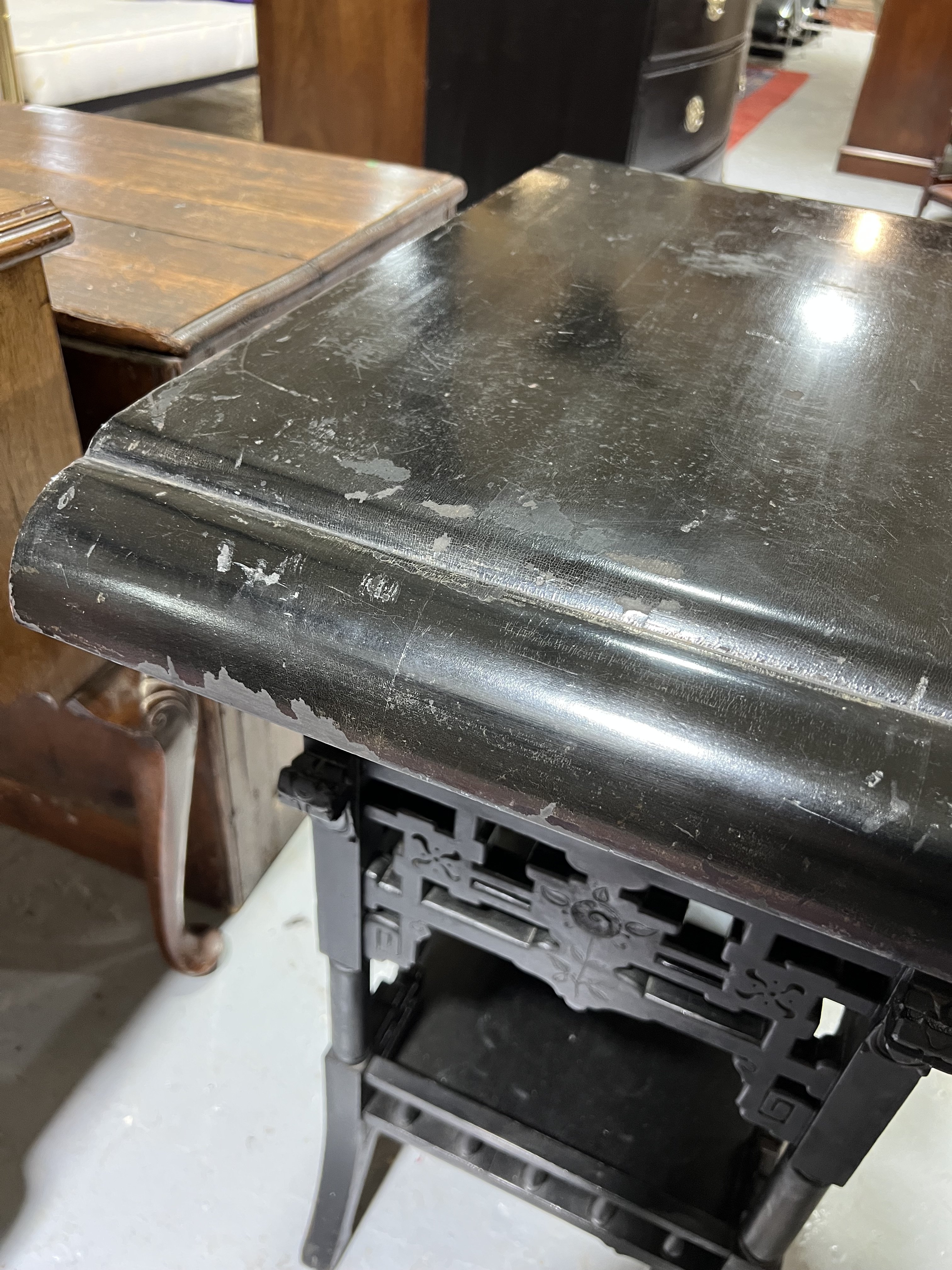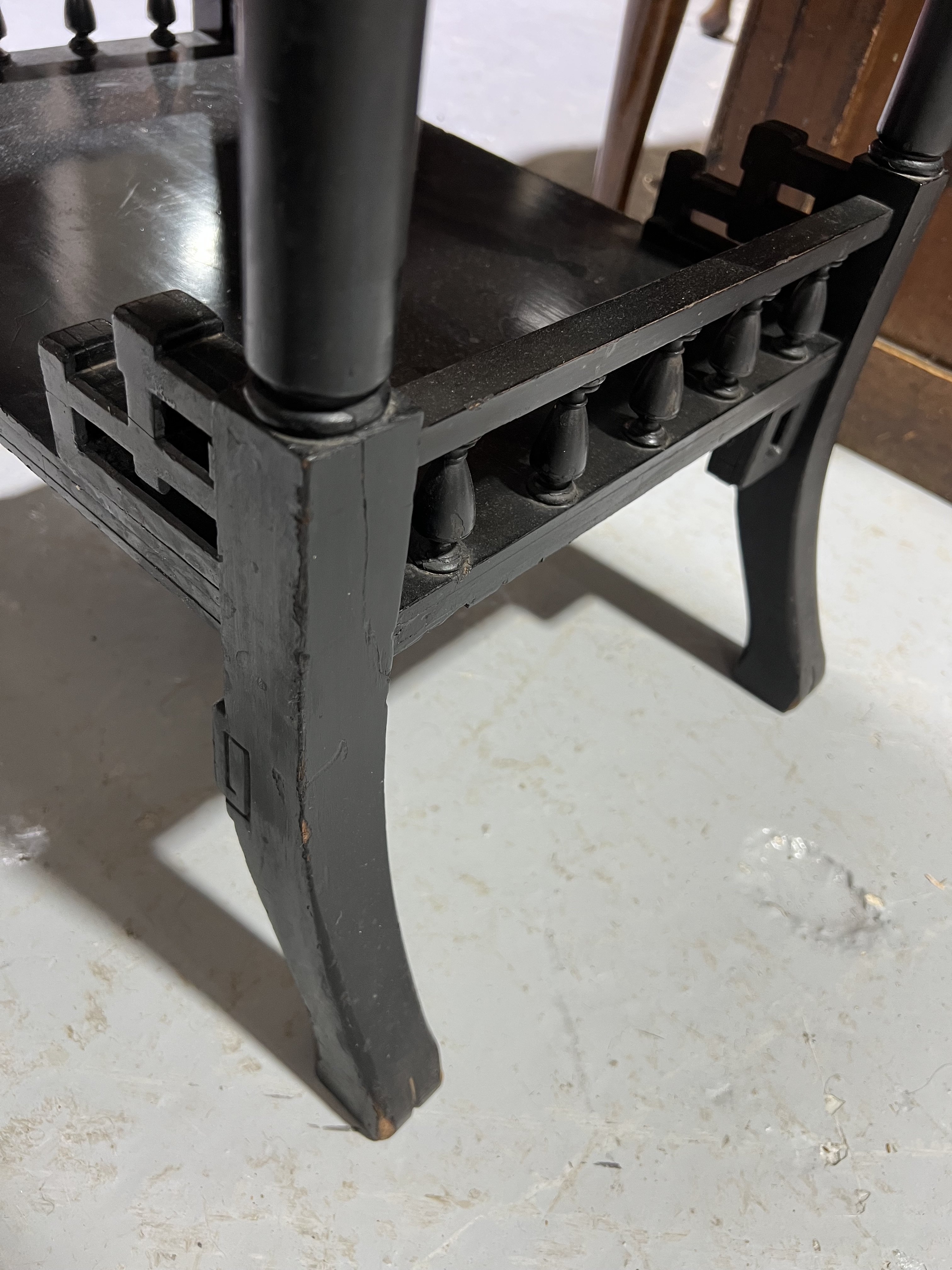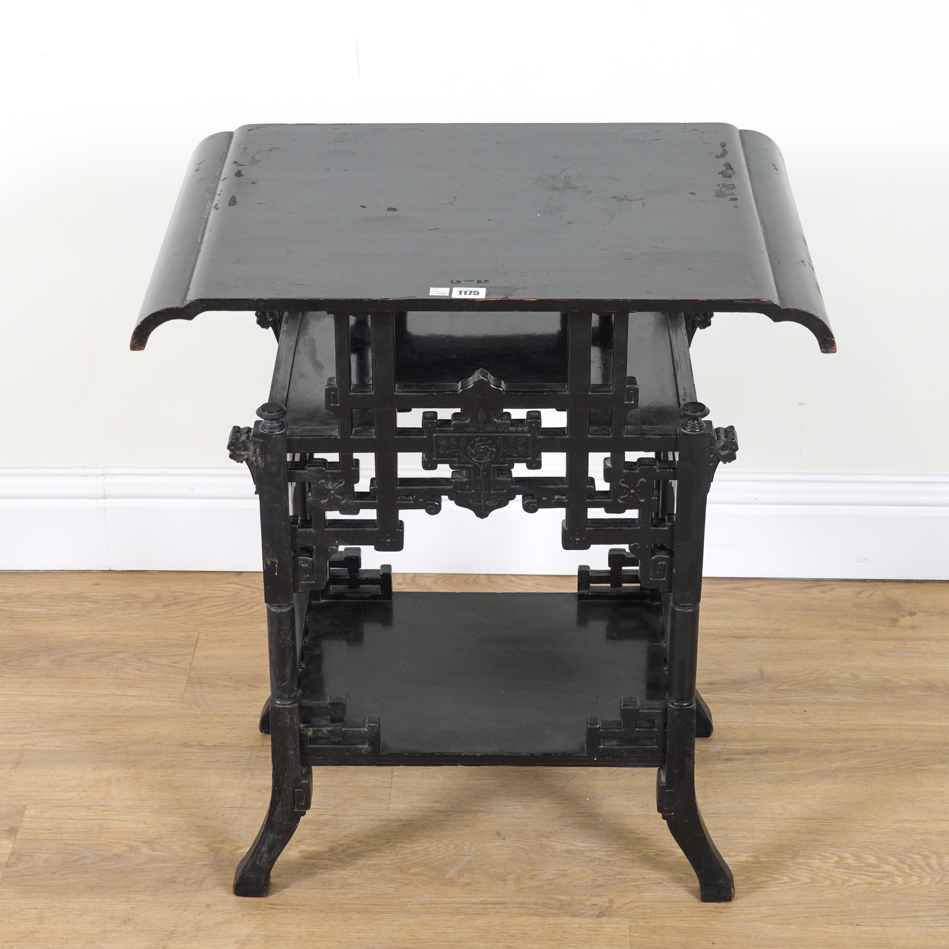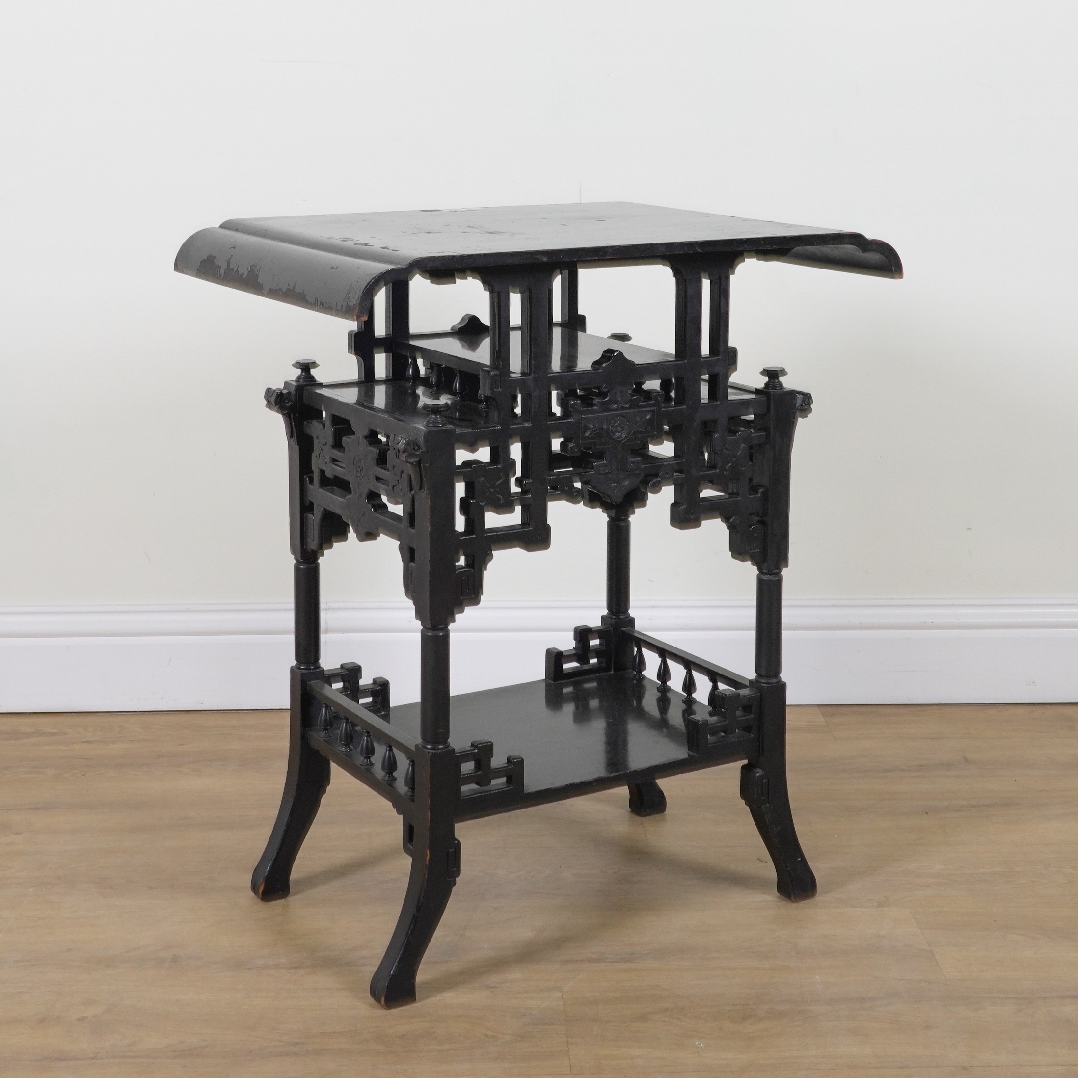 POSSIBLY EW. GODWIN; AN EARLY 20TH CENTURY EBONISED EASTERN INFLUENCED OCCASIONAL TABLE