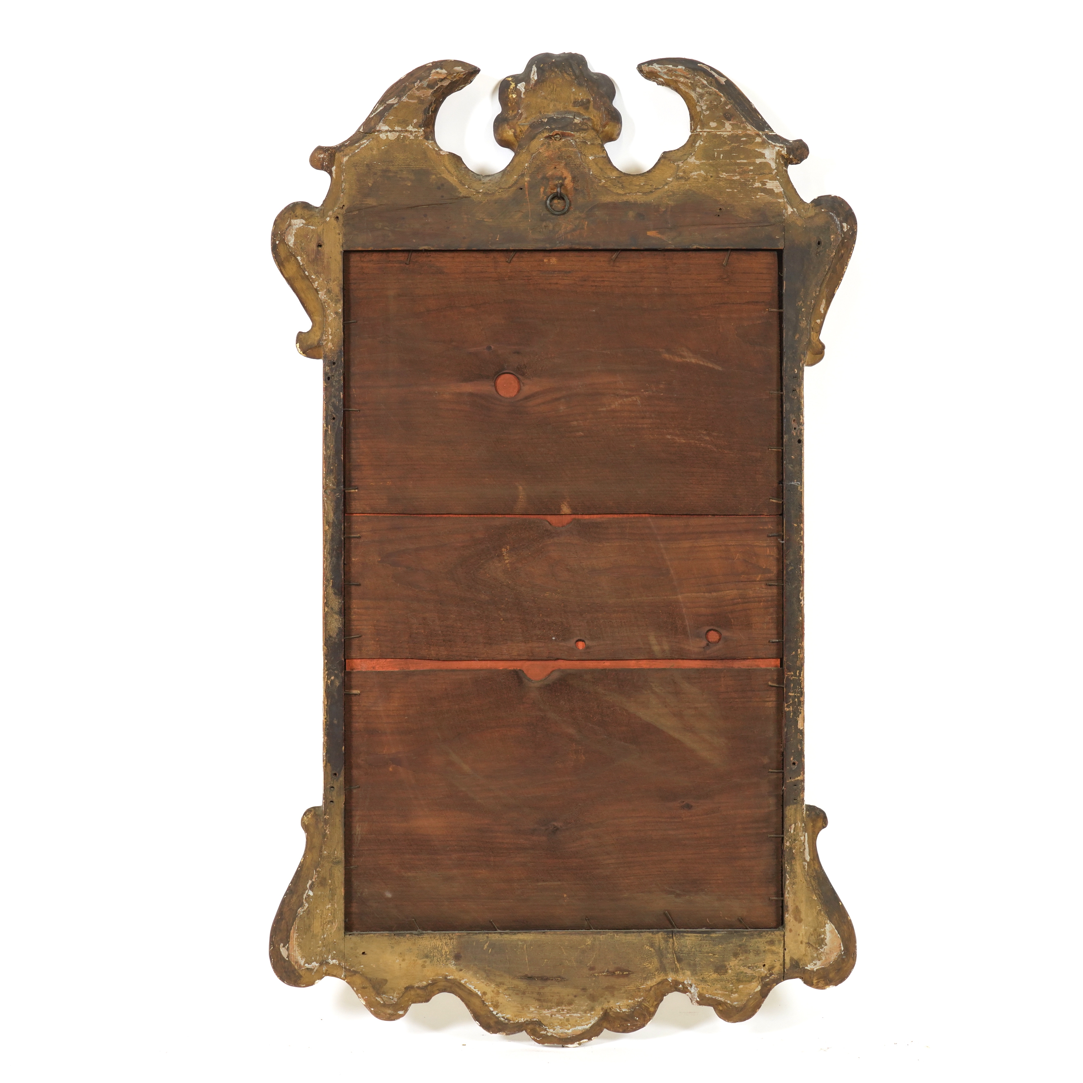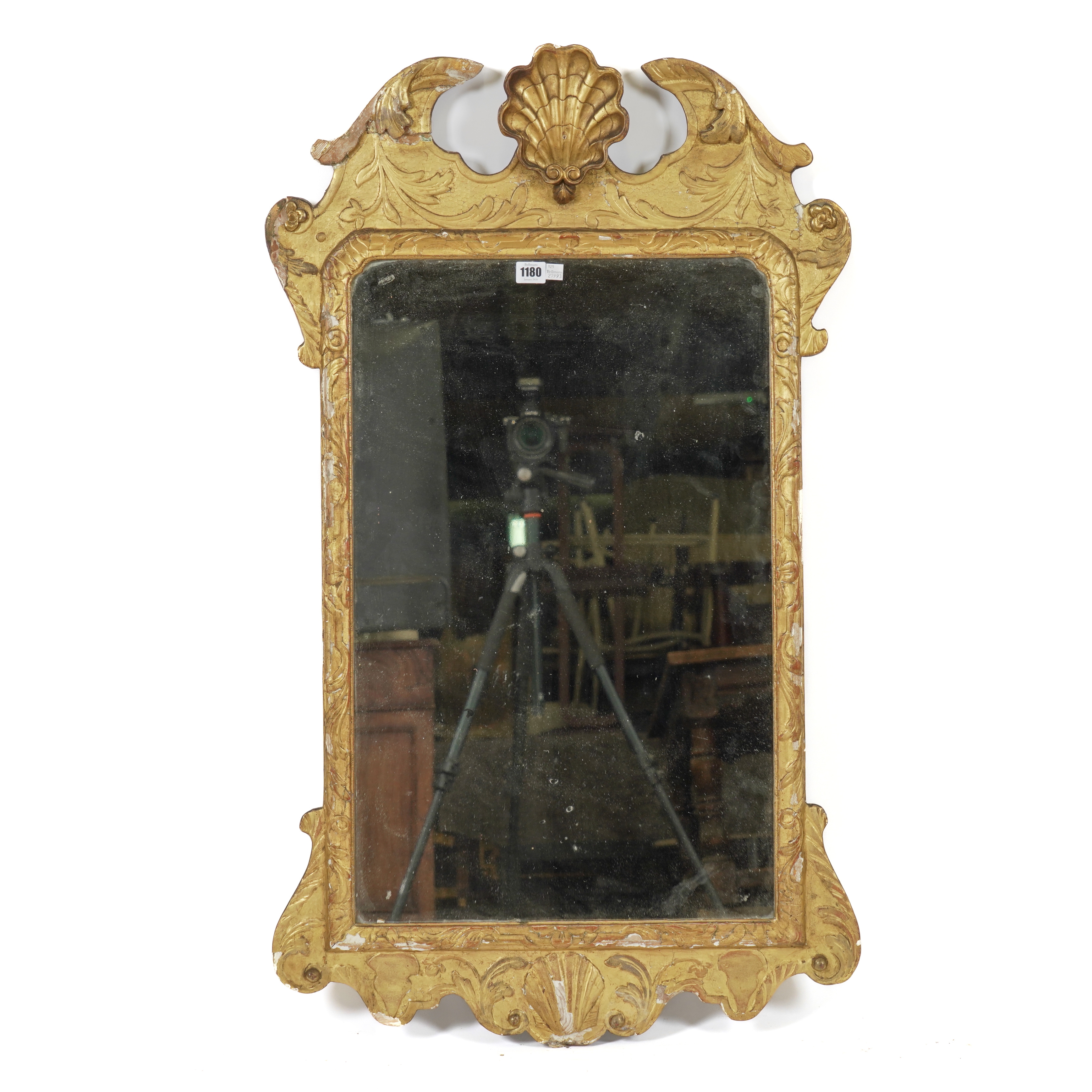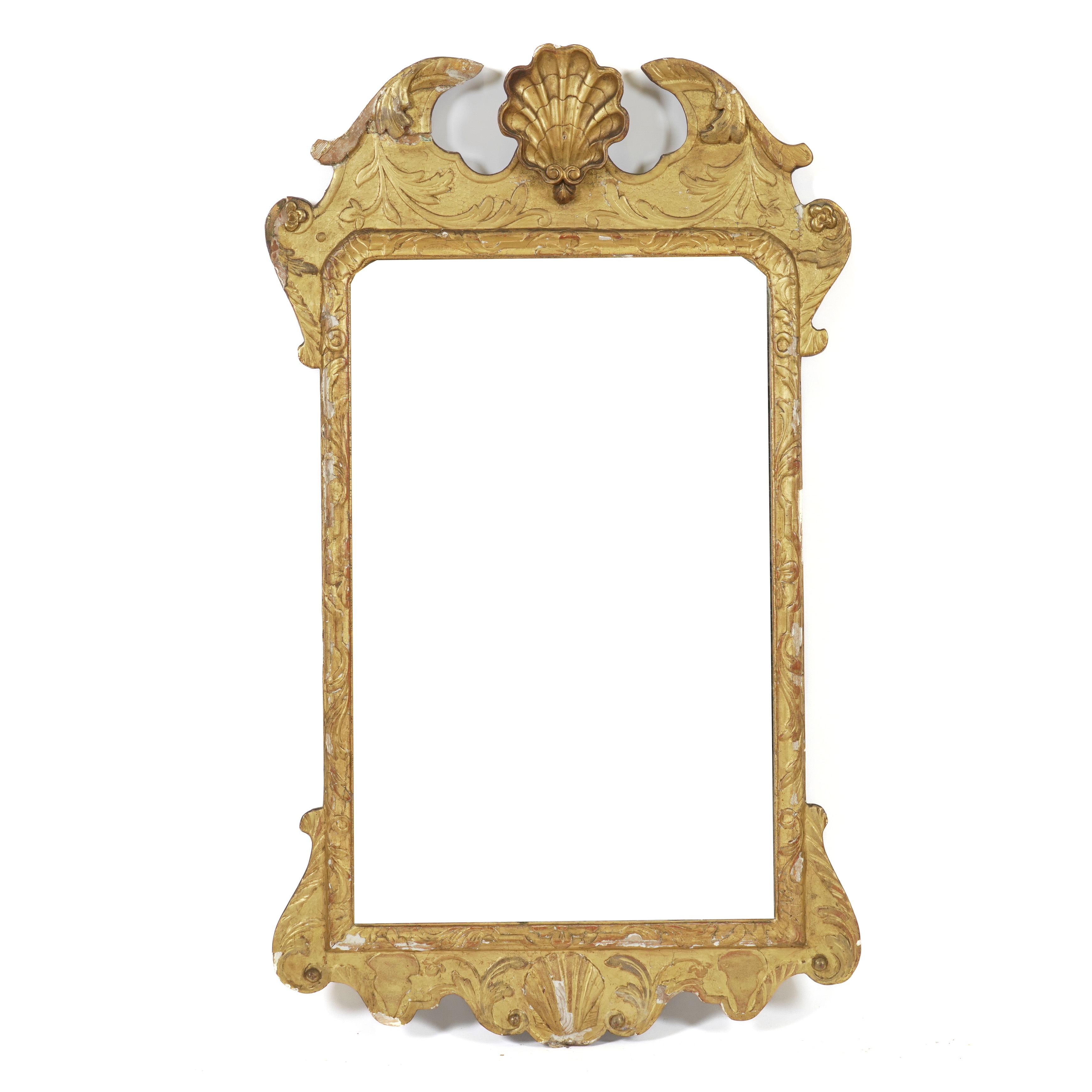 With broken arch frieze centred with a relief shell above a foliate chased frame, 62cm wide; 106cm high