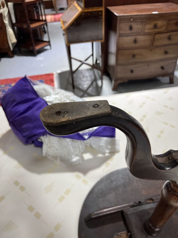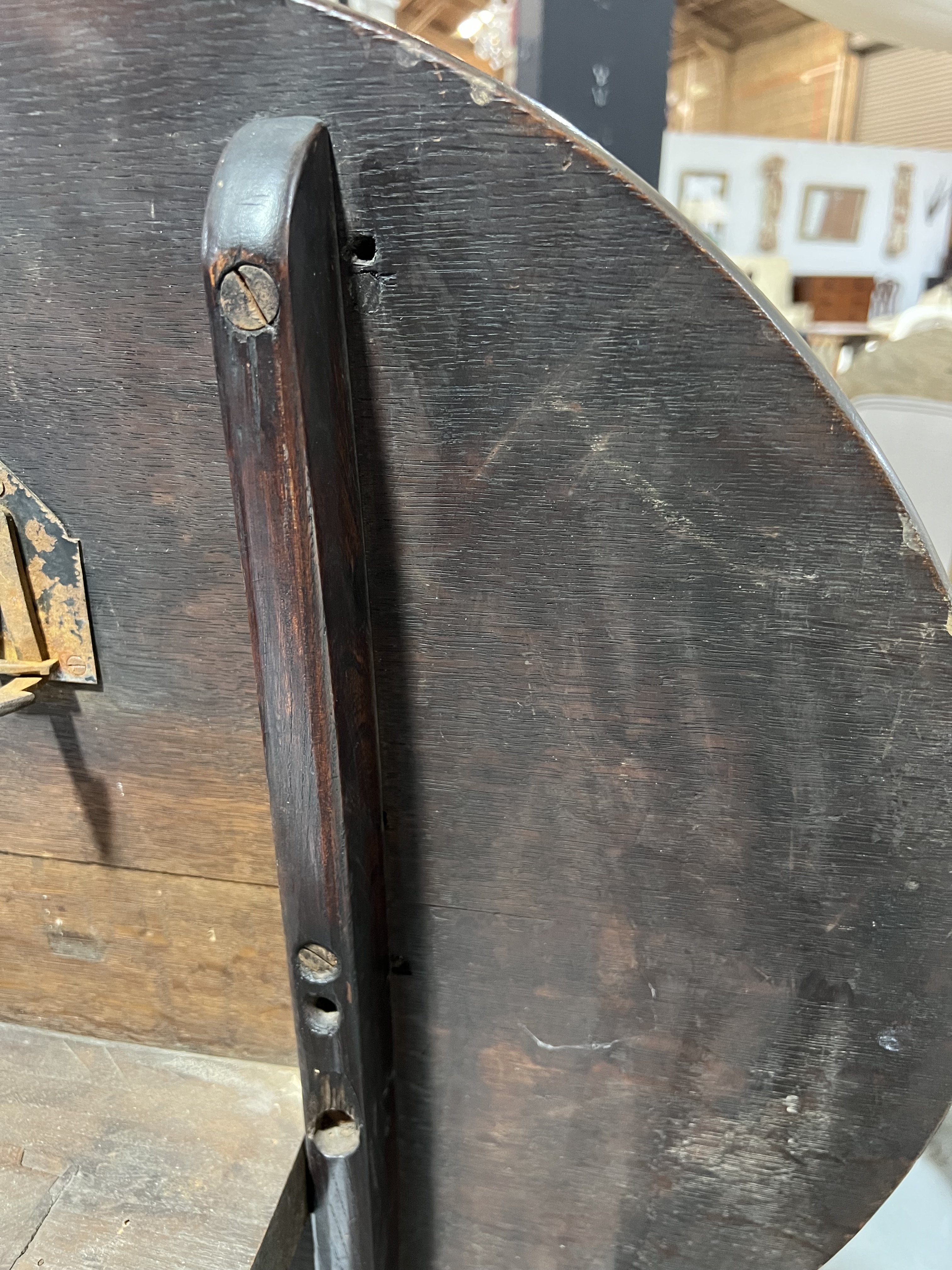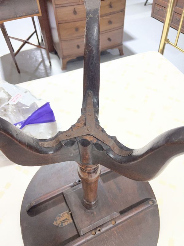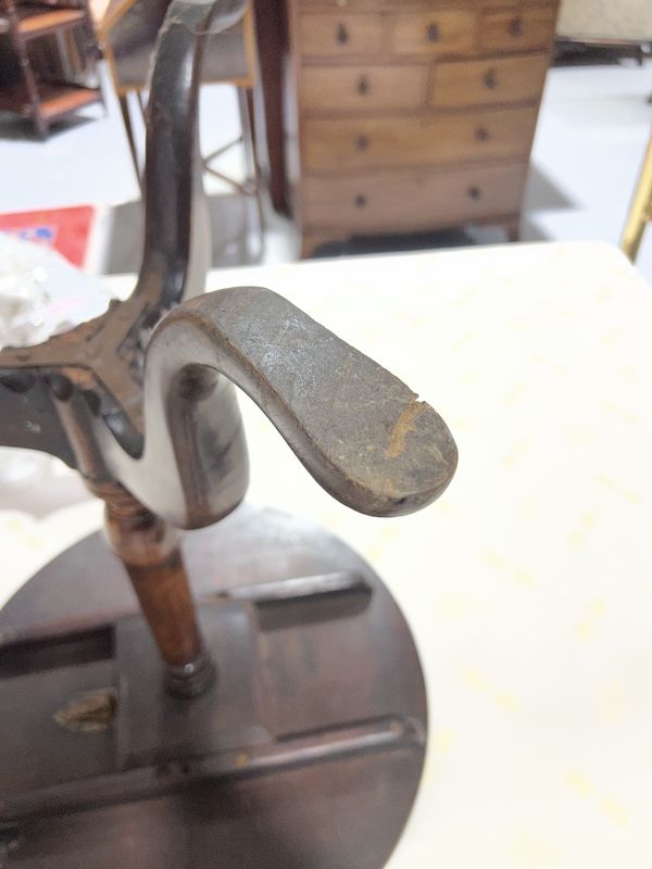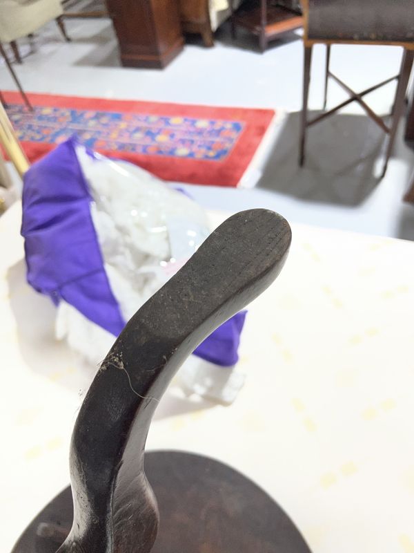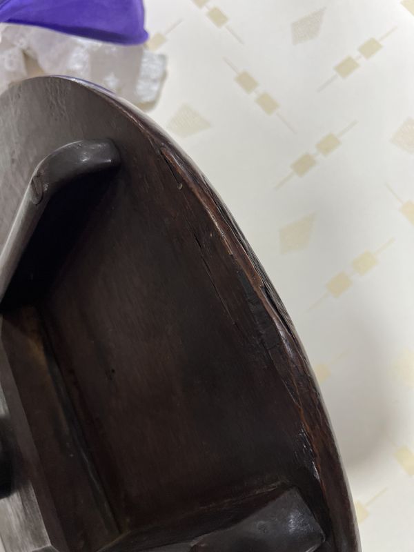 old marks and scratches present, split running across the top, some small chips to the top, no signs of any breaks to the end of supports, one foot fitted with extra pad, see images.