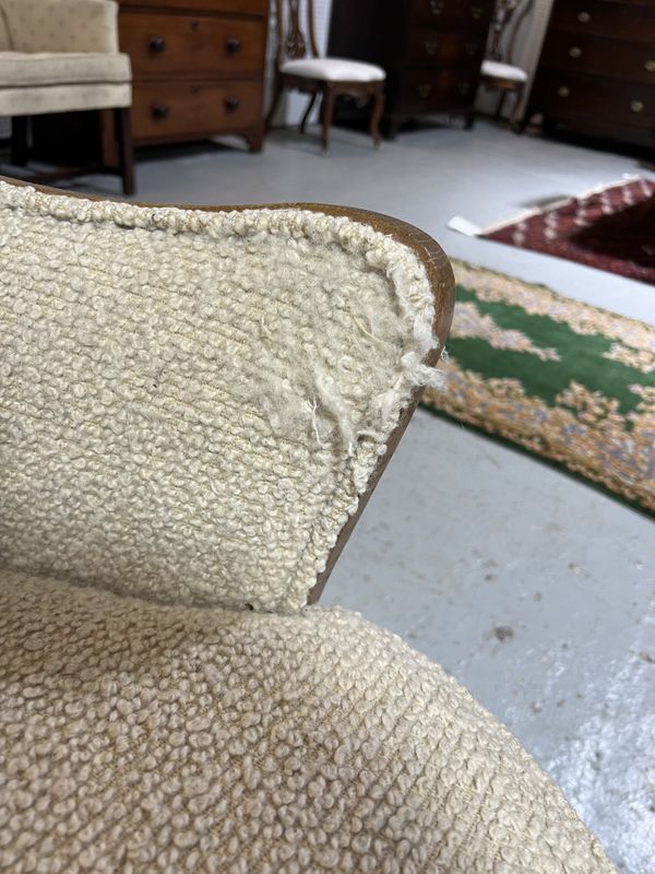 upholstery frayed to right arm see image, seat height 43cm, seat width 61cm