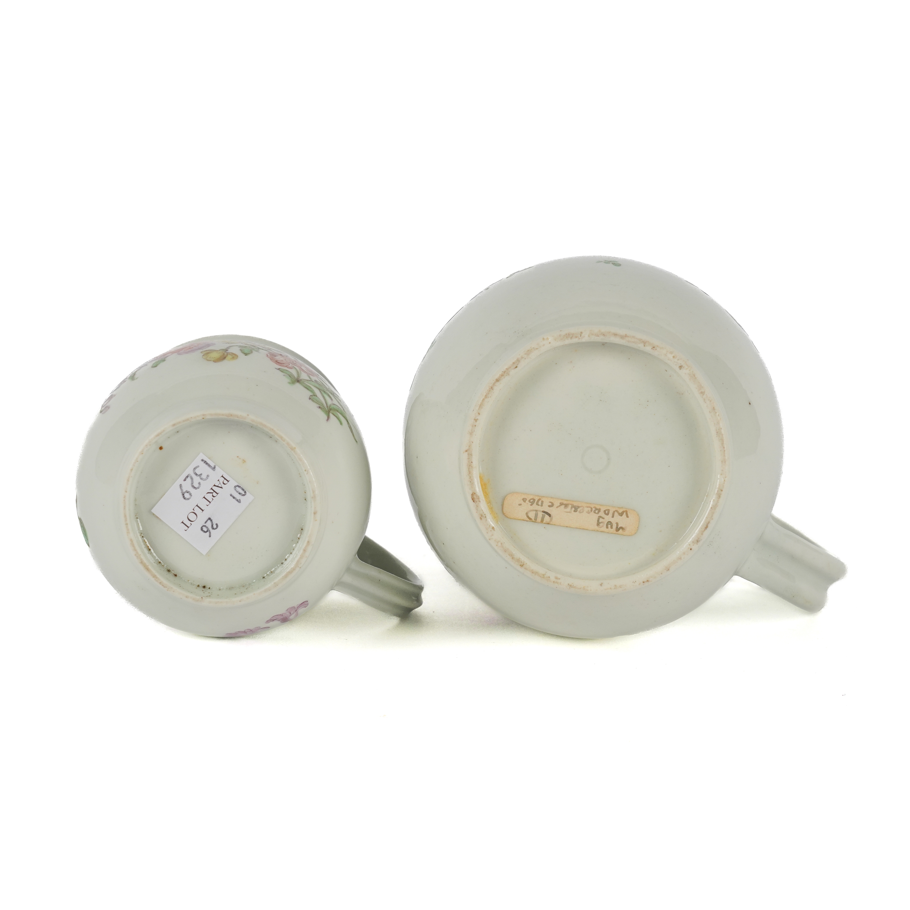 TWO WORCESTER POLYCHROME BALUSTER MUGS (2)