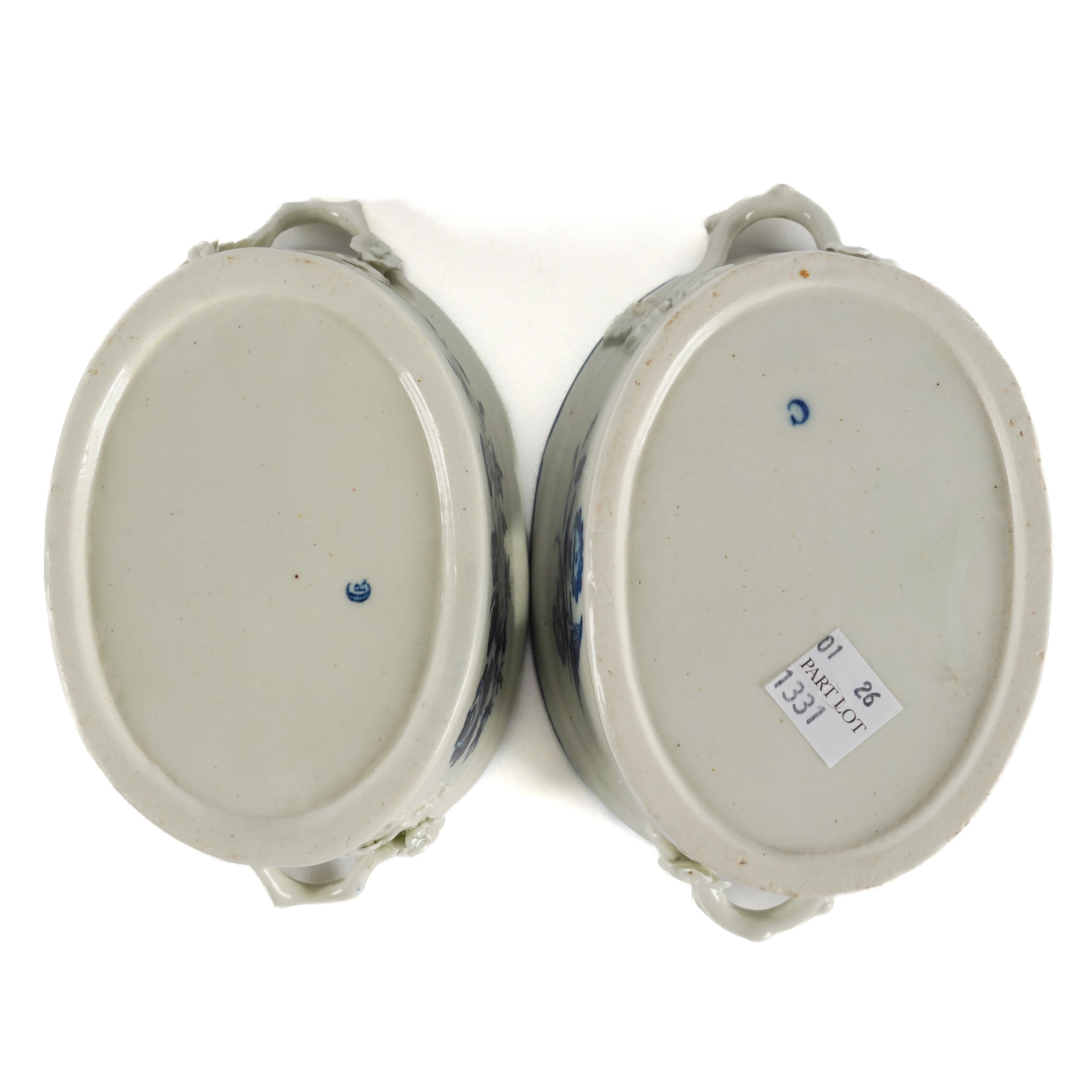 A WORCESTER BLUE AND WHITE OVAL BUTTER TUB, COVER AND STAND (6)