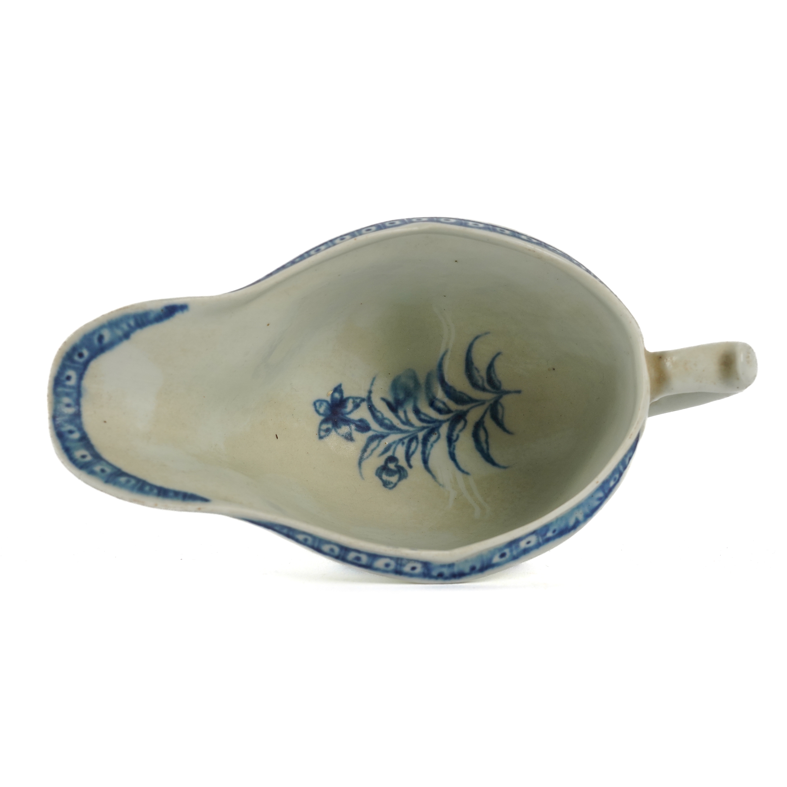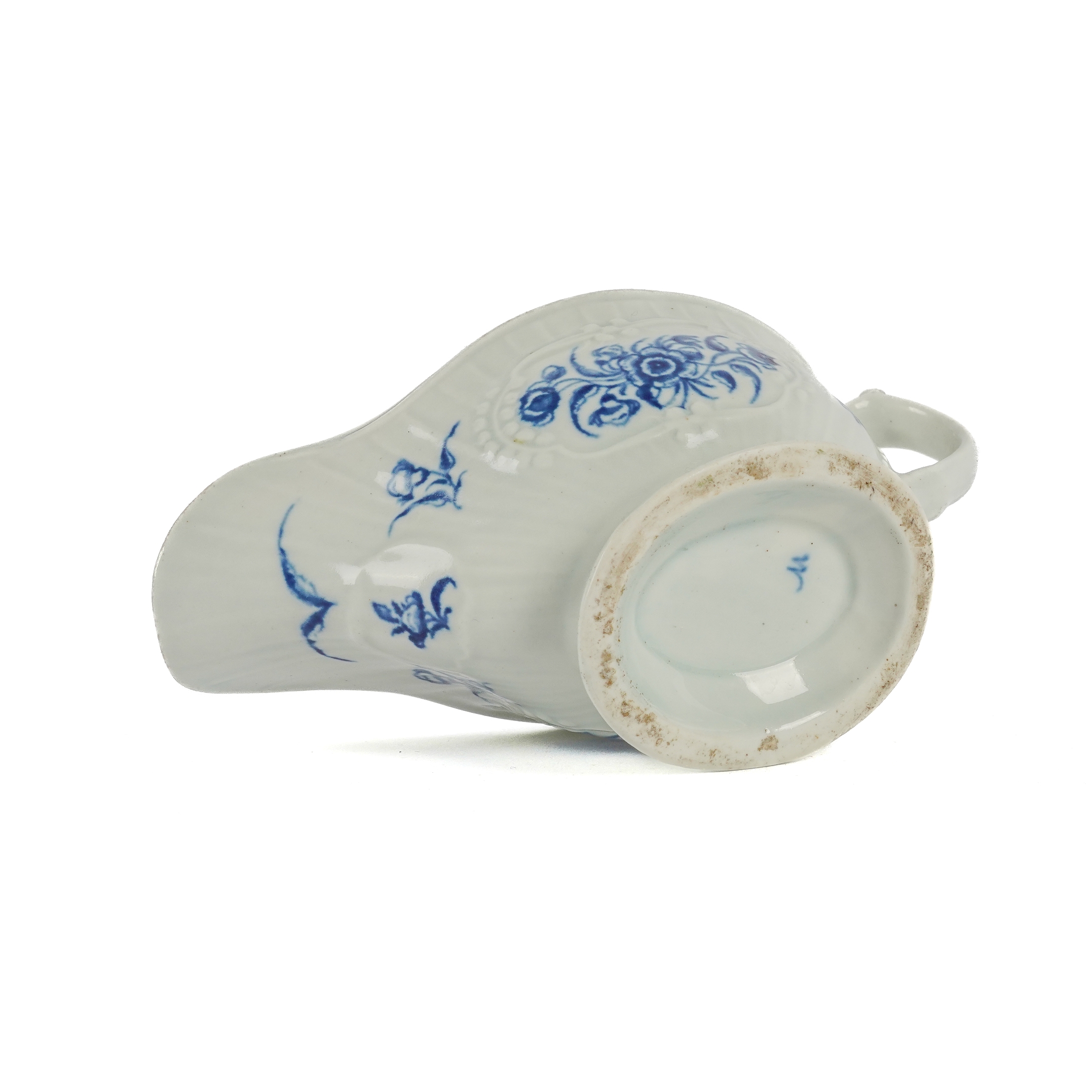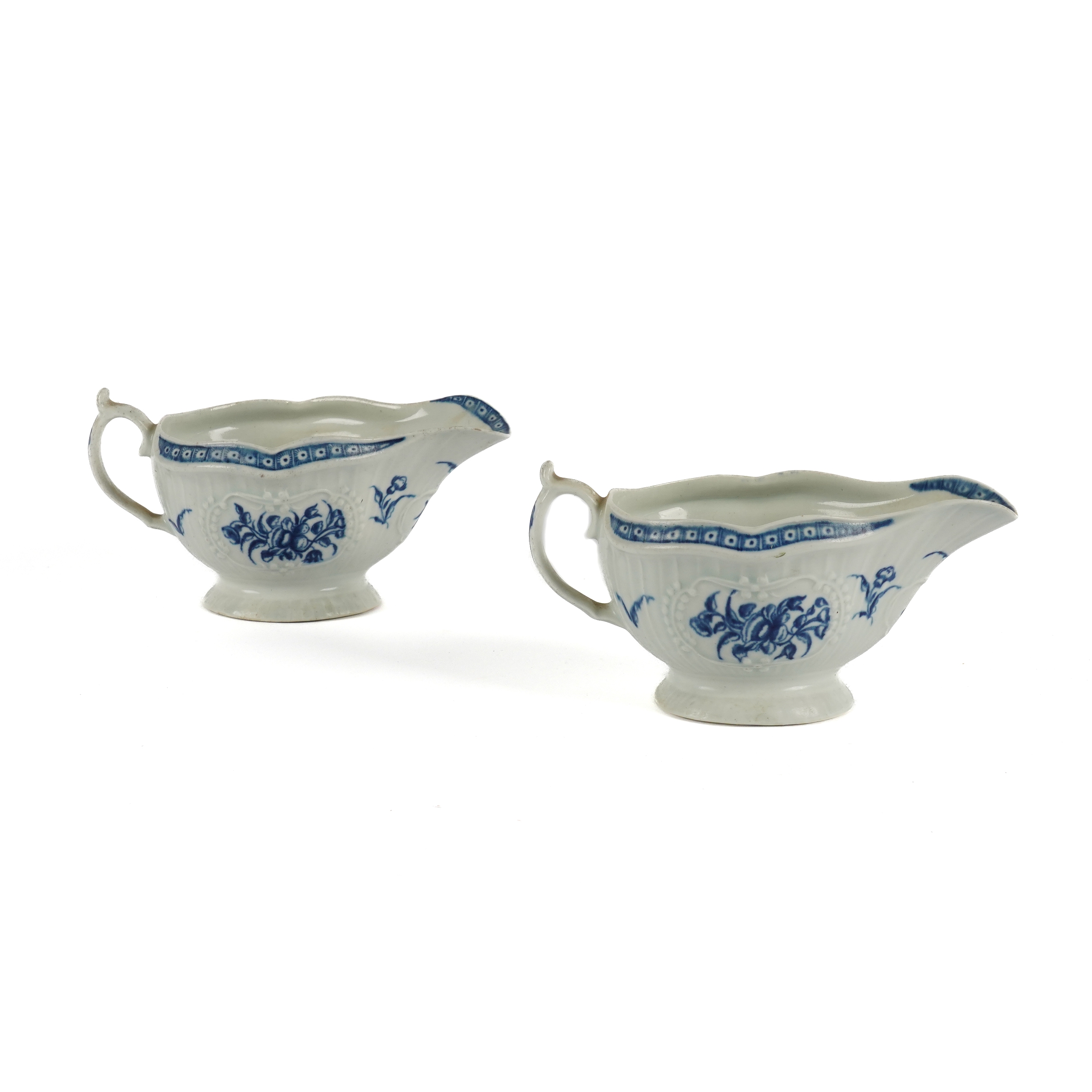 A PAIR OF WORCESTER BLUE AND WHITE PRESS- MOULDED `STRAP FLUTE FLORAL' SAUCEBOATS (2)