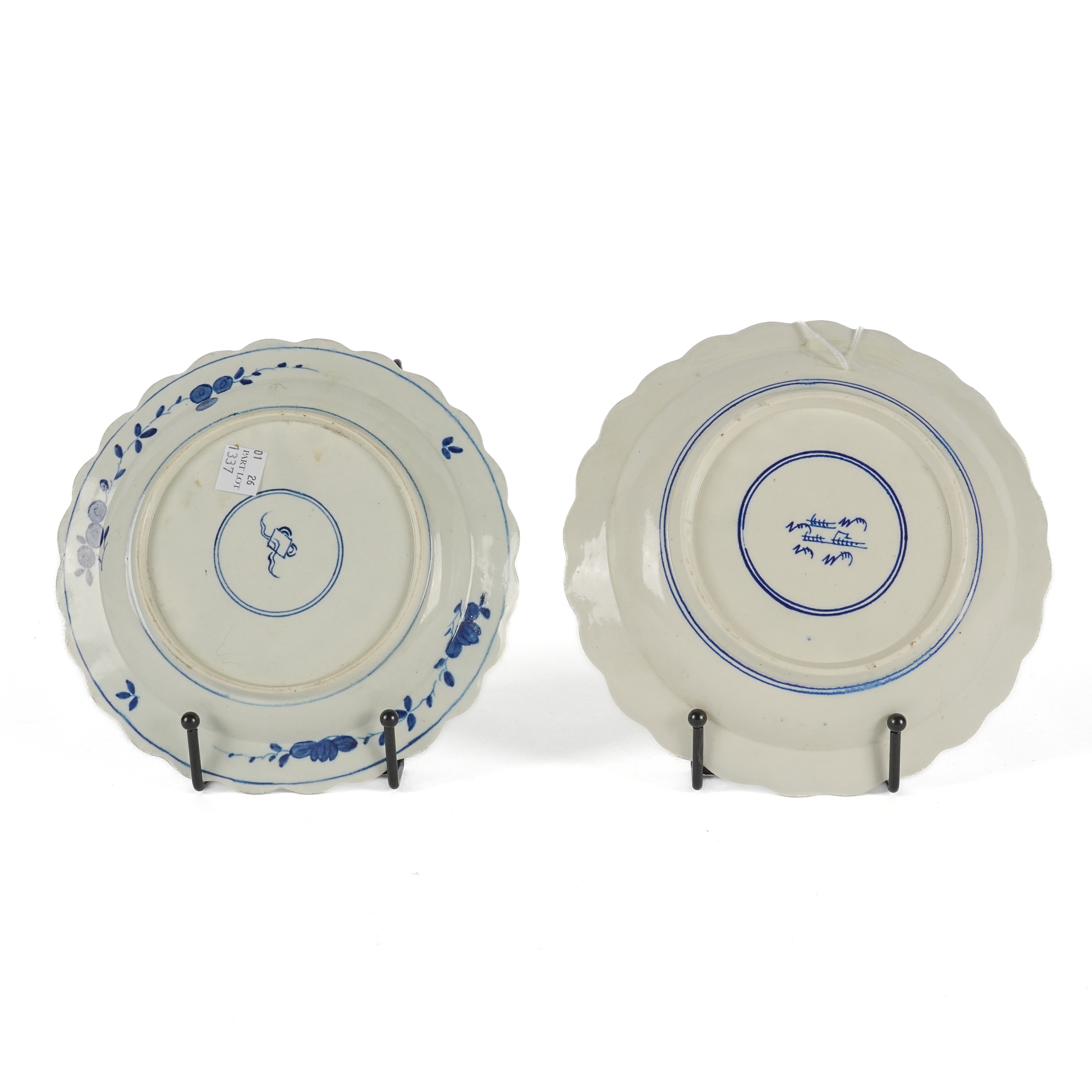 TWO WORCESTER BLUE AND WHITE SMALL PLATES WITH SCALLOPED RIMS (2)
