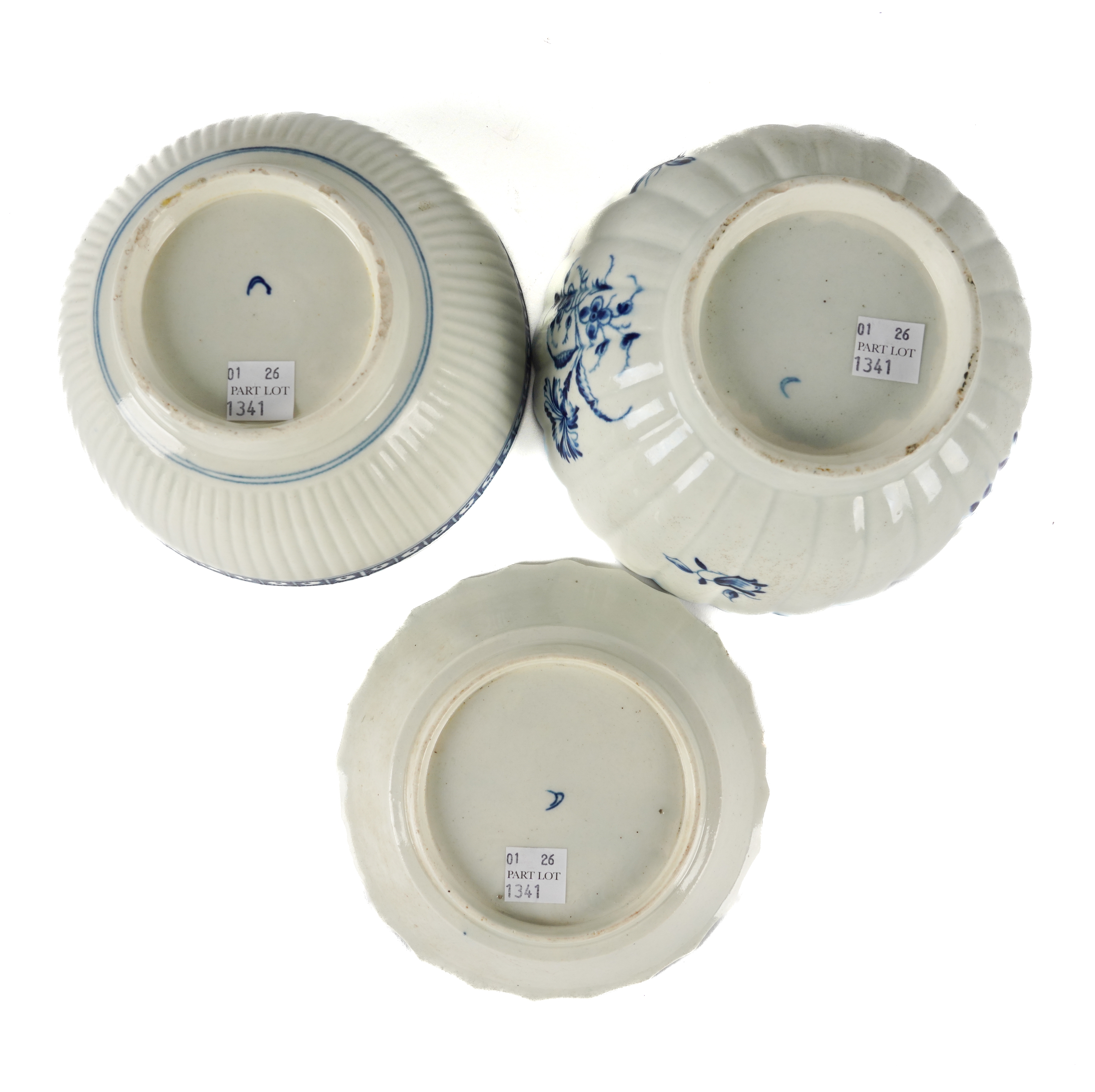 A GROUP OF WORCESTER BLUE AND WHITE PAINTED PORCELAIN ( 10)