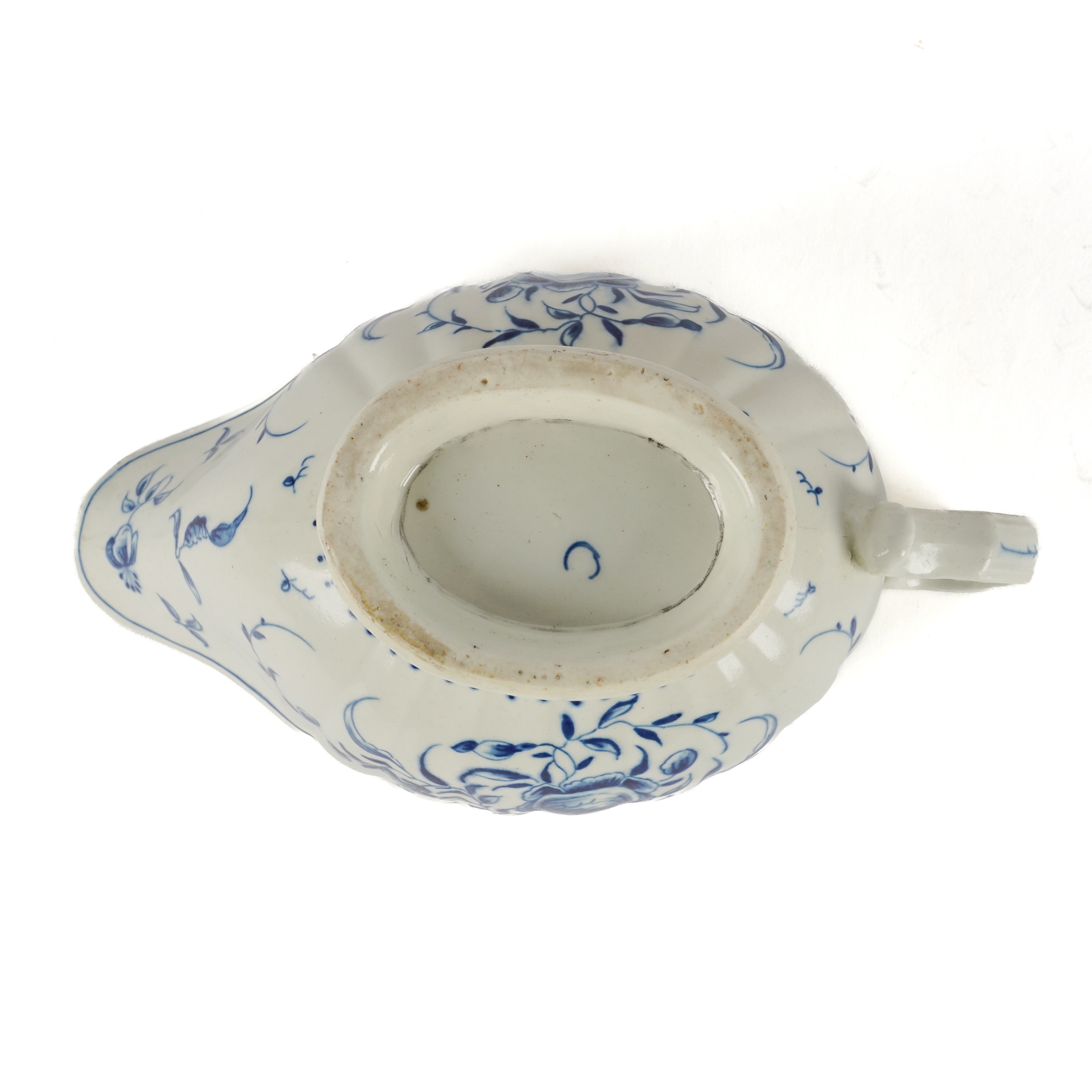 Comprising; a large oval fluted sauceboat painted with `The Rose pattern, 22cm length; a `Gilliflower' pattern leaf shaped dish, 20.5cm length; a `Gilliflower' pattern slop bowl, 15.5cm diameter; a pair of `Hollow Rock Lily' pattern saucers, 13.5cm diameter; a `Chrysanthemum' pattern coffee cup and saucer; a `Rock Strata Island' milk jug; a `Mansfield' pattern teabowl and a ribbed slop bowl, open crescent marks
