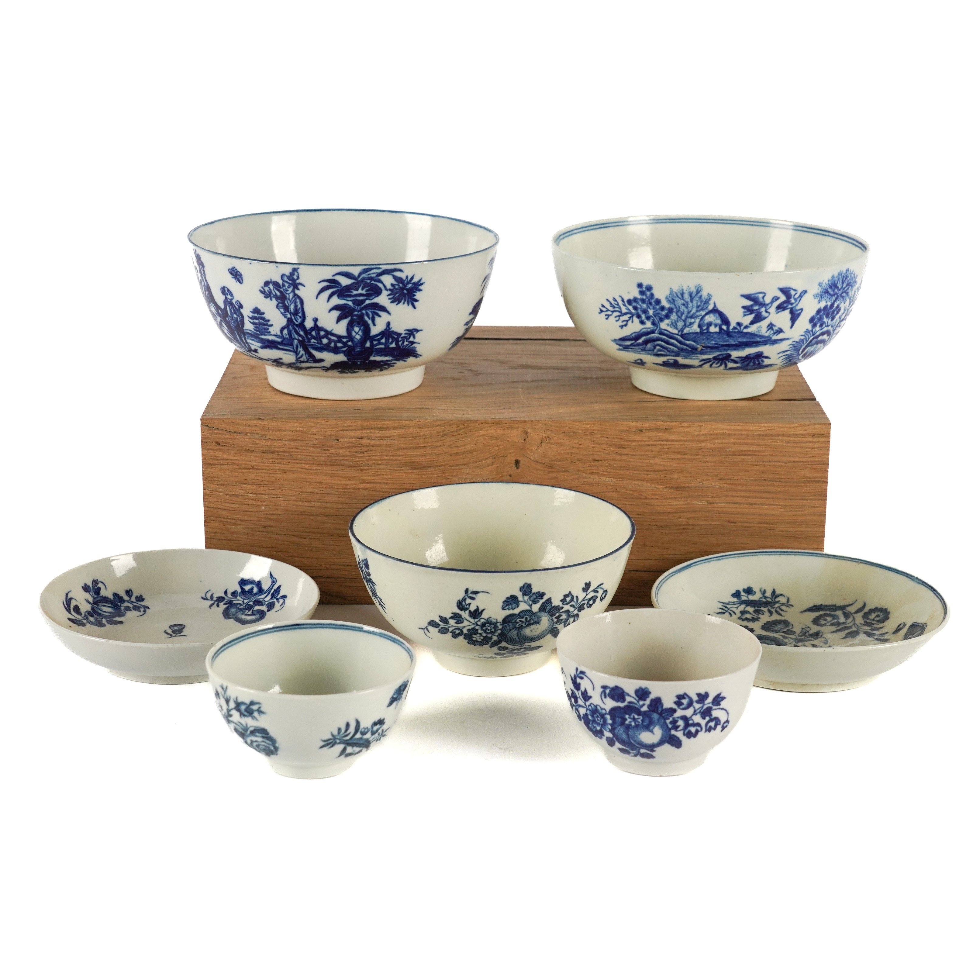 A GROUP OF WORCESTER BLUE AND WHITE PRINTED PORCELAIN ( 7)