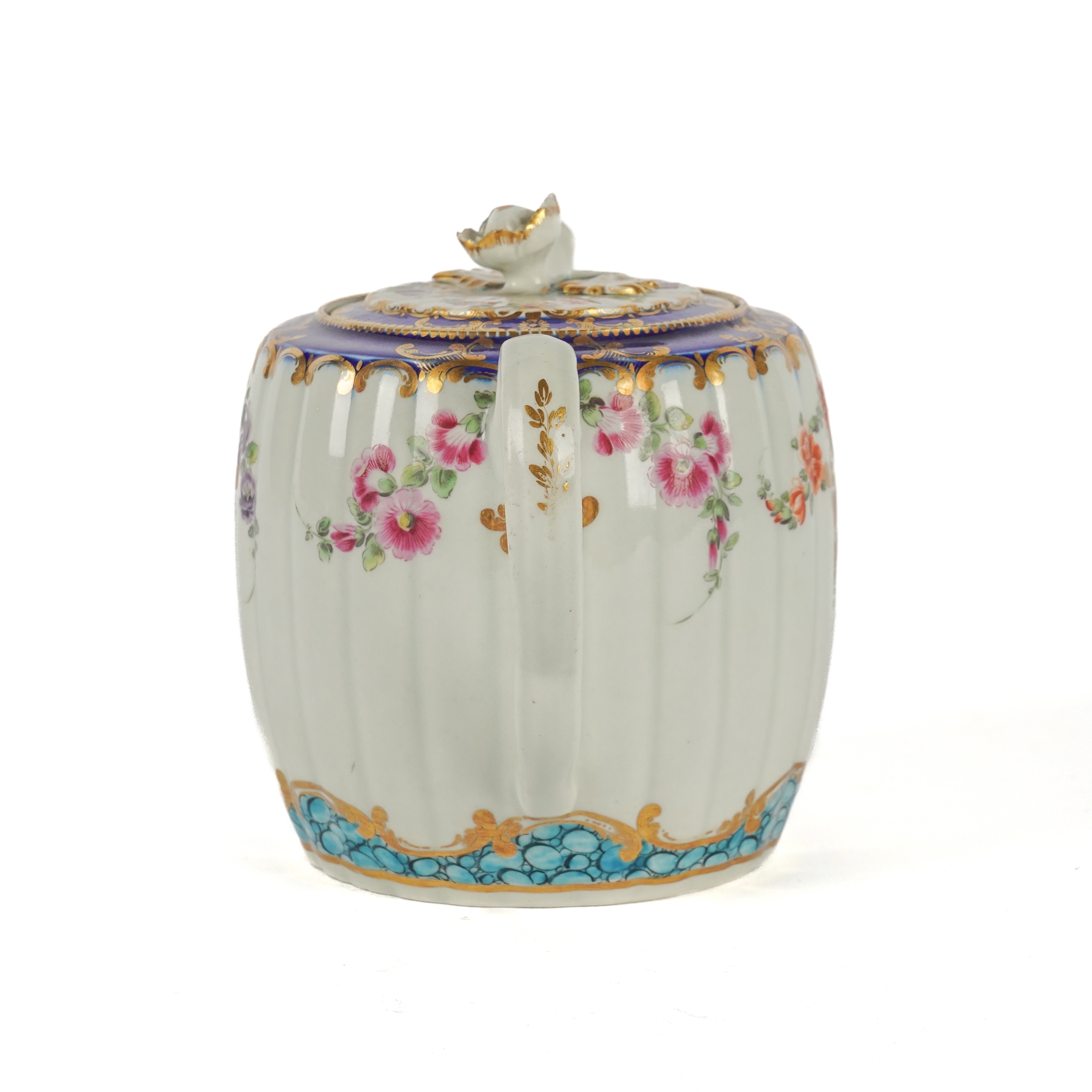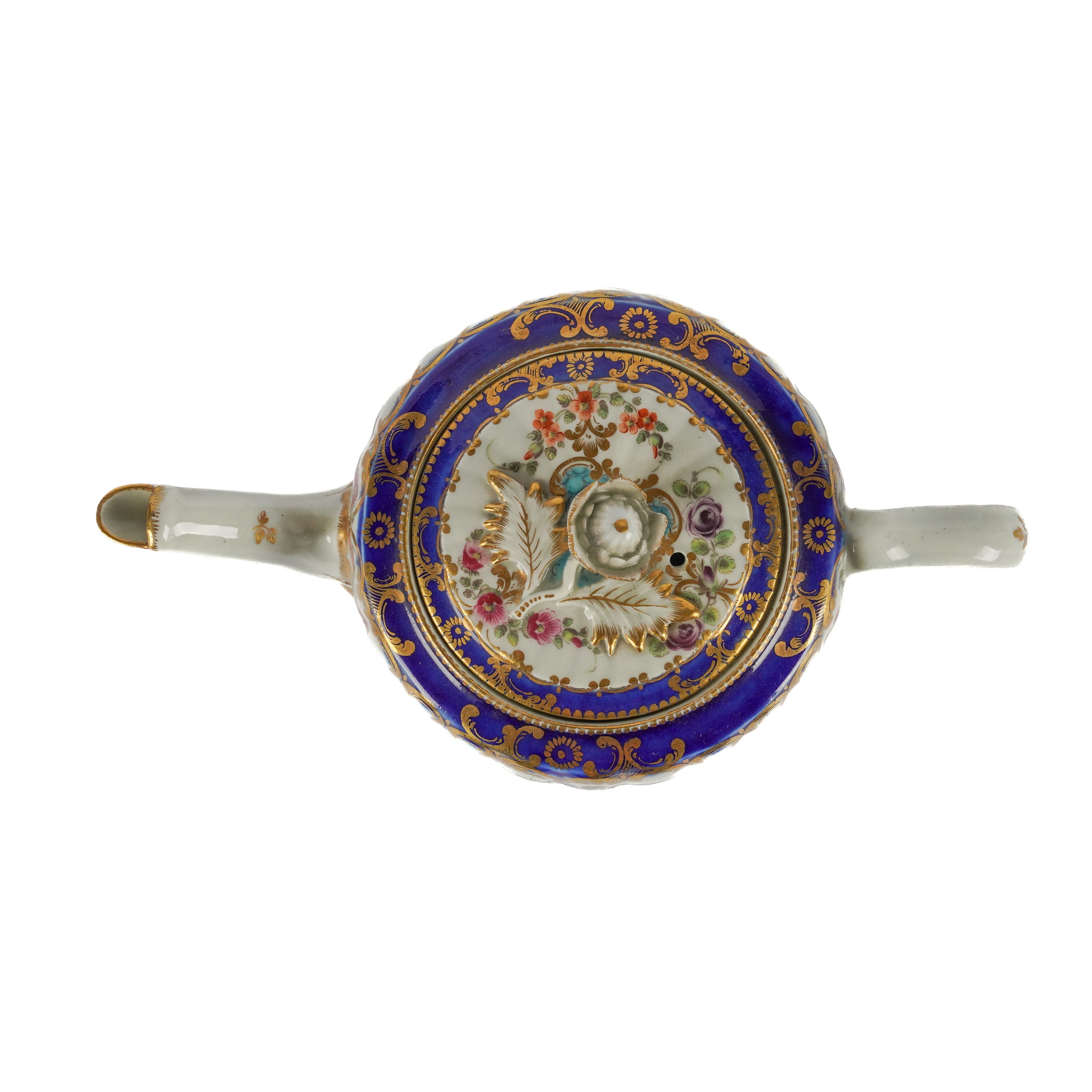 Two minor nicks to the rim of the inner flange of the teapot. Very minor chips to the flower knop.