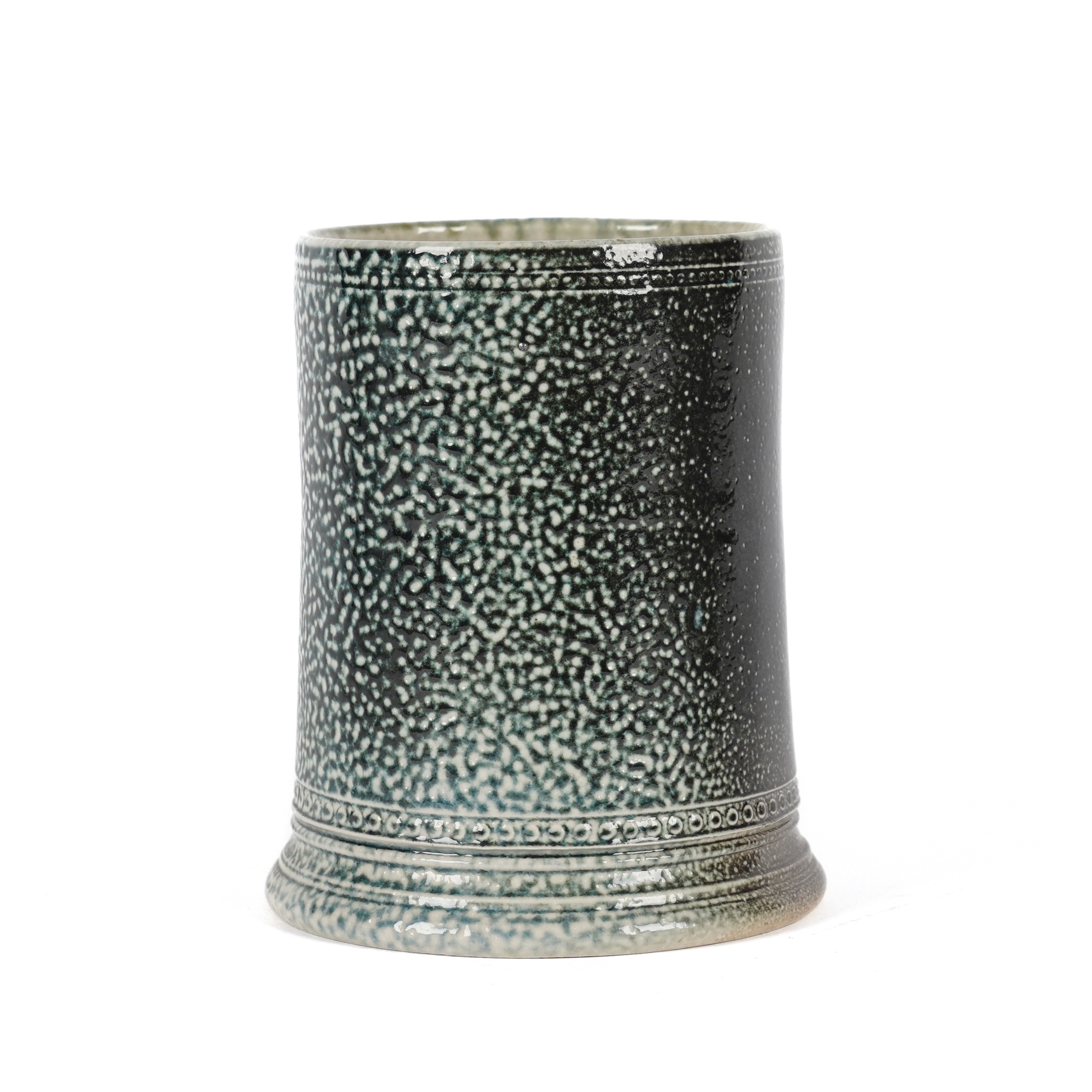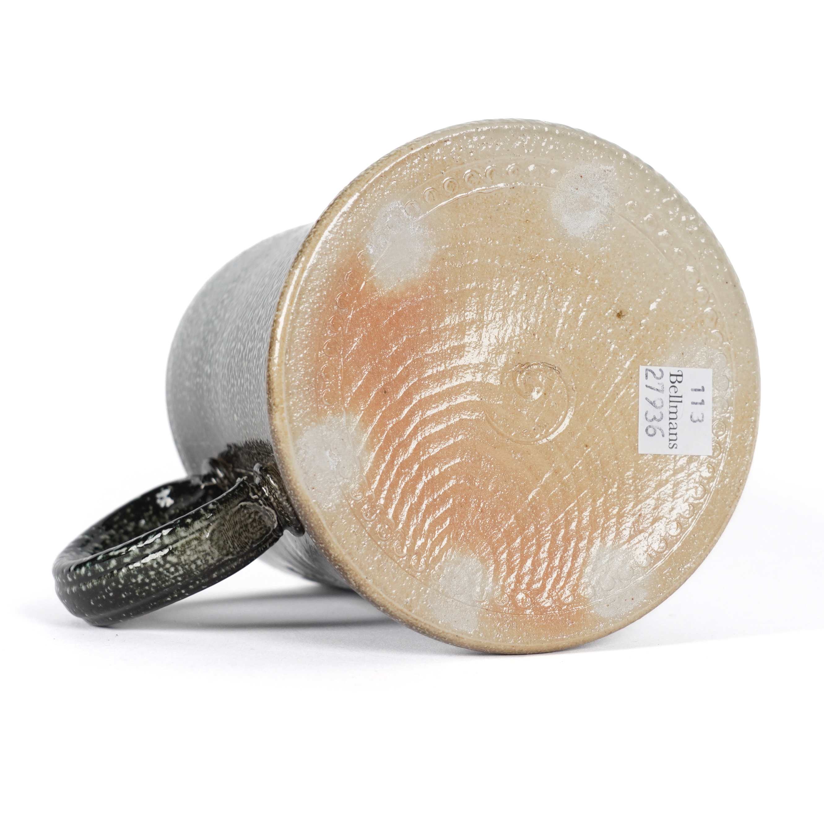 A STEVE HARRISON SALT GLAZED STUDIO POTTERY TANKARD OR MUG