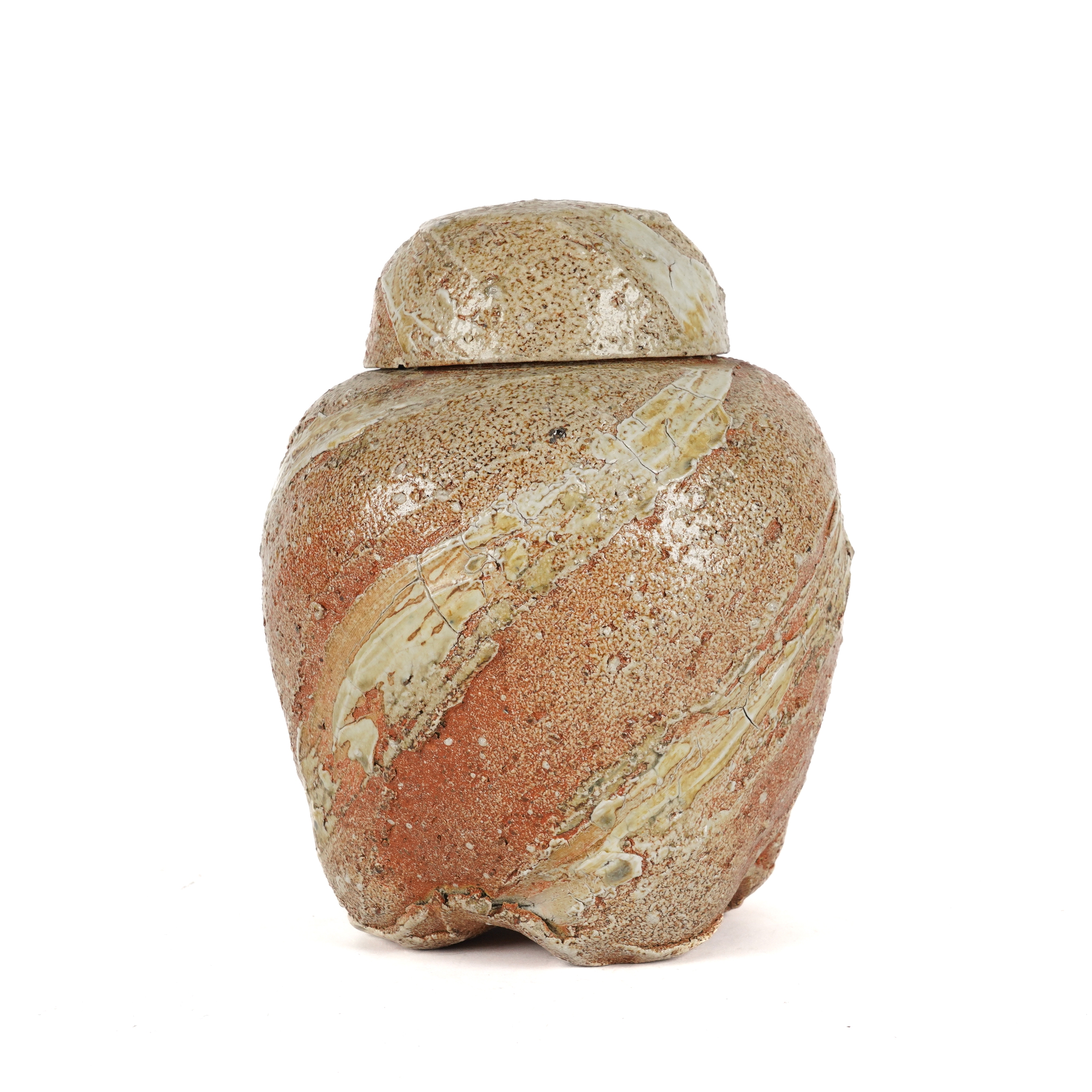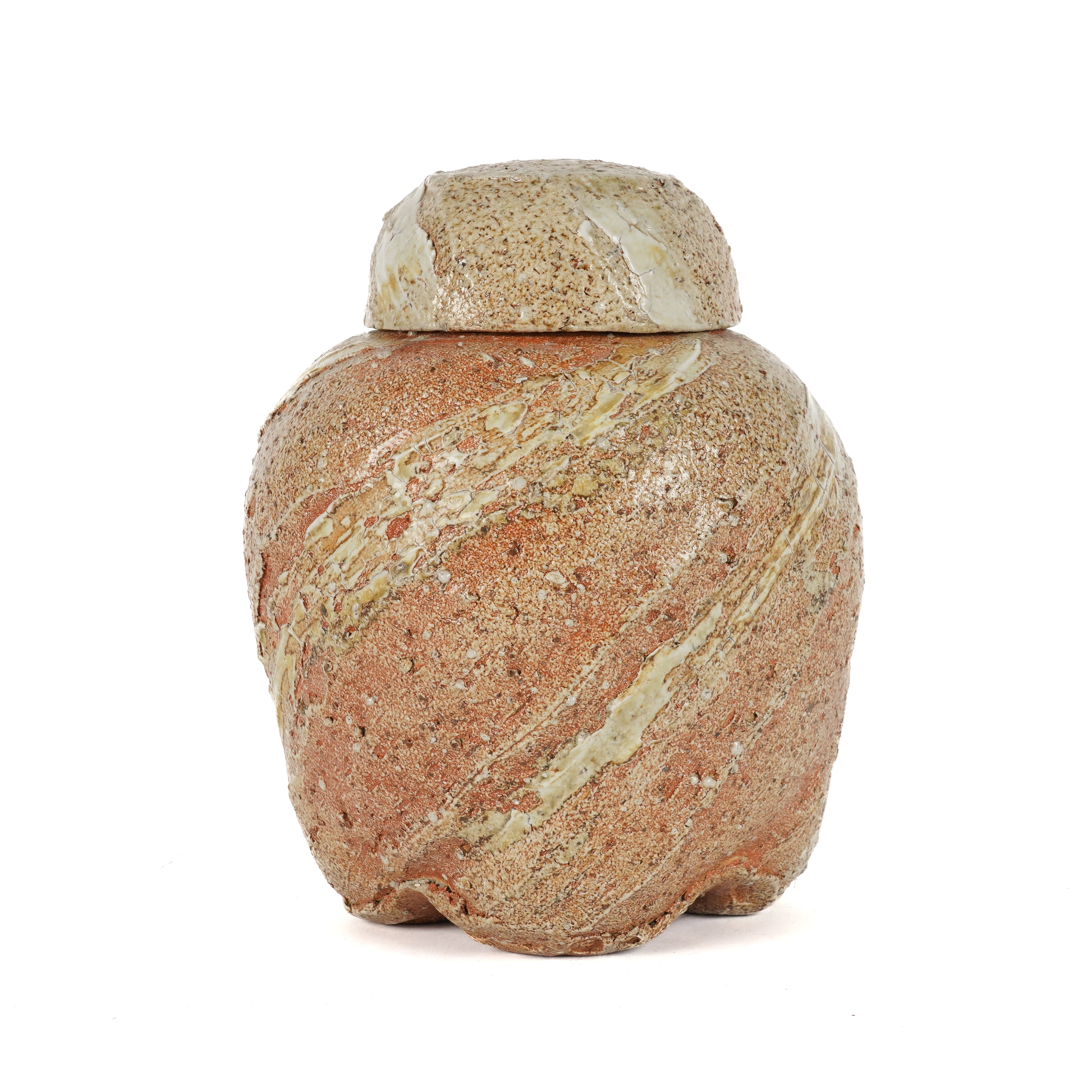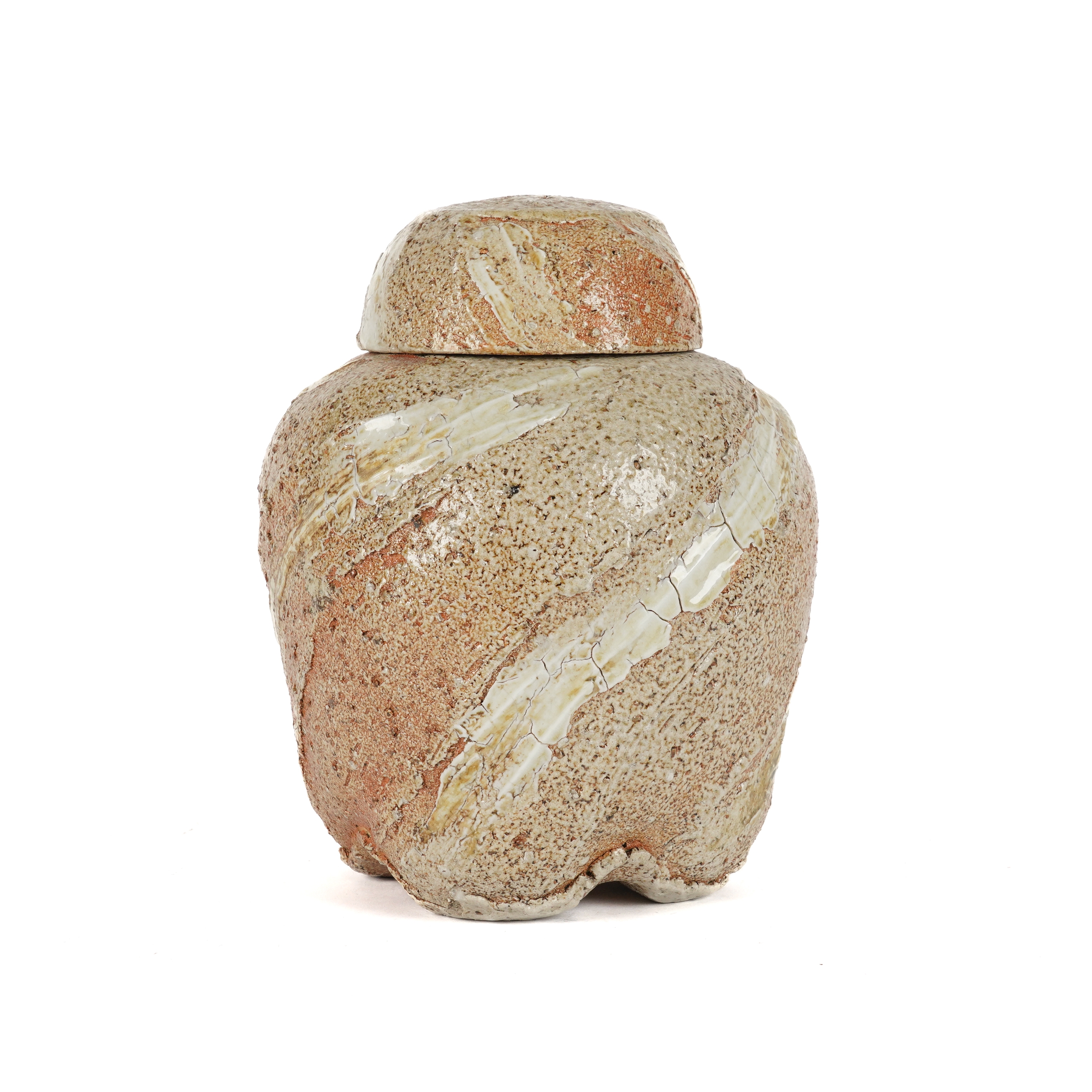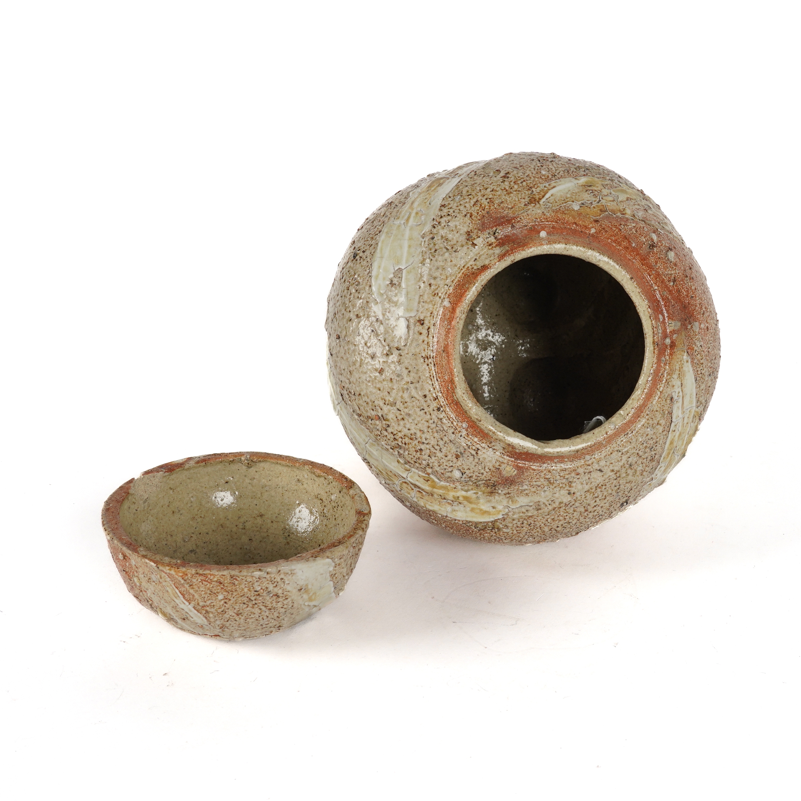 A LARGE RUTHANNE TUDBALL SODA GLAZED STUDIO POTTERY JAR AND COVER (2)