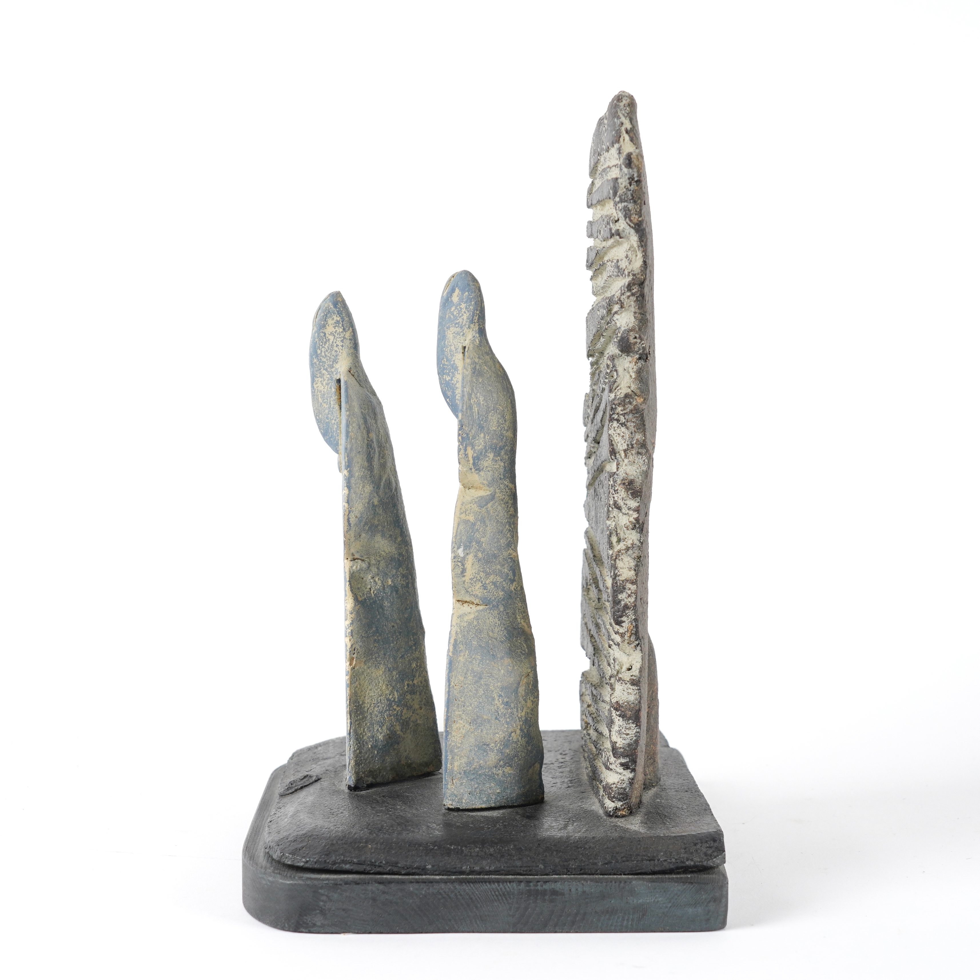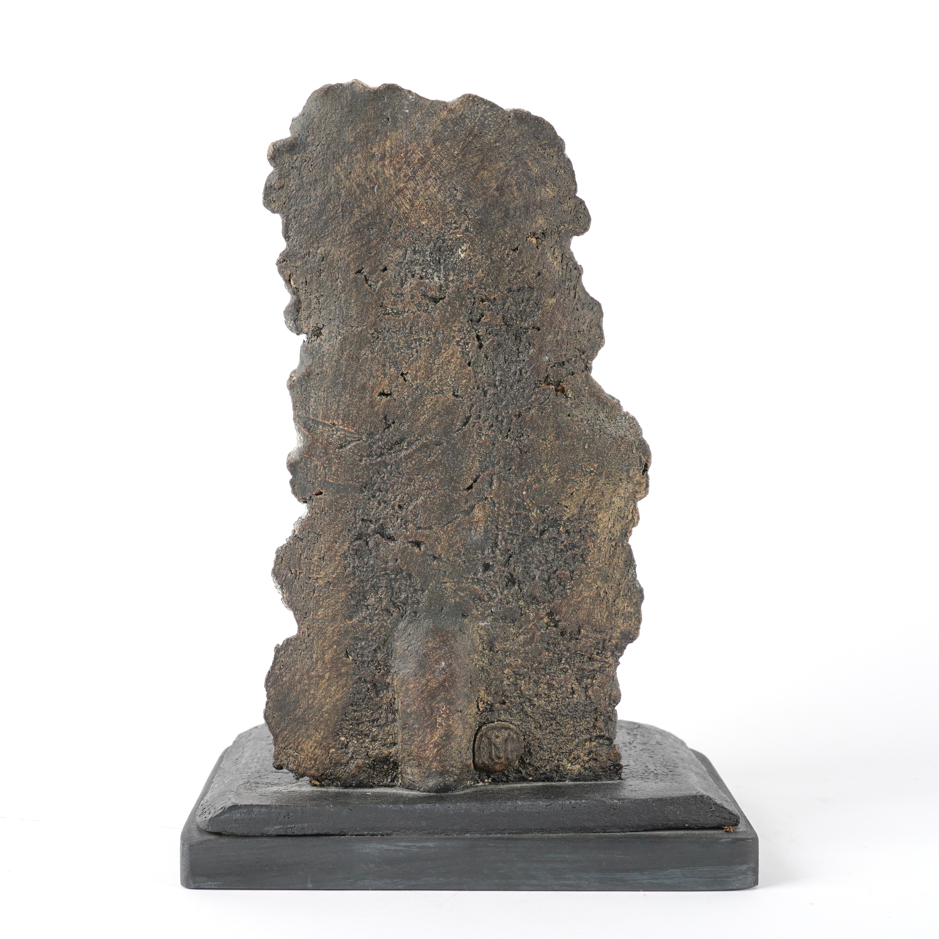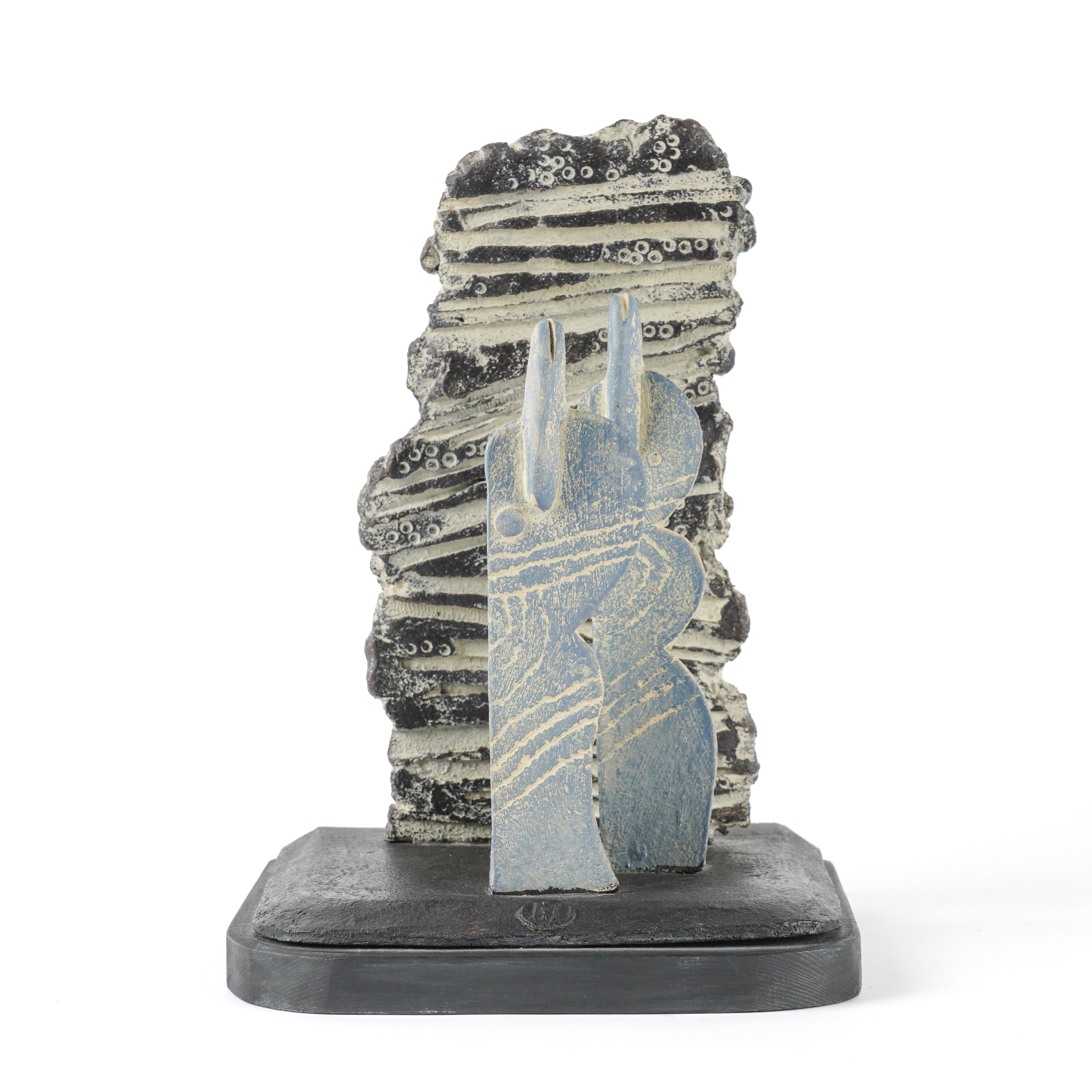 Stoneware, two figures and a wall, impressed M seal marks, painted `John Maltby' to the wood base, height including base 27cm ( ARR)