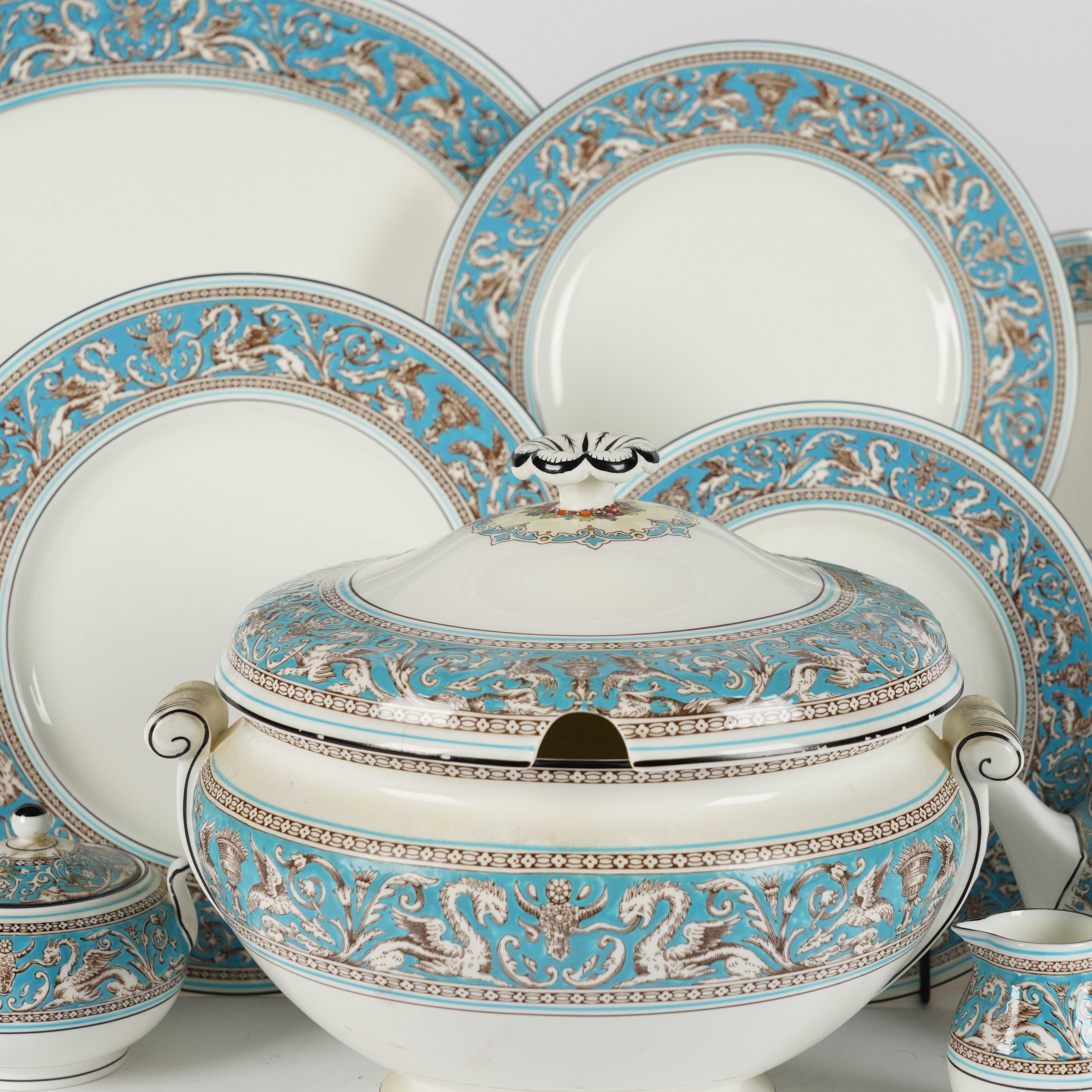 A WEDGWOOD FLORENTINE PART TEA AND DINNER SERVICE