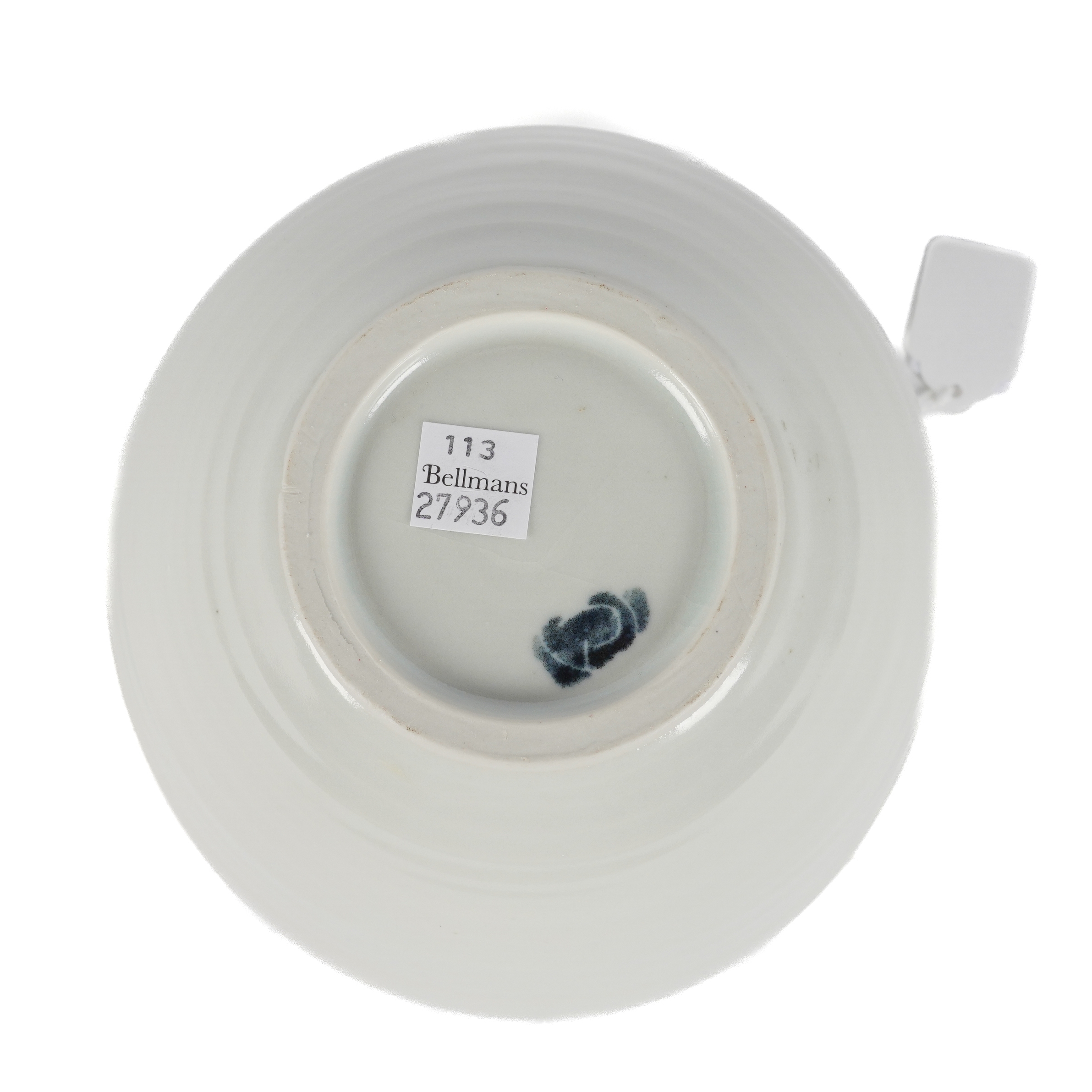 Of ribbed form, having jagged mouth, the glaze with a blueish-grey tint, unidentified artist's mark to base, 12cm high, 18cm diameter