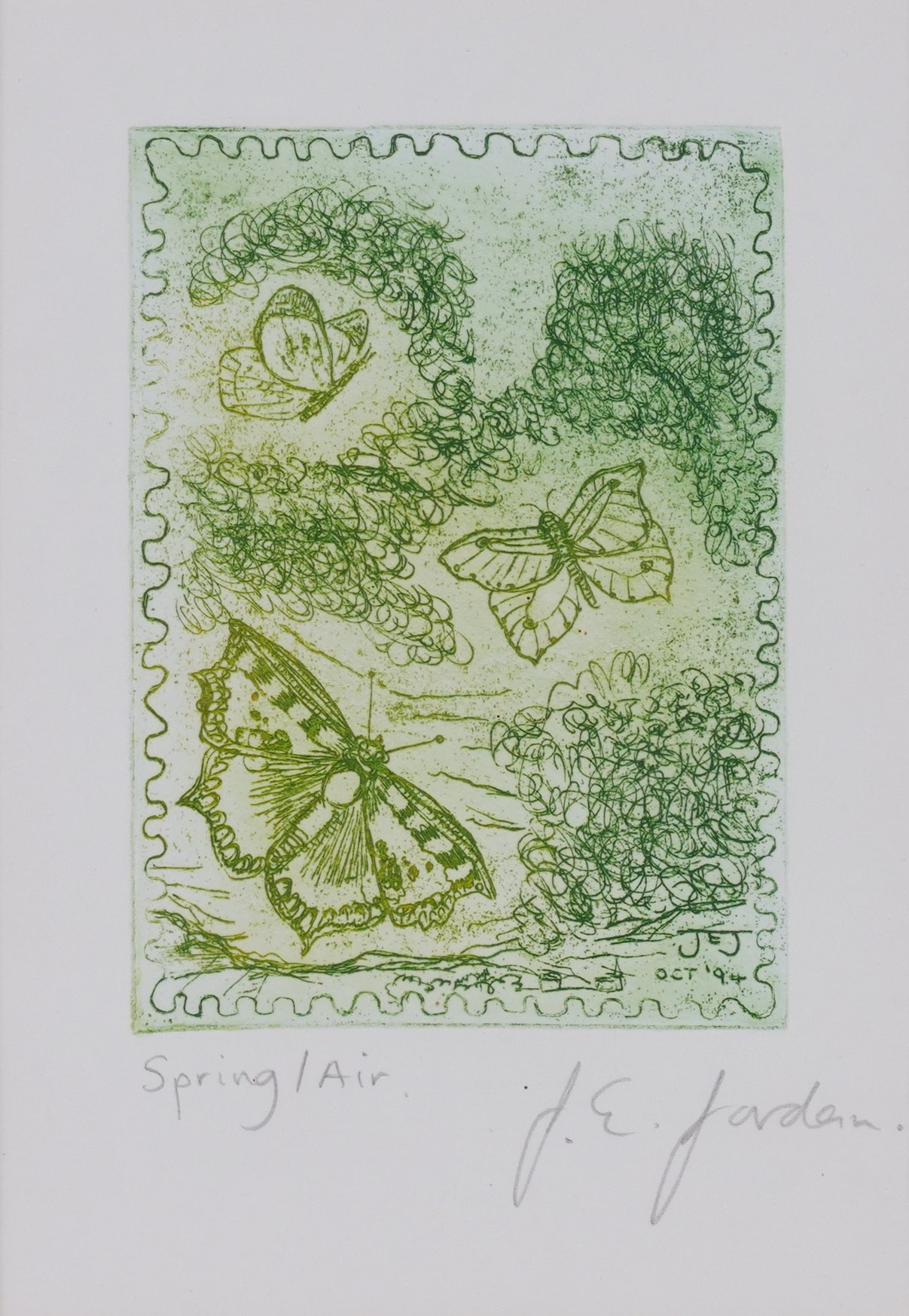 together with four etchings by Janet Jordan, Spring, Summer, Autumn, Winter, each signed in pencil, each 12 x 9cm