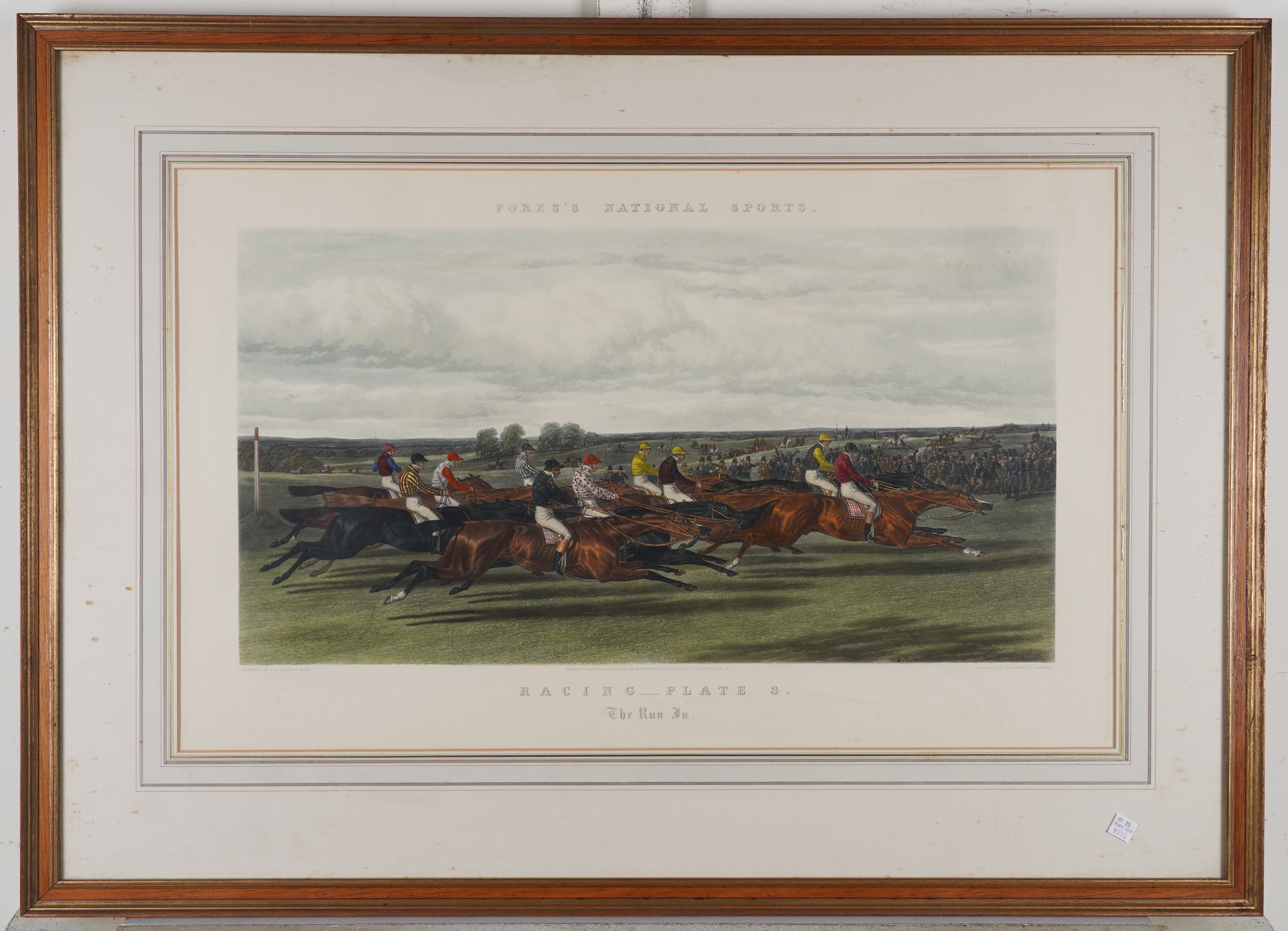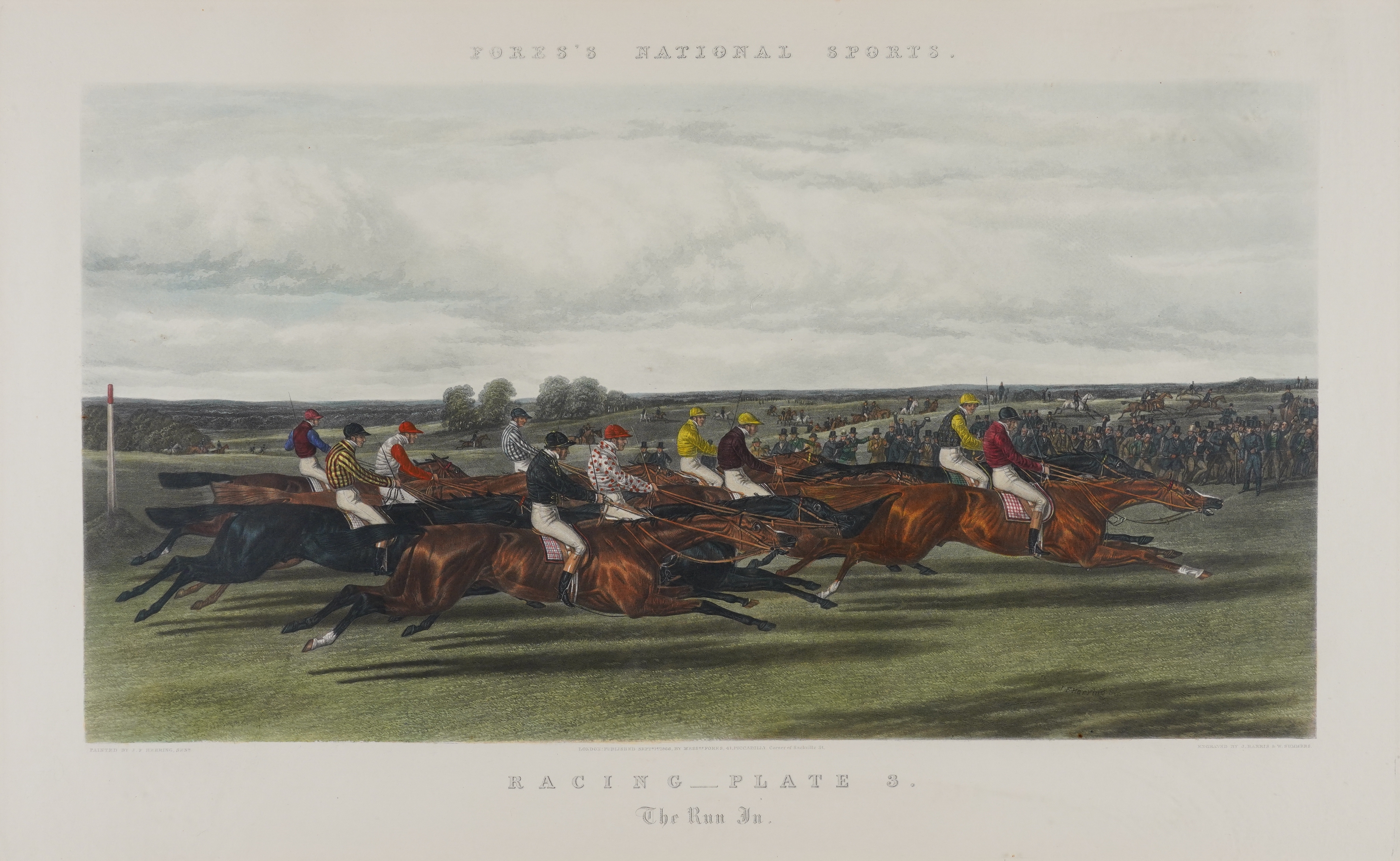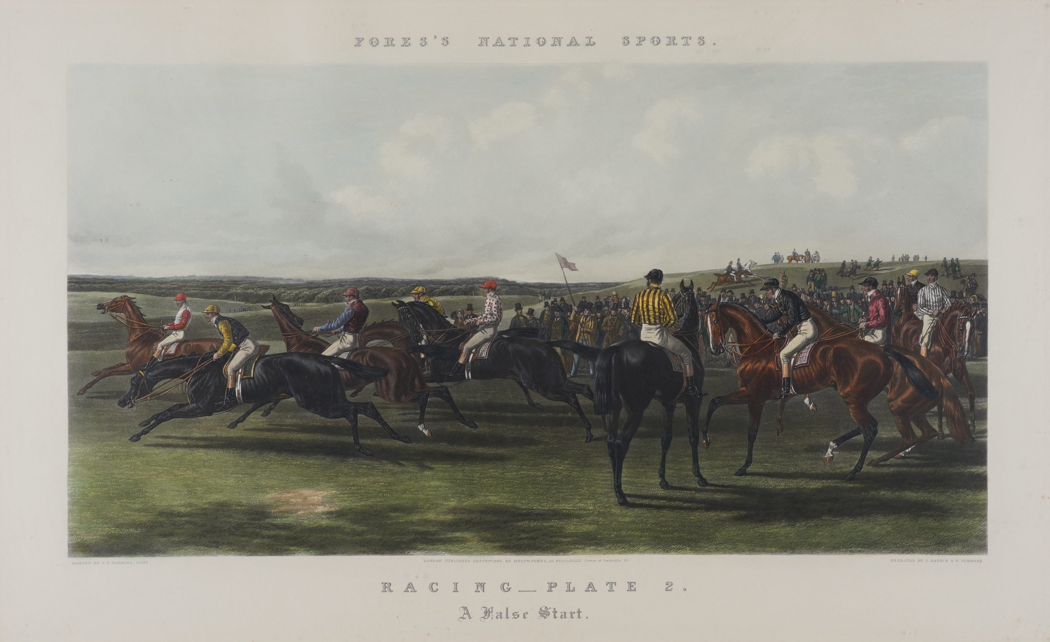 together with Fore's National Sports: Racing, Saddling; A False Start; The Run-In; Returning to Weigh, a set of four engravings by J Harris and W Summer after John Frederick Herring Snr.