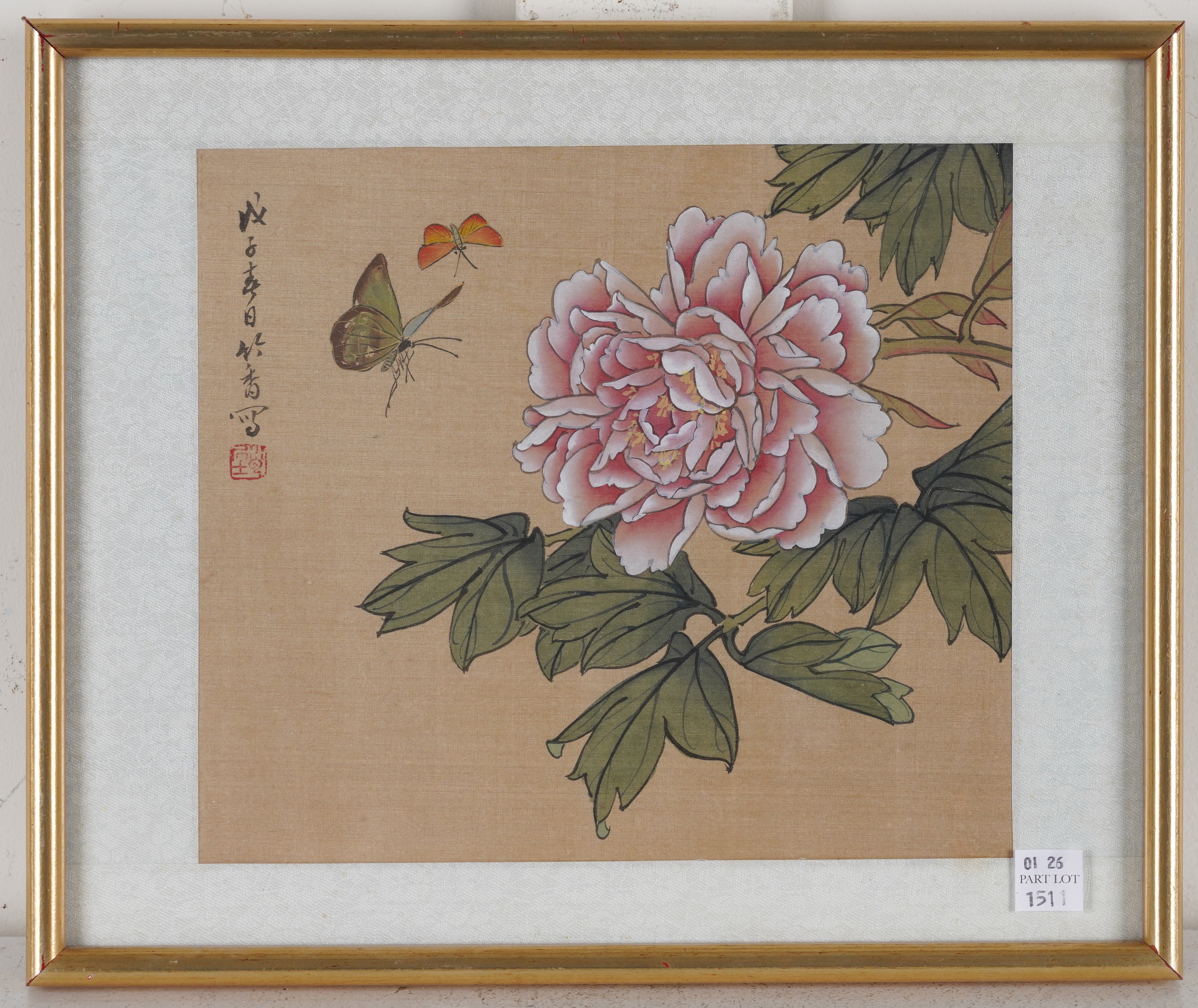 Together with Asian School, Flowers and butterflies, mixed-media on silk; Asian School, Humming bird, pen and ink
