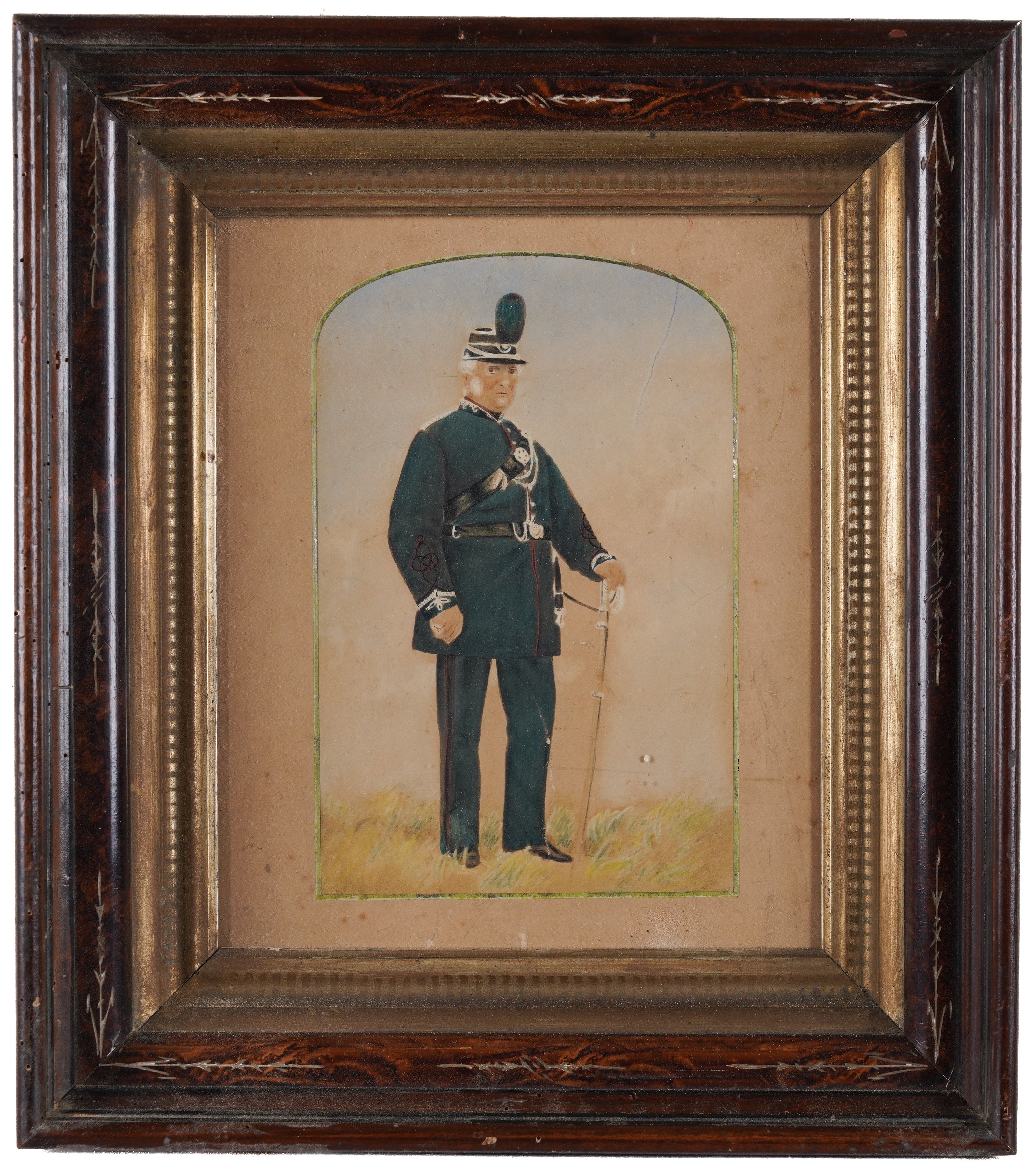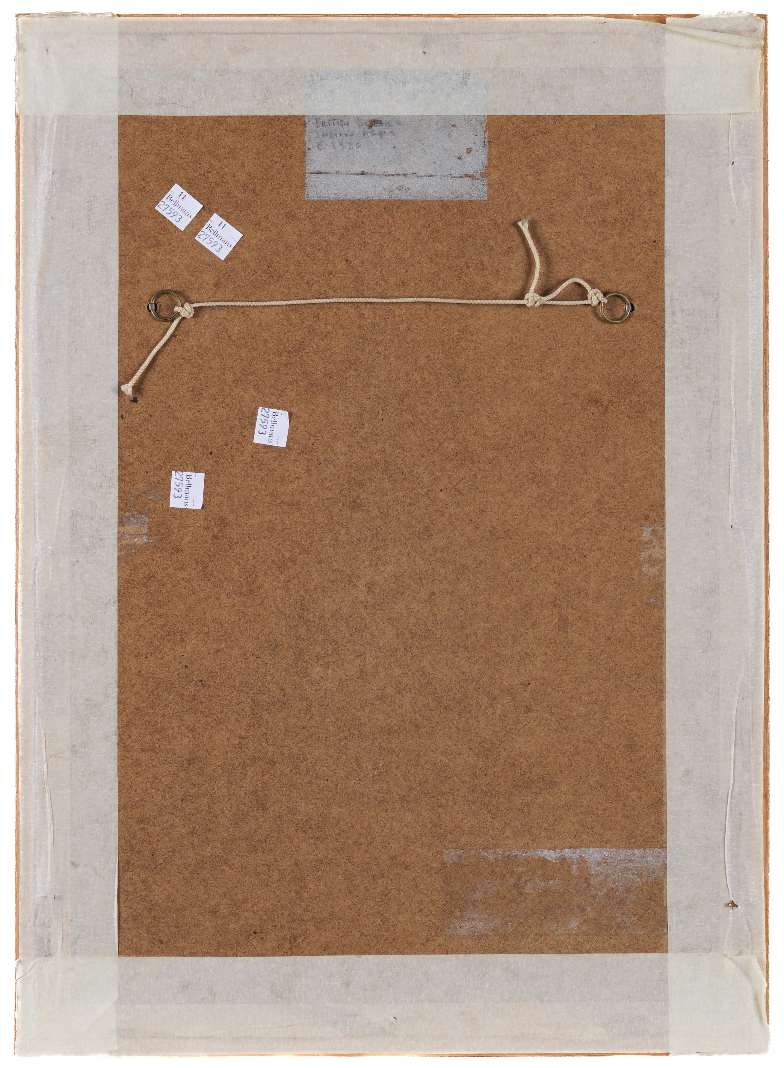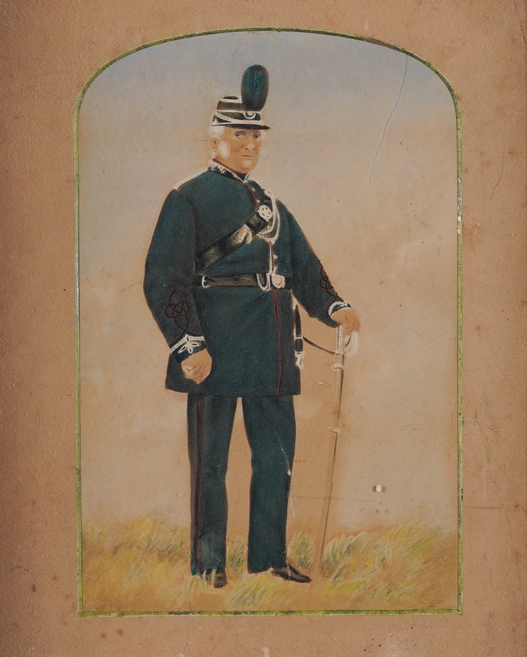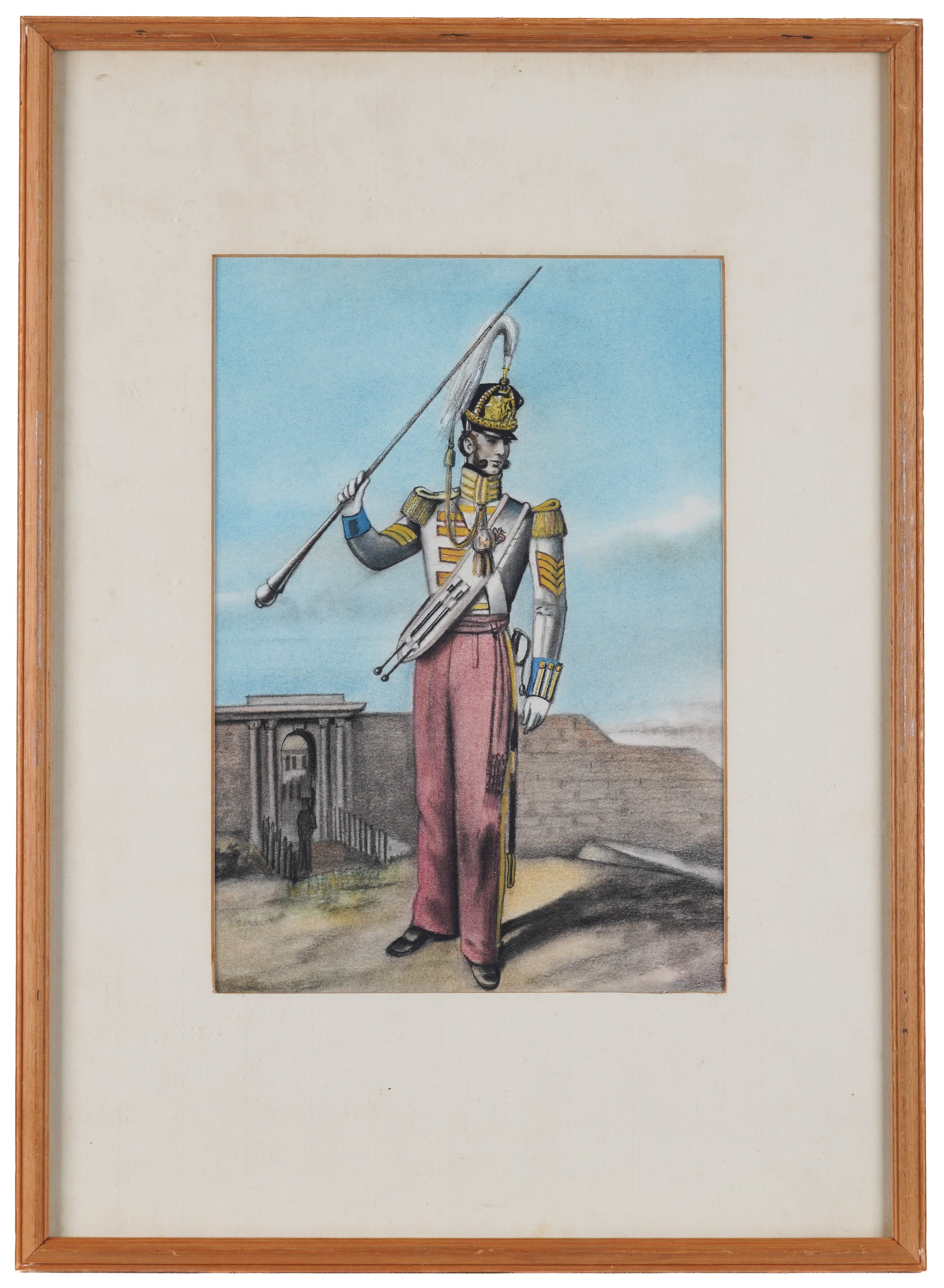 together with a watercolour of a soldier in a red coat, 57 x 39cm, (unframed); a watercolour of a soldier on horseback, 25 x 37.5cm; a watercolour of a soldier holding a staff, 30 x 21cm; and a coloured print of a soldier, 25 x 16.5cm