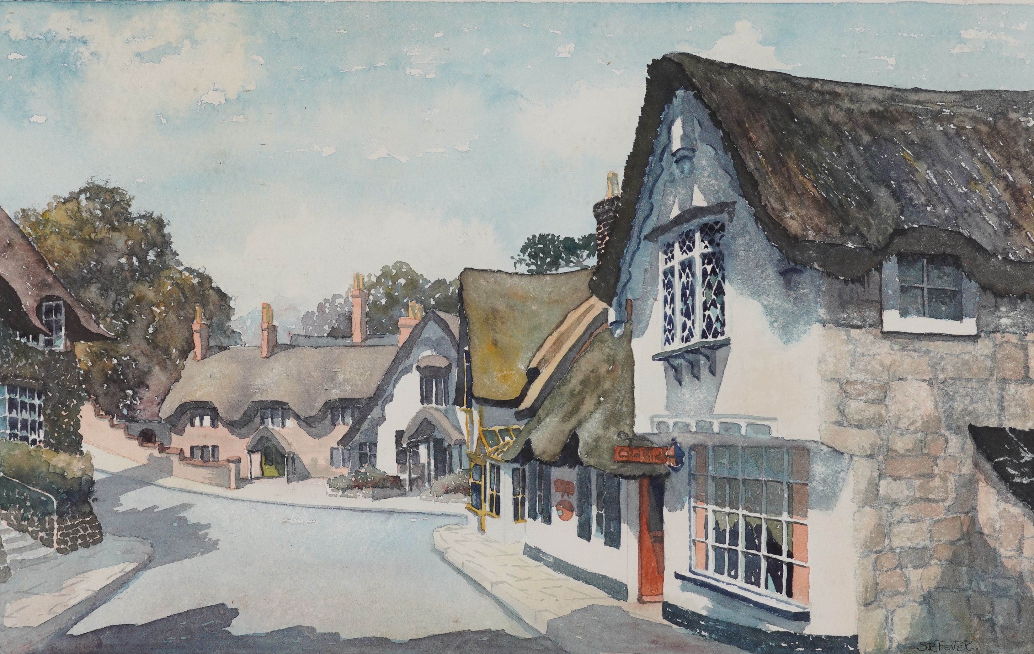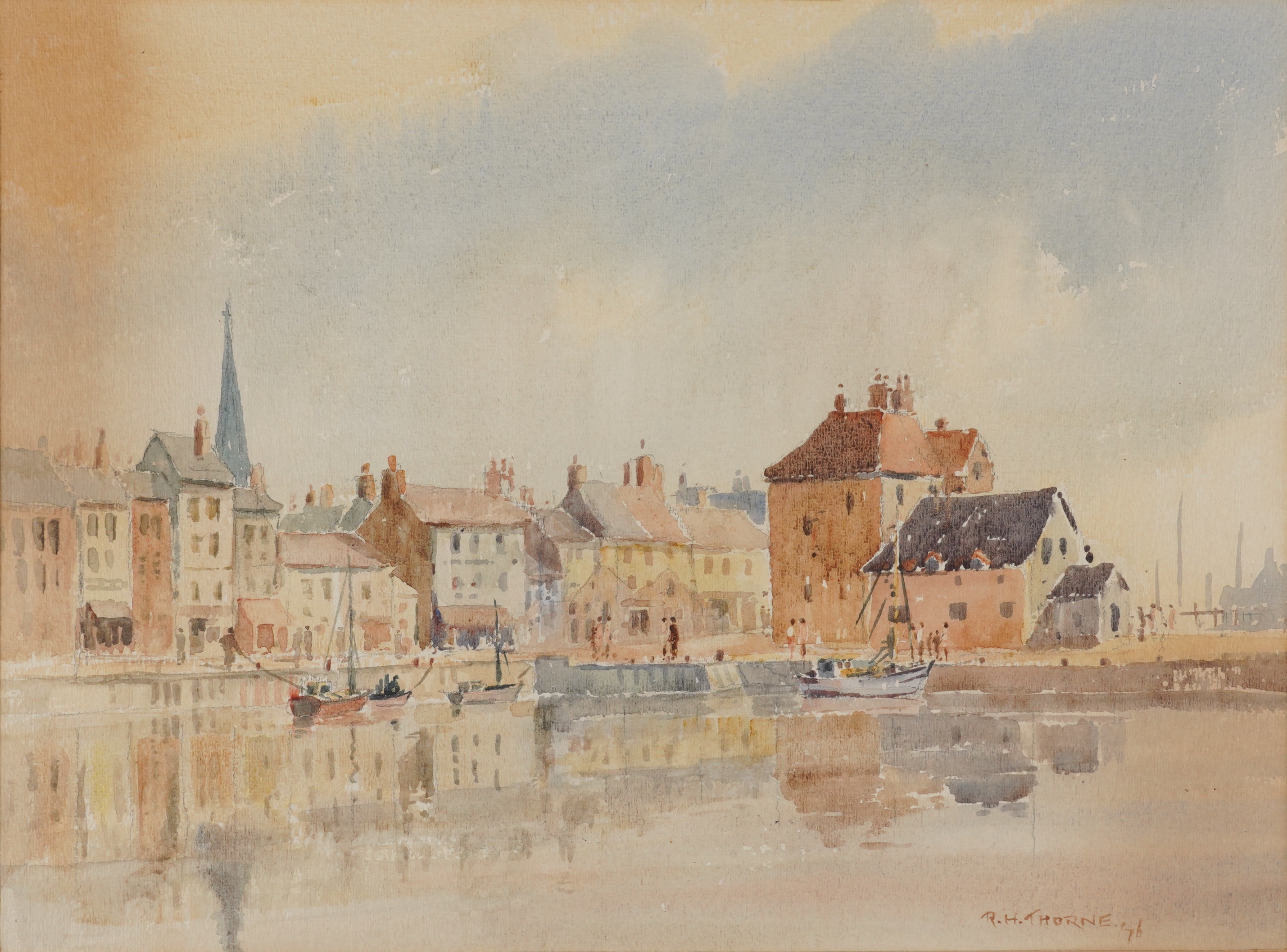 together with a watercolour of Honfleur by Ron Thorne, signed, 36 x 48cm