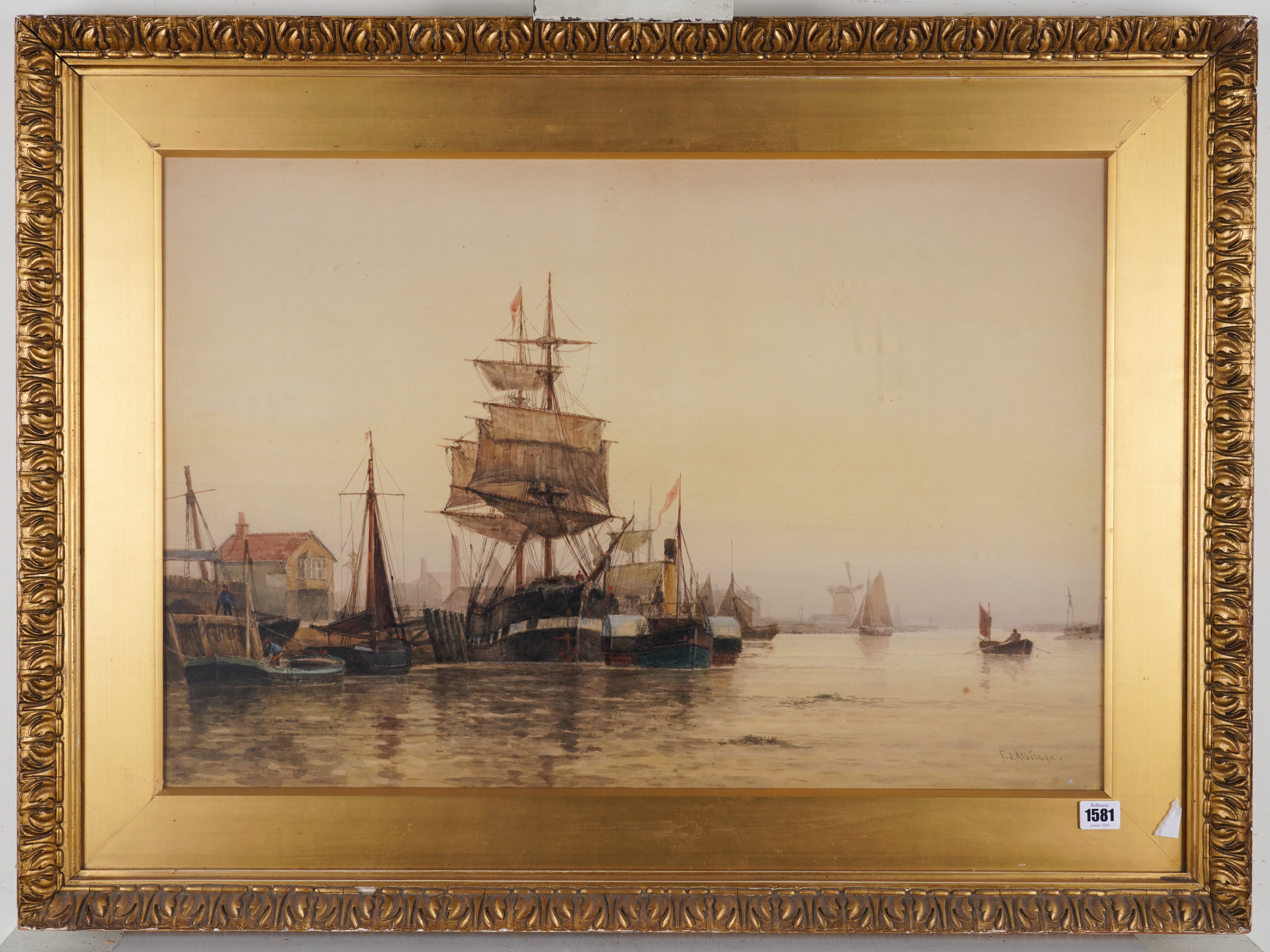 Boats in a harbour signed 'F. J. Aldridge' (lower right) watercolour 49 x 73.5cm