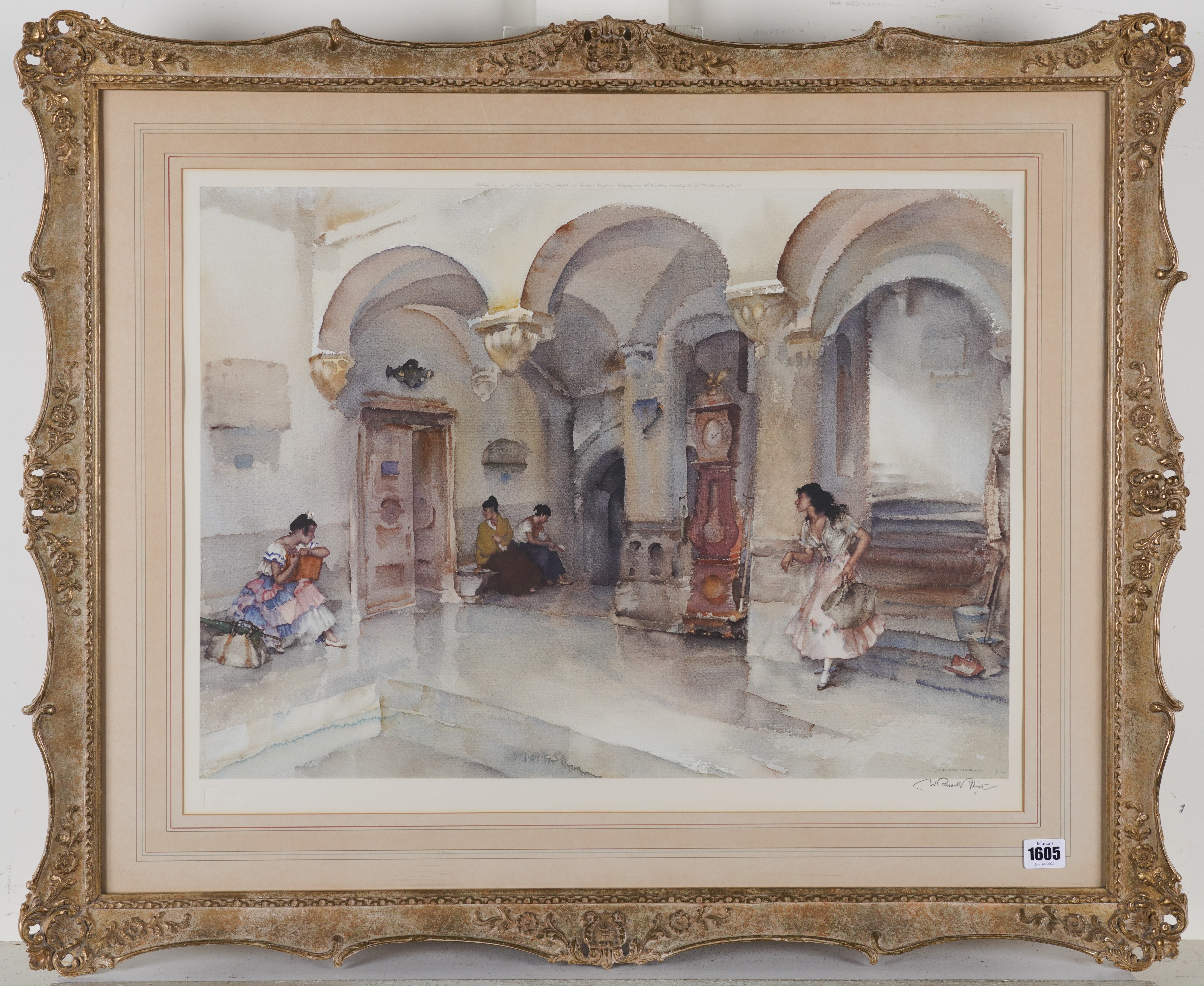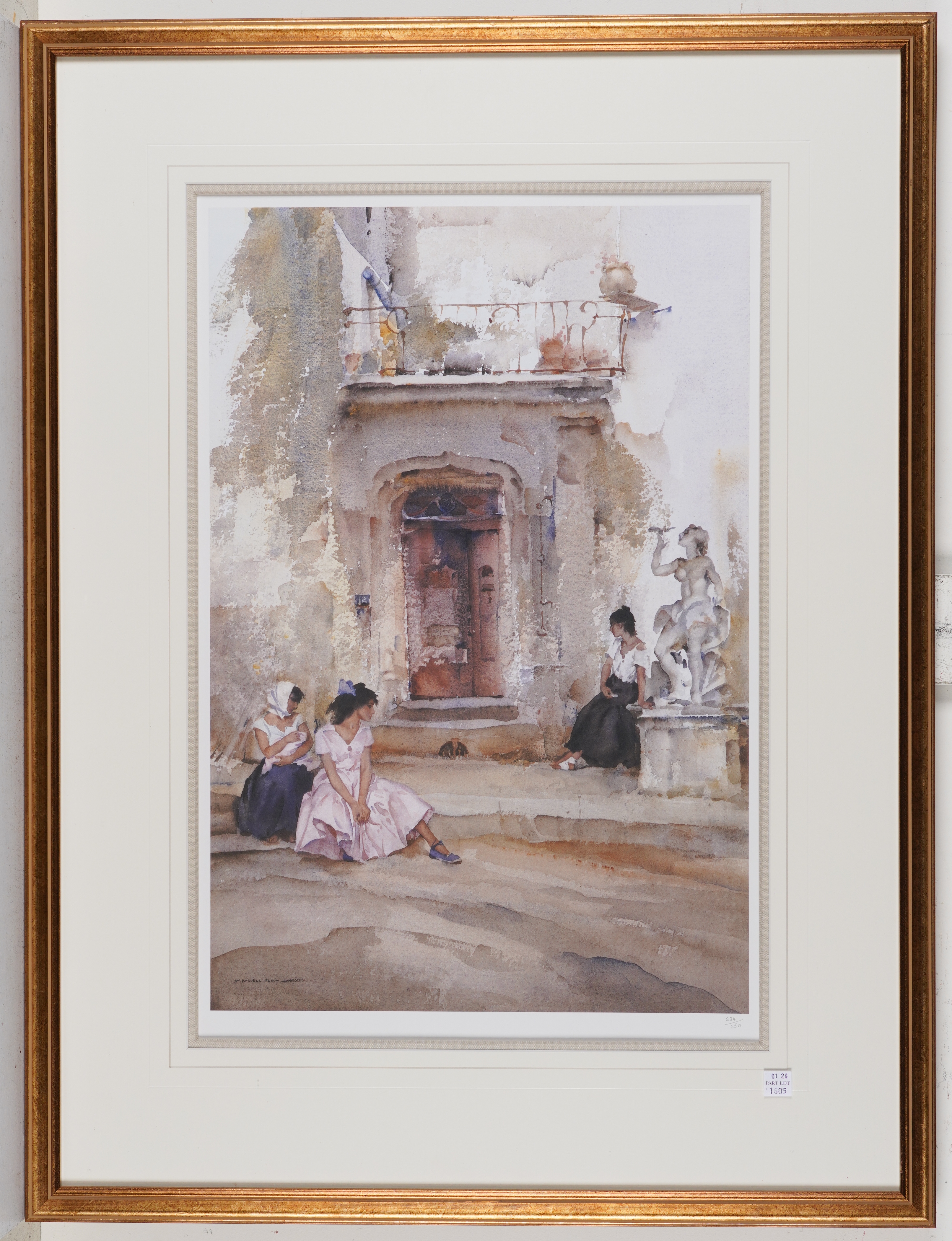 together with a print in colours After Sir William Russell Flint, Ancient Doorway, Cordes, numbered in pencil '624/650' and with 'WRF' blindstamp (in lower margin), 52.5 x 35cm