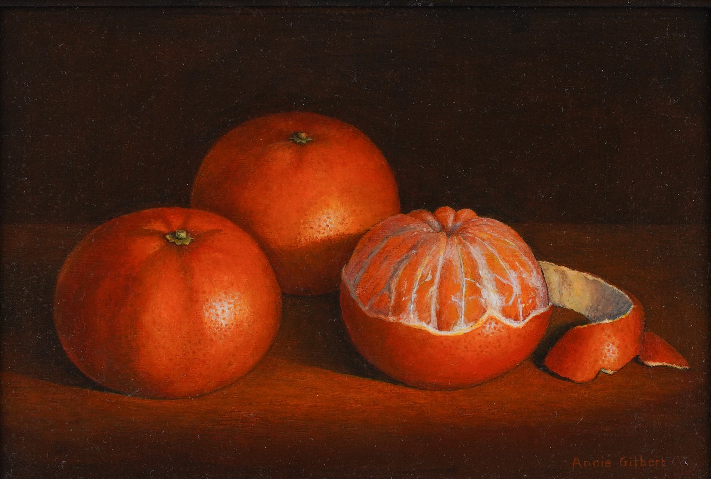 Clementines signed 'Annie Gilbert' (lower right) oil on board 15.5 x 22.5cm ARR