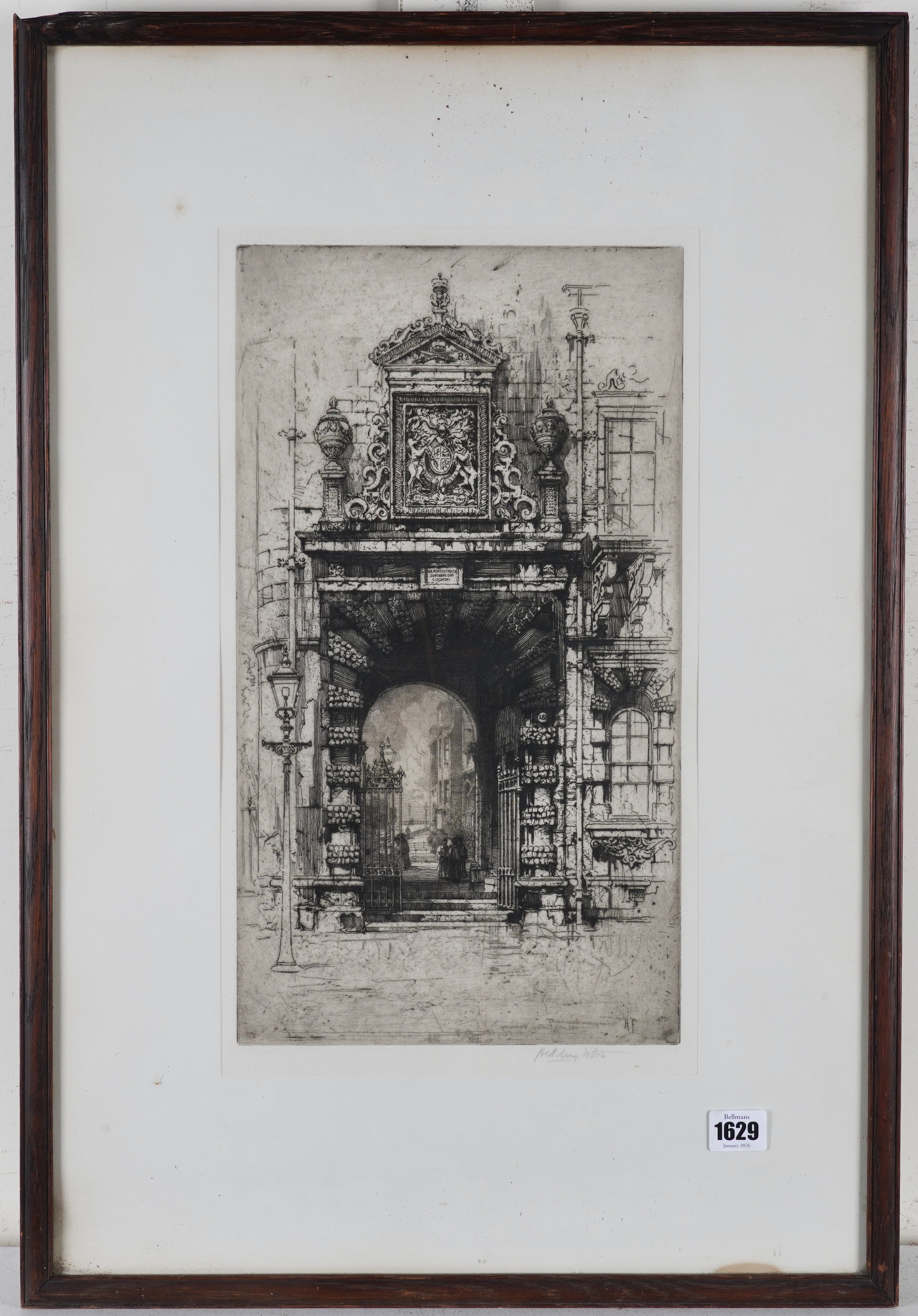 Old Glasgow College Gateway signed in pencil 'Hedley Fitton' (in lower margin) etching 42.5 x 24cm