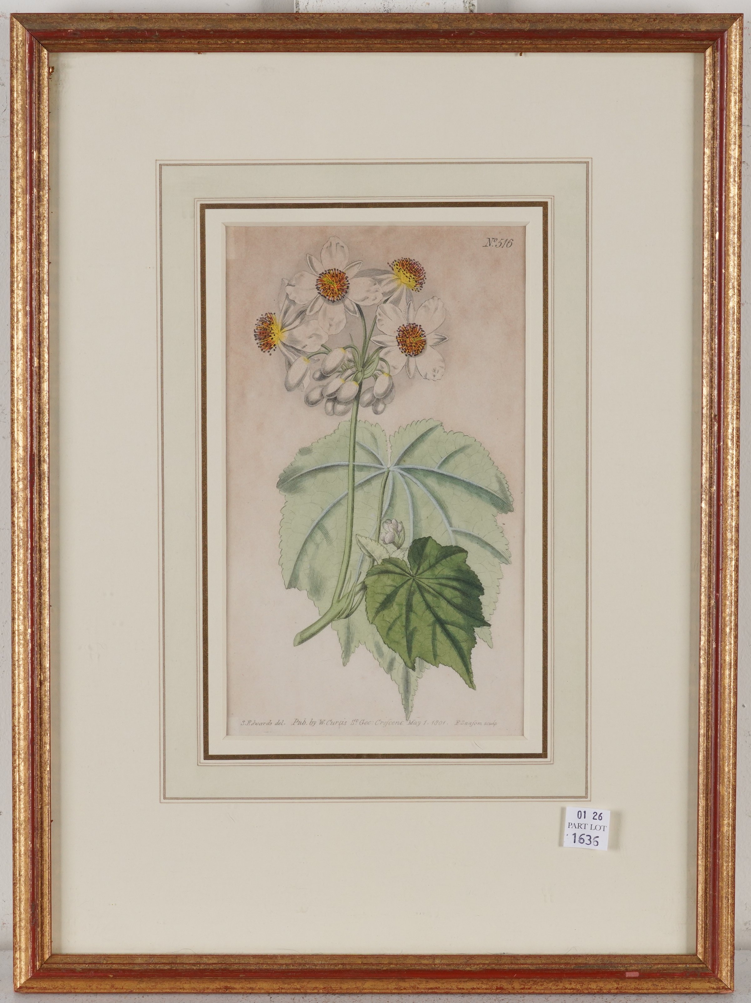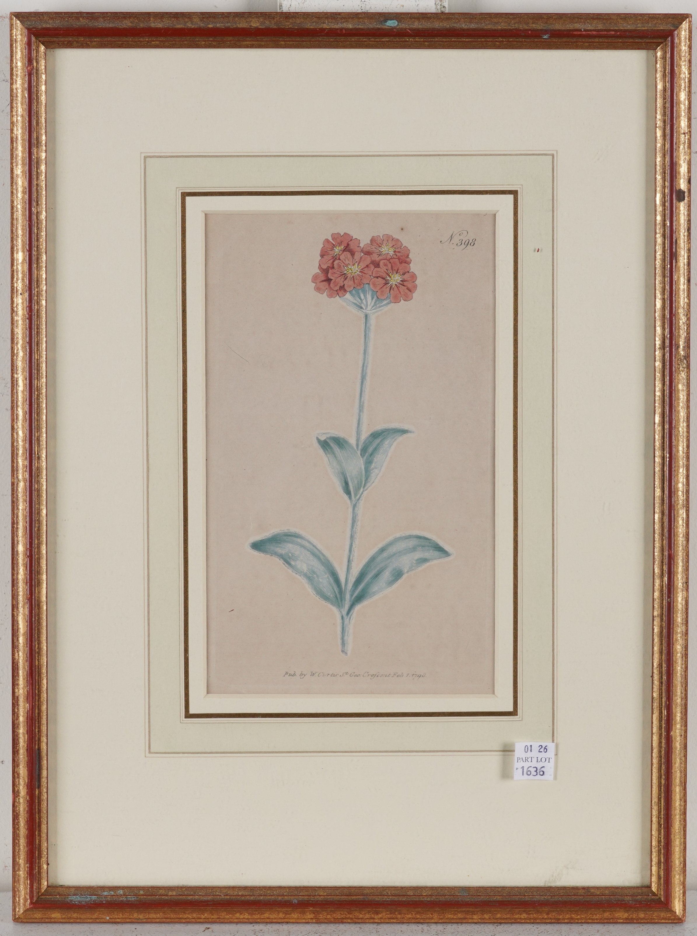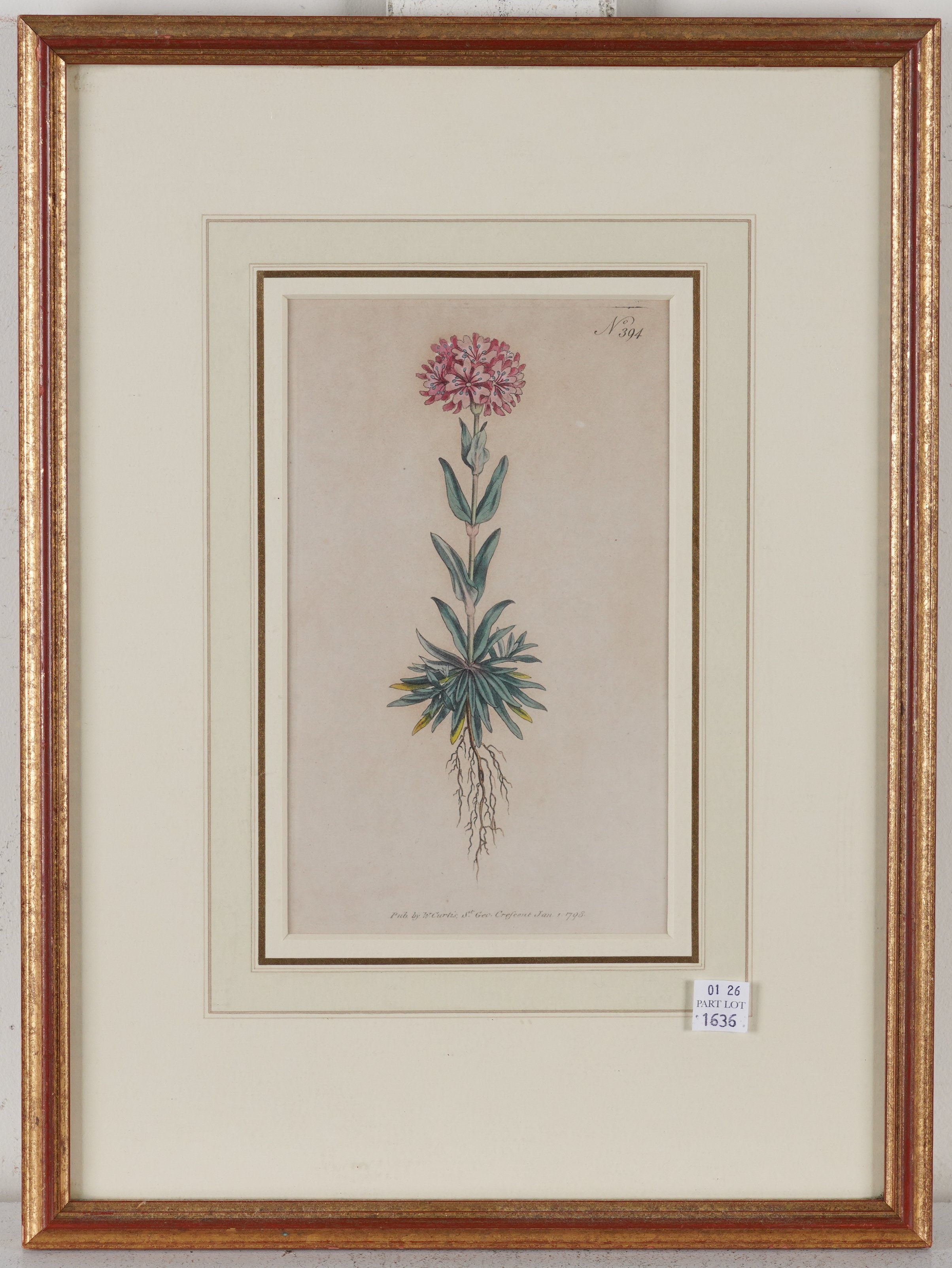together with three other engravings of flower studies, published by W Curtis, published 1796-1798, each 20 x 12cm