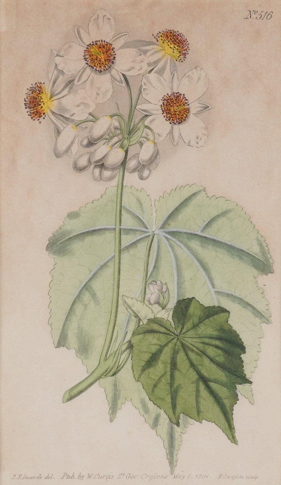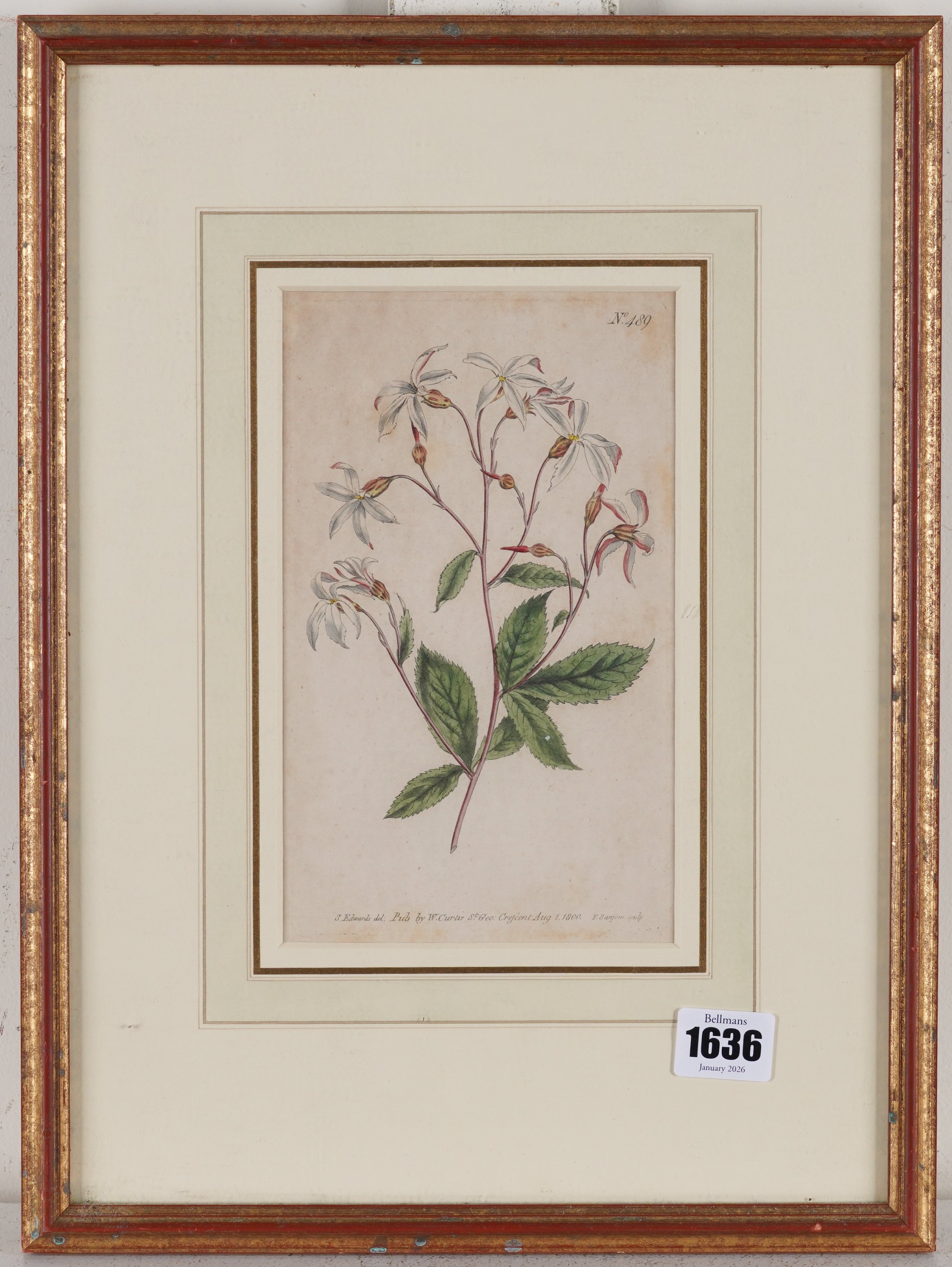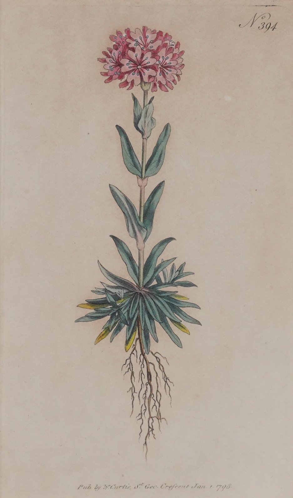 together with three other engravings of flower studies, published by W Curtis, published 1796-1798, each 20 x 12cm