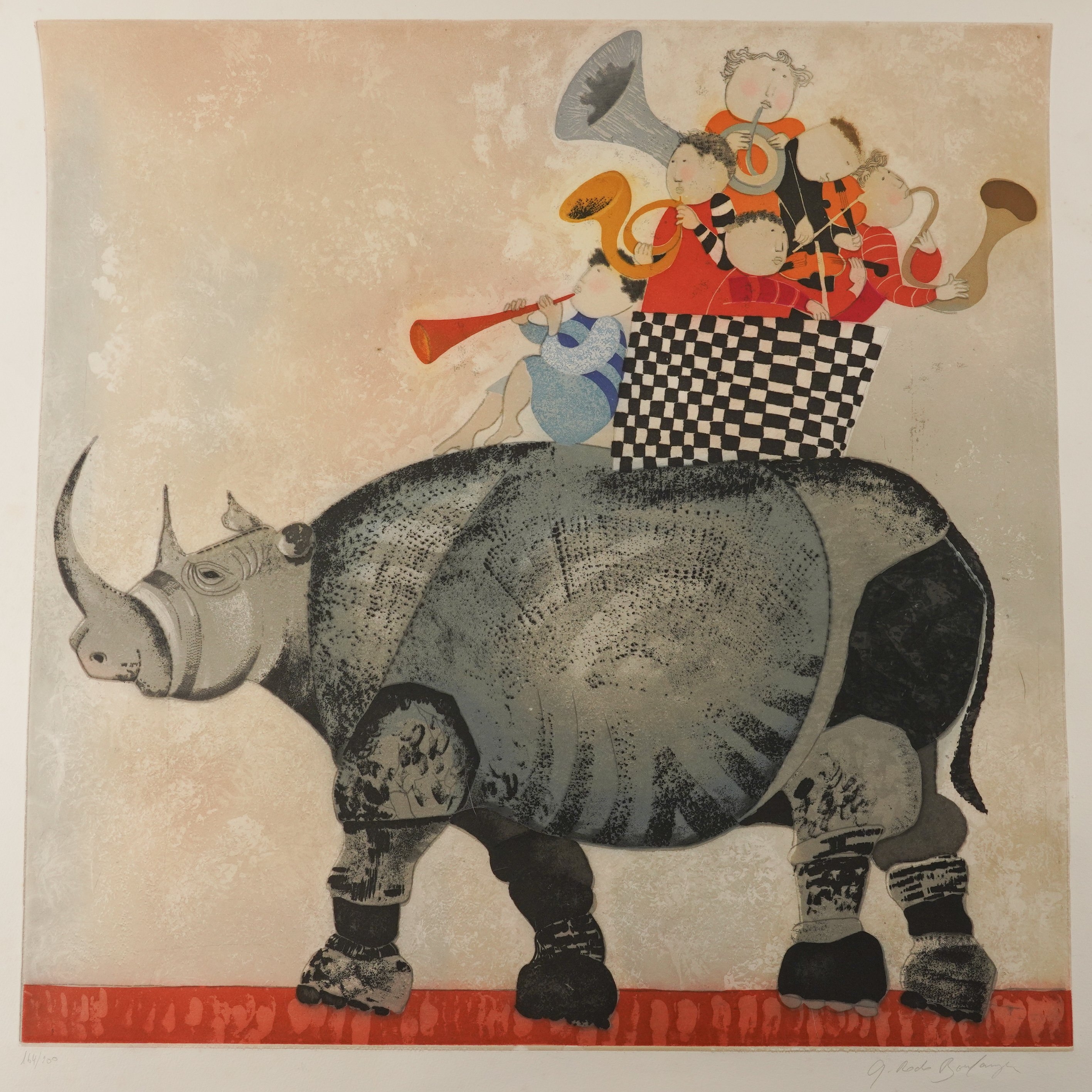 together with two lithographs in colour by the same hand, Chat, signed and numbered in pencil '8/25', artist's proof, 35 x 35cm; and Chien, signed and numbered in pencil '6/25', artist's proof, 35 x 35cm, (both unframed)