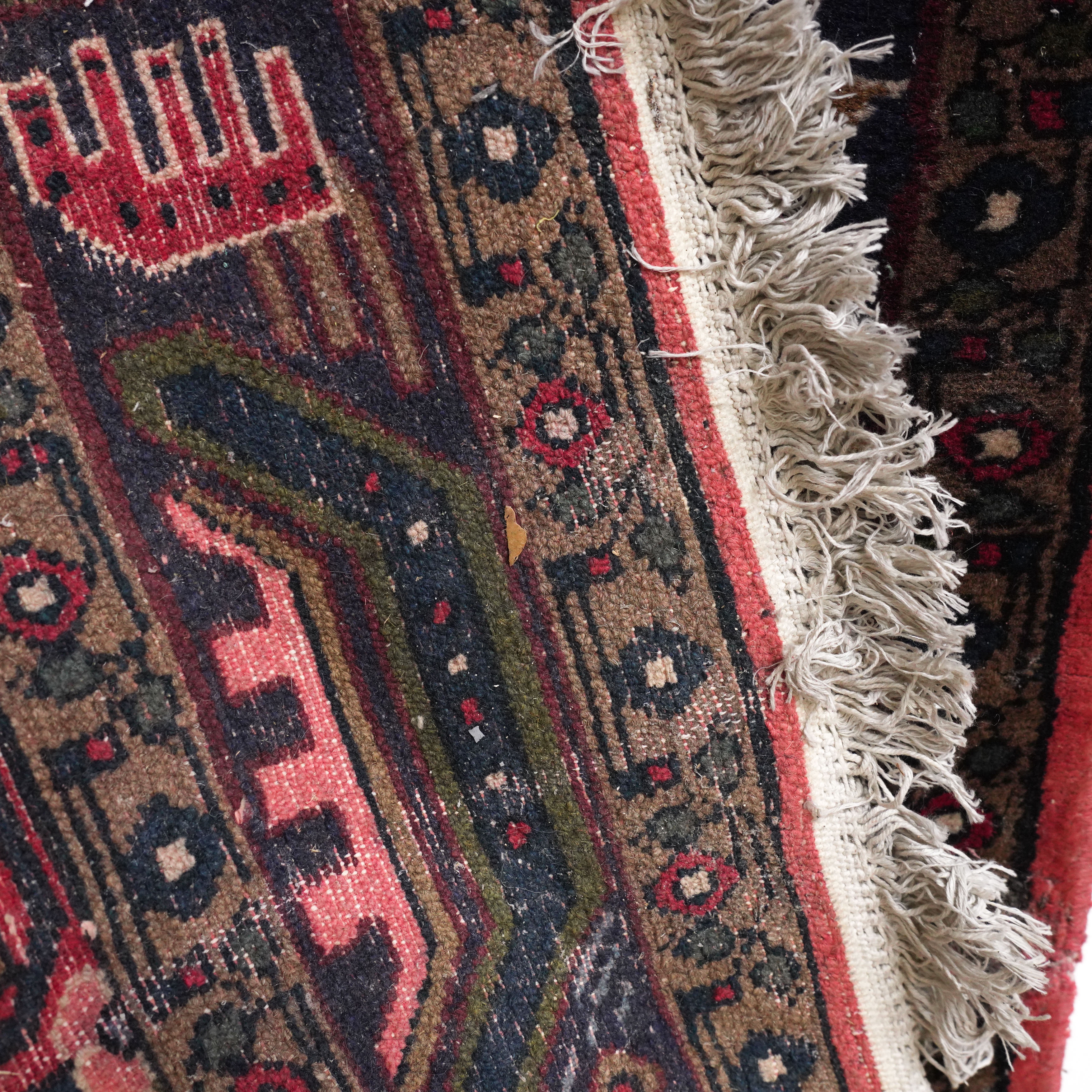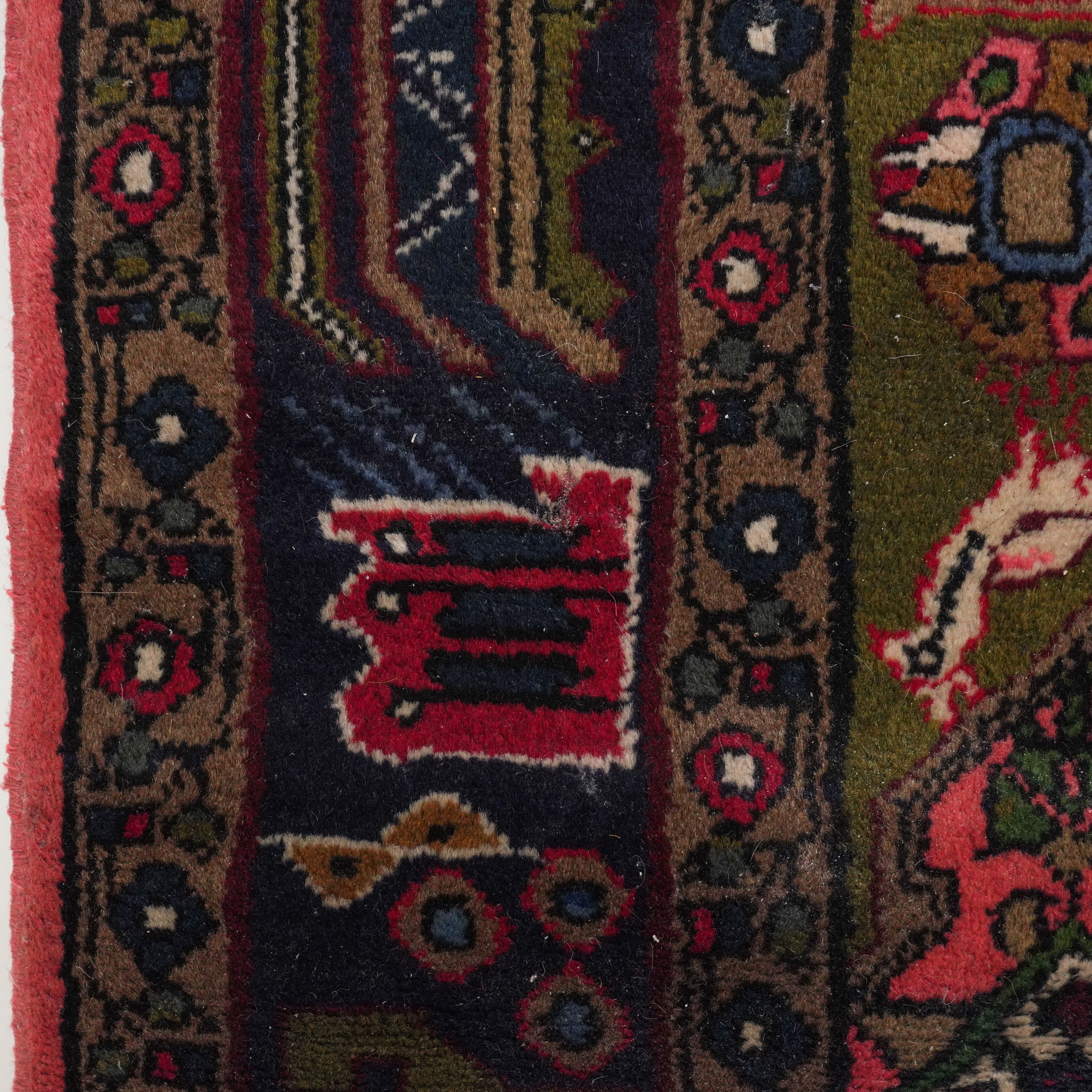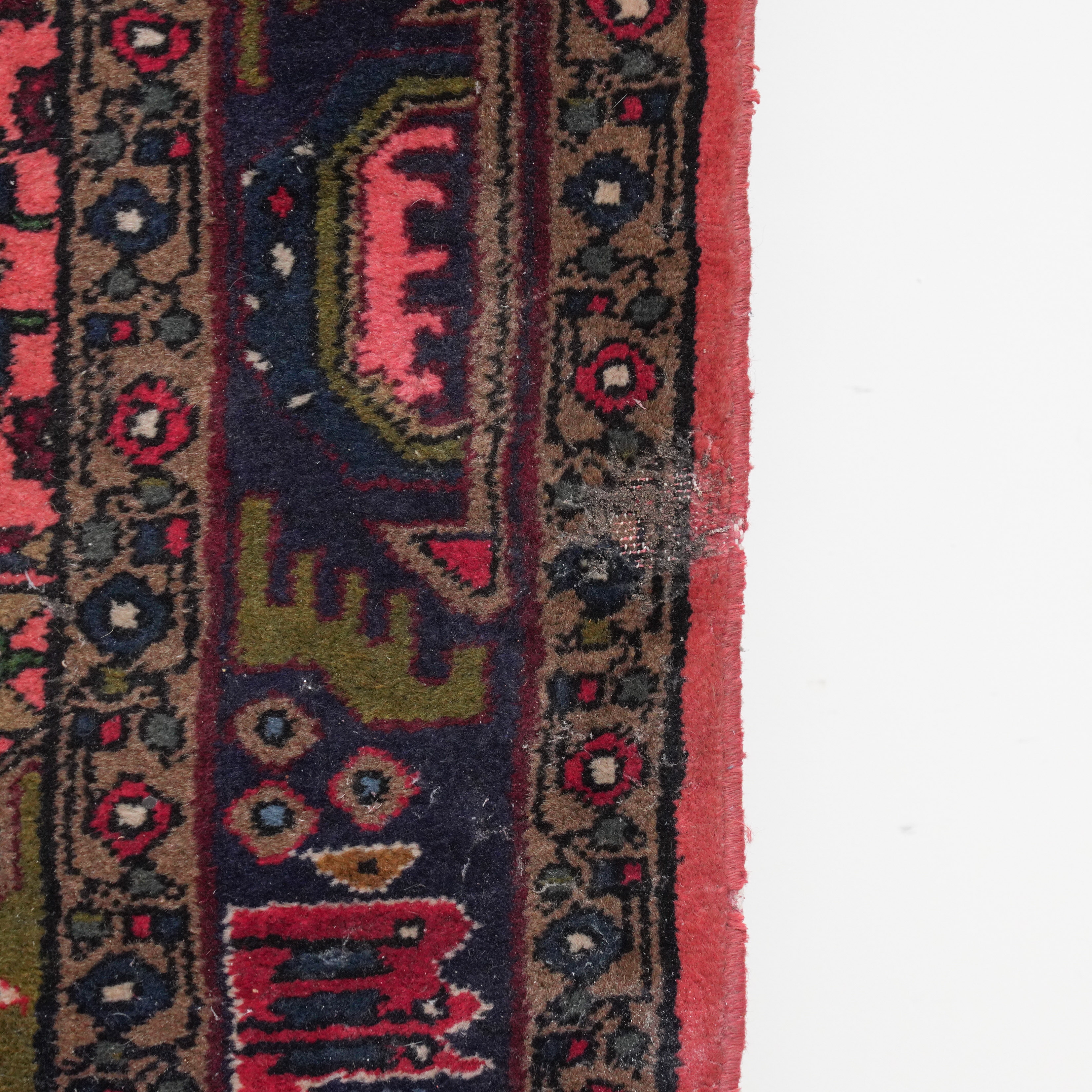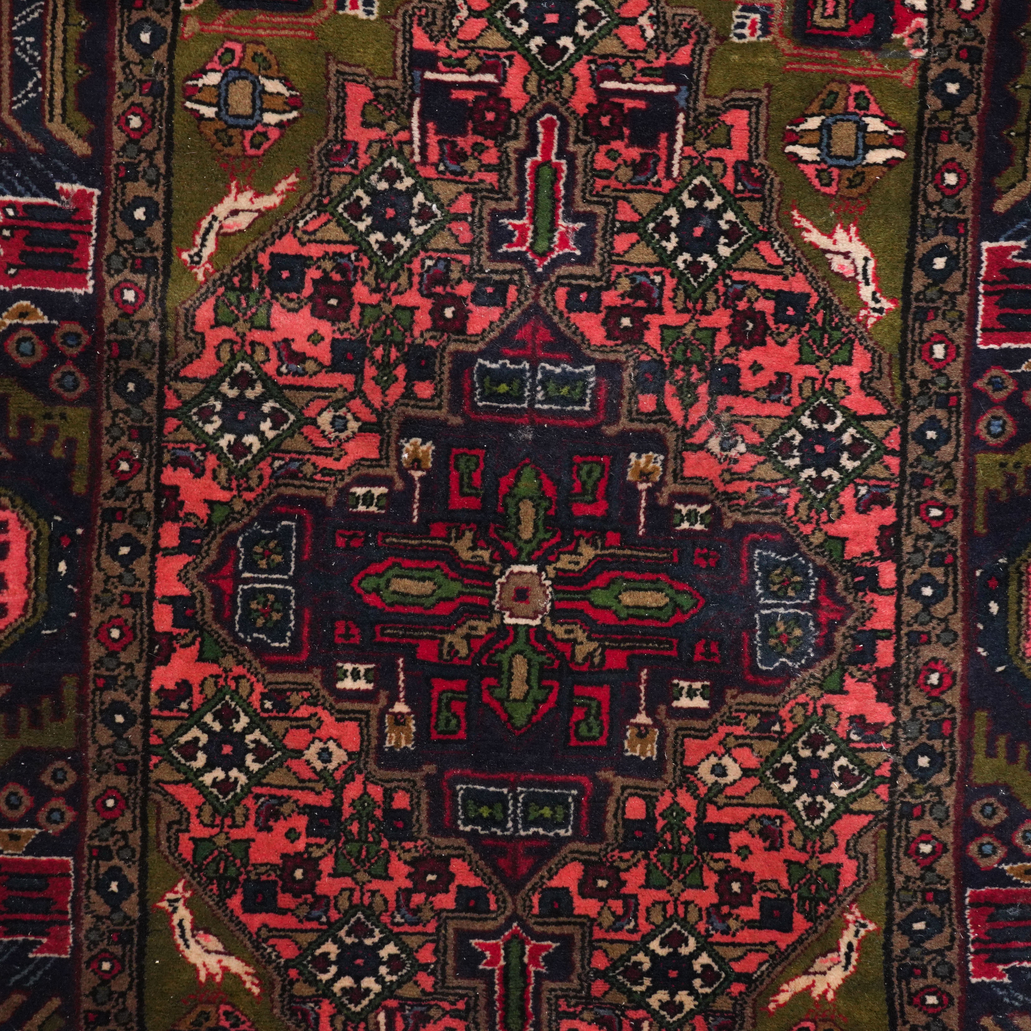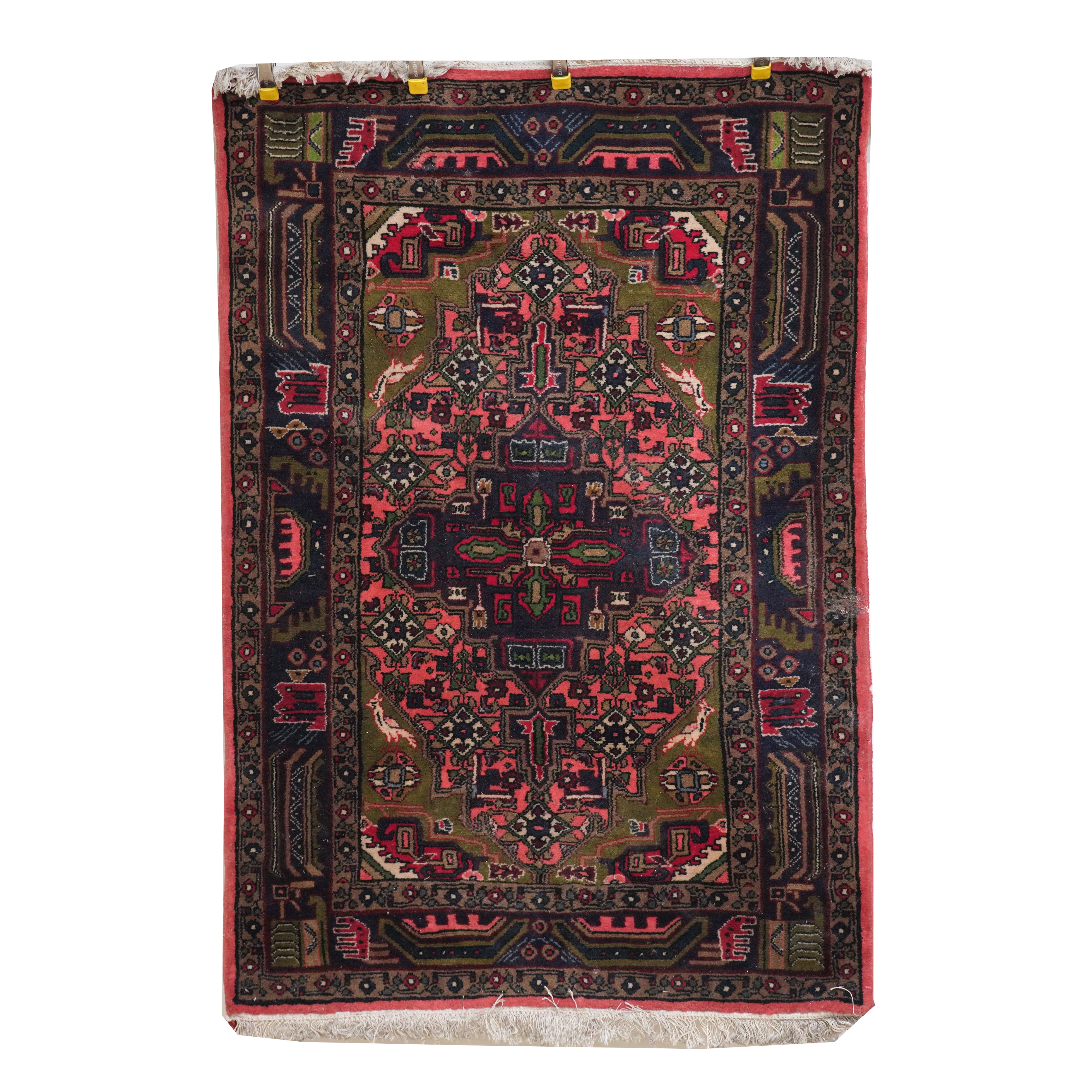 The pink herate field with an indigo medallion, green spandrels; an indigo stylised medallion border; 151cm x 103cm, circa 1980s