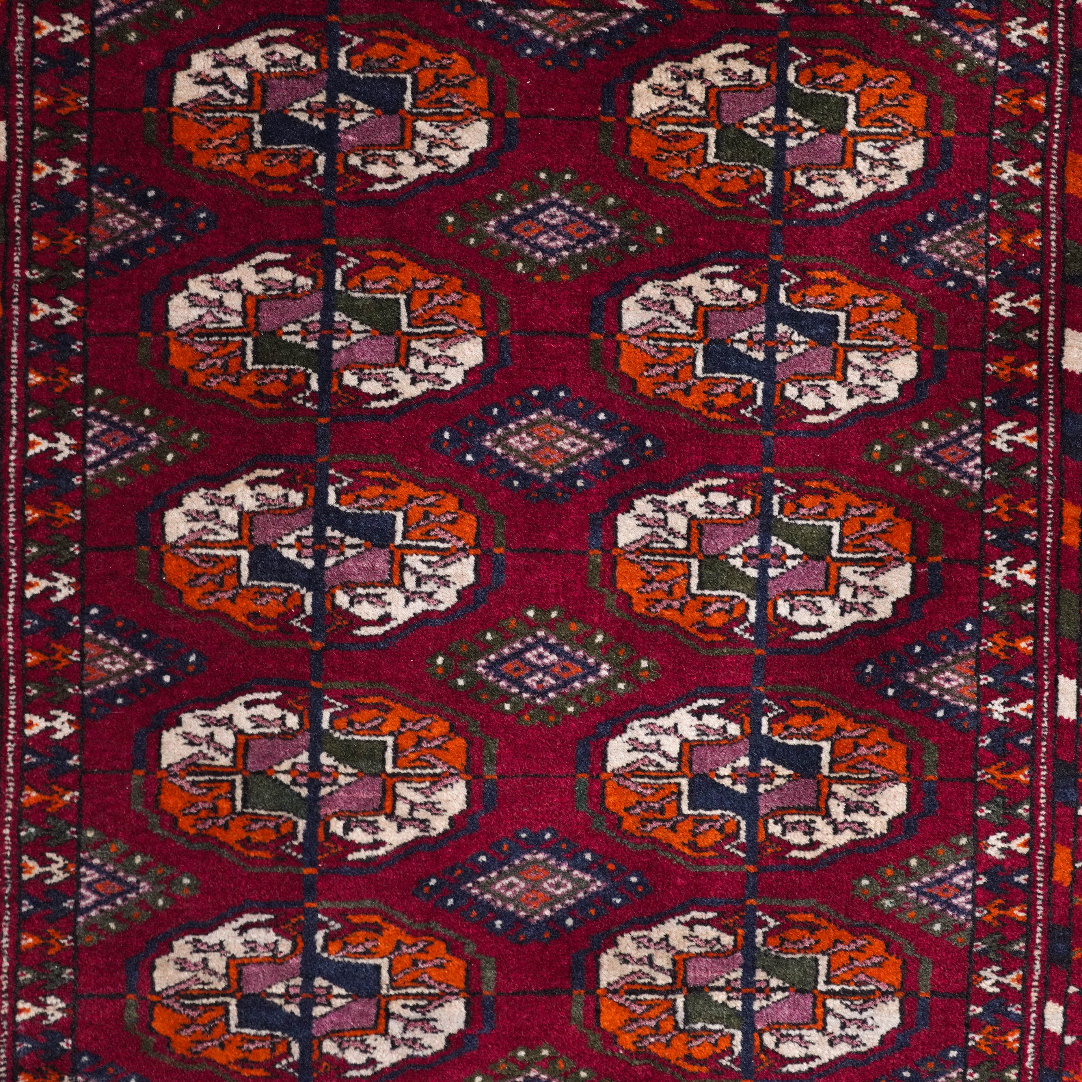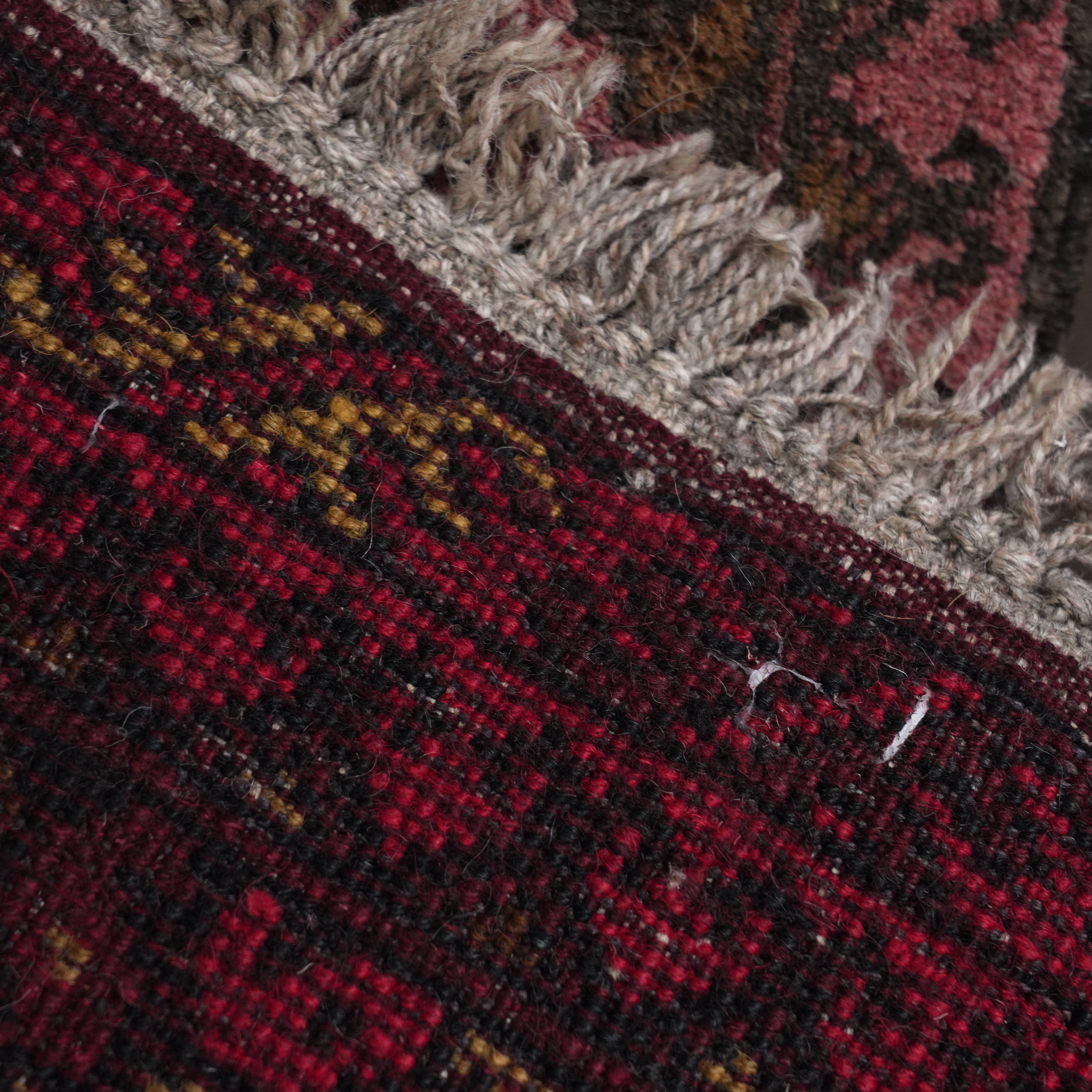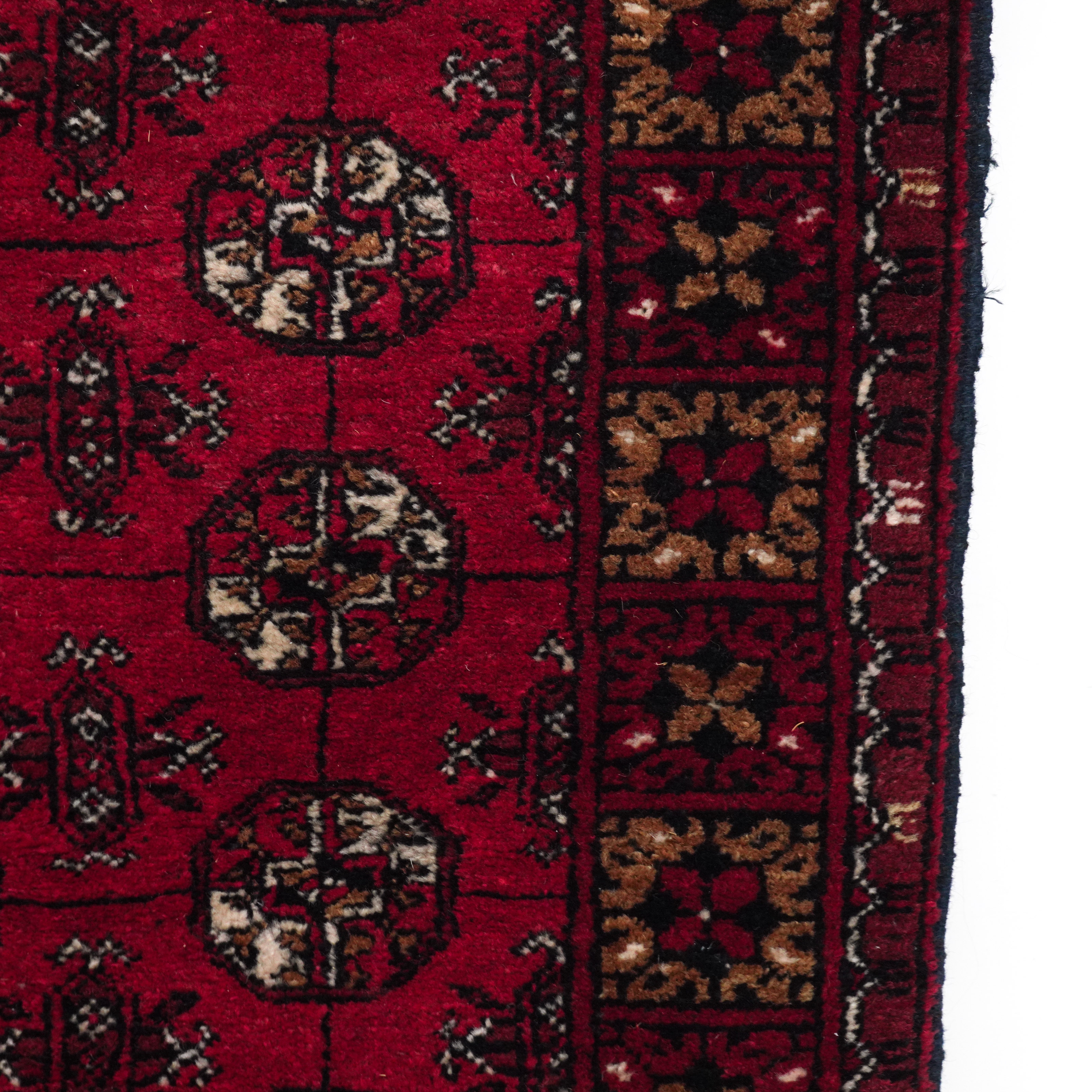 The madder field with two columns of seven guls; a sunburst border, skirt ends; 127cm x 85cm, circa 1950s, an Afghan rug with two columns of six guls; a flower head border; 116cm x 75cm, modern, and an Afghan mat with six guls; 92cm x 49cm, modern
