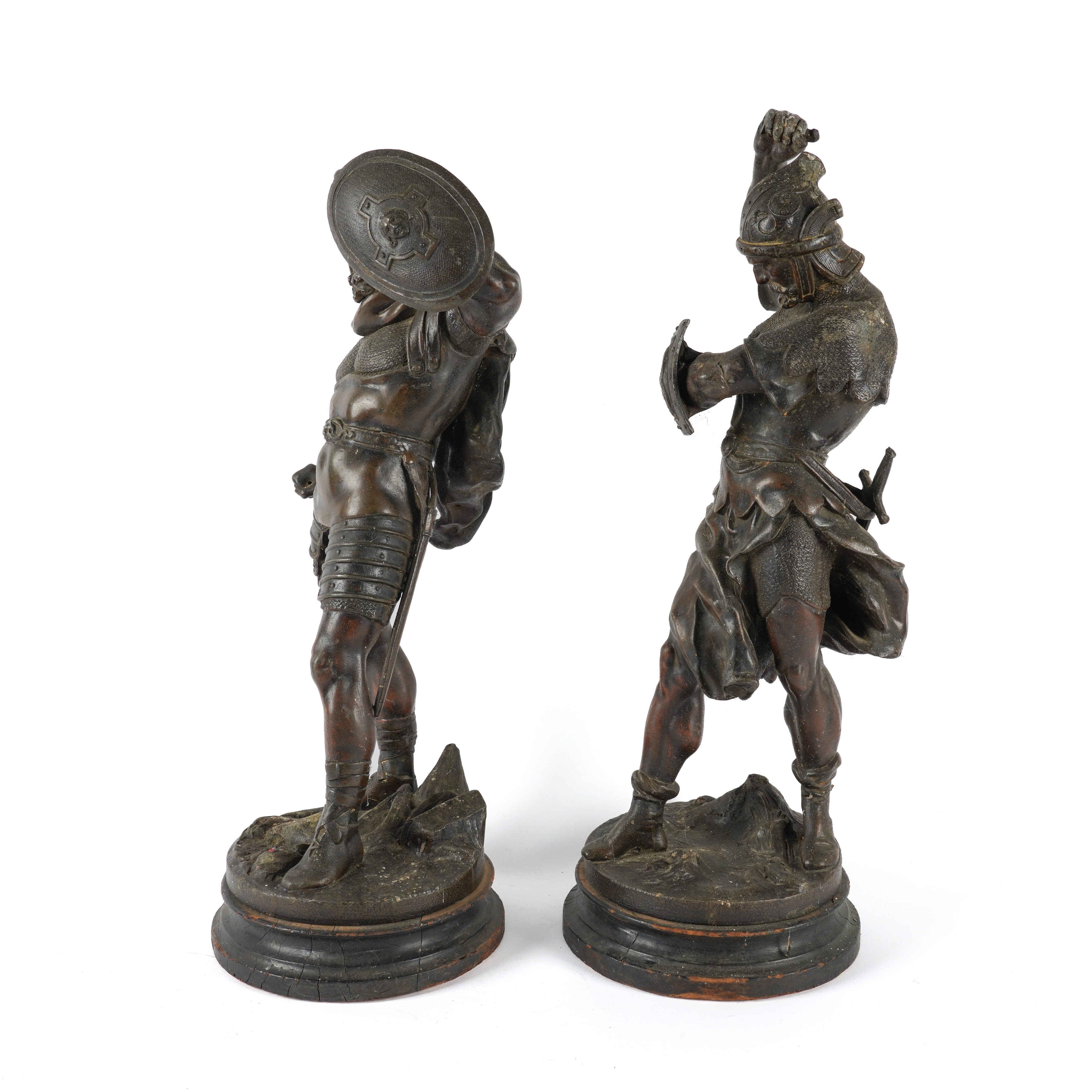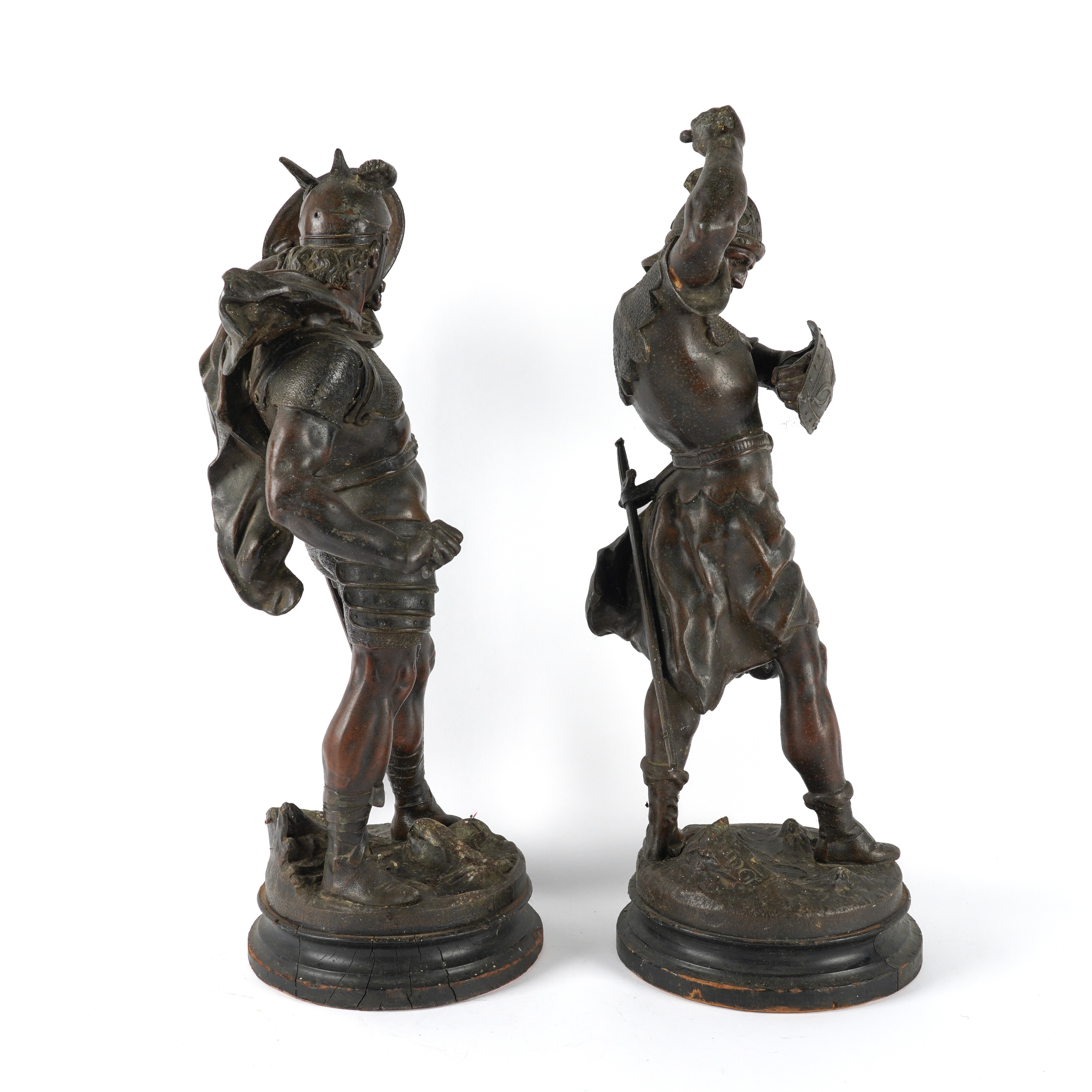 AFTER PIERRE-LOUIS DETRIER (FRENCH 1822-1897): A PAIR OF PATINATED SPELTER VIKING WARRIORS (2)