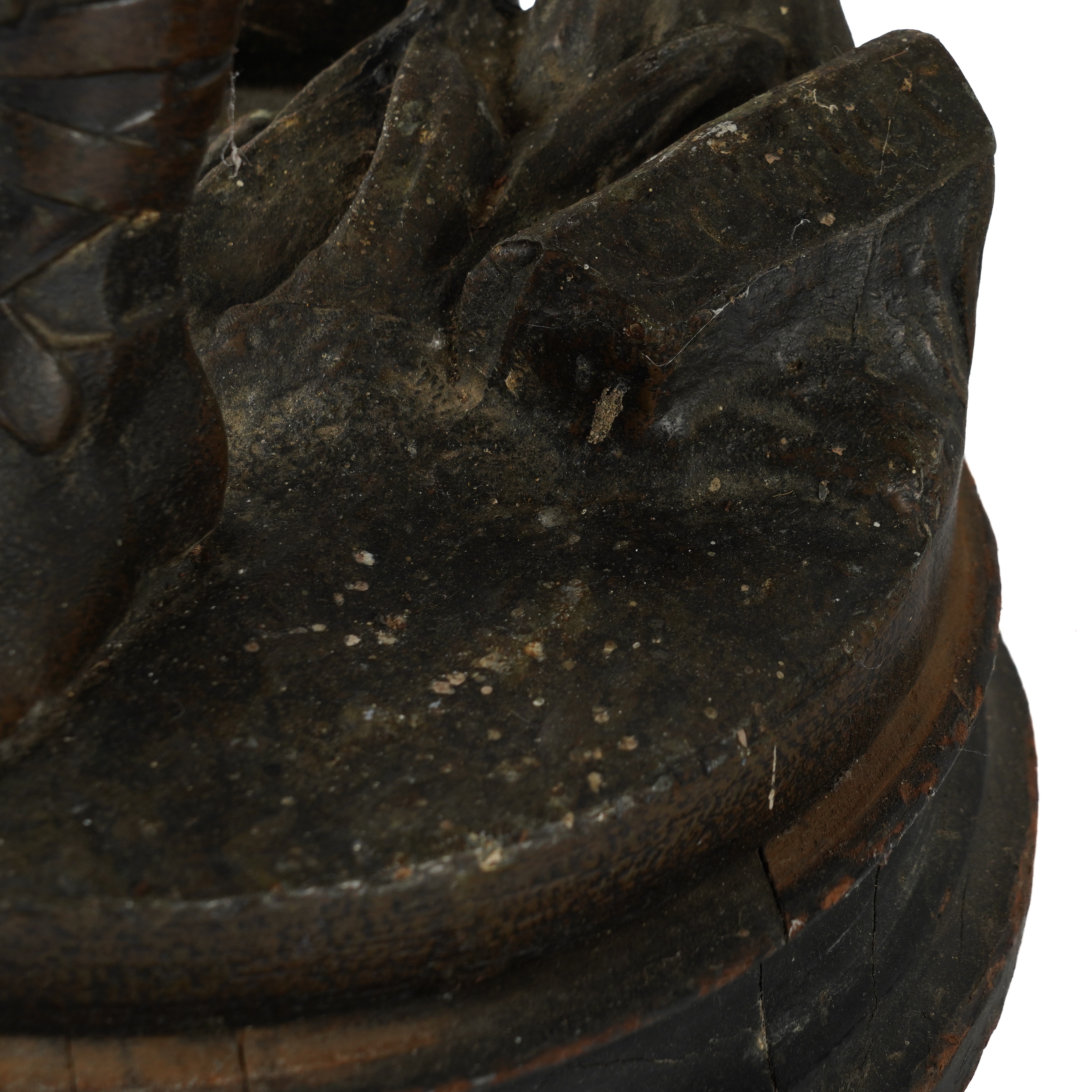 Modelled in armour, incised to the base, each on wooden bases, 58cm high