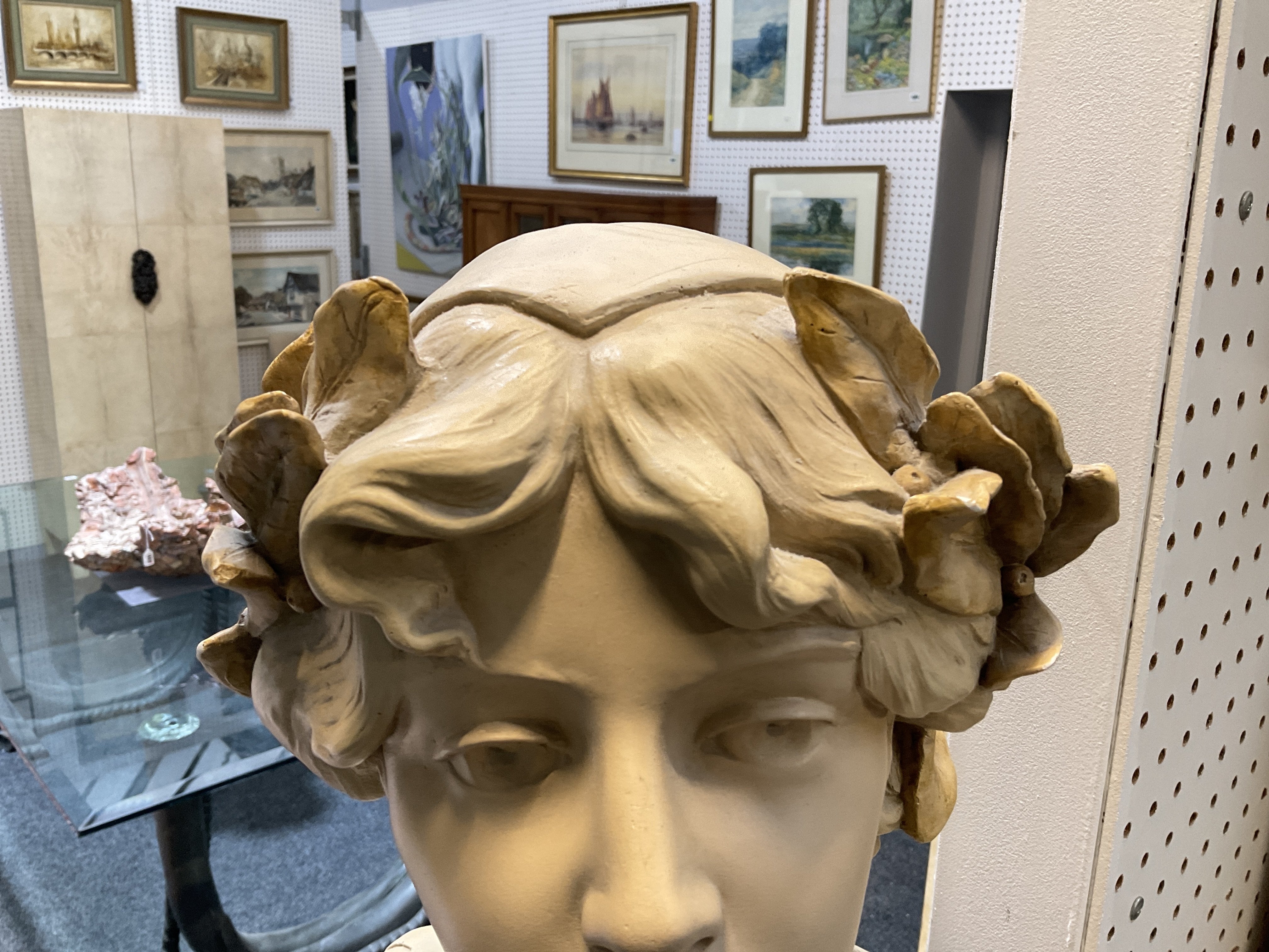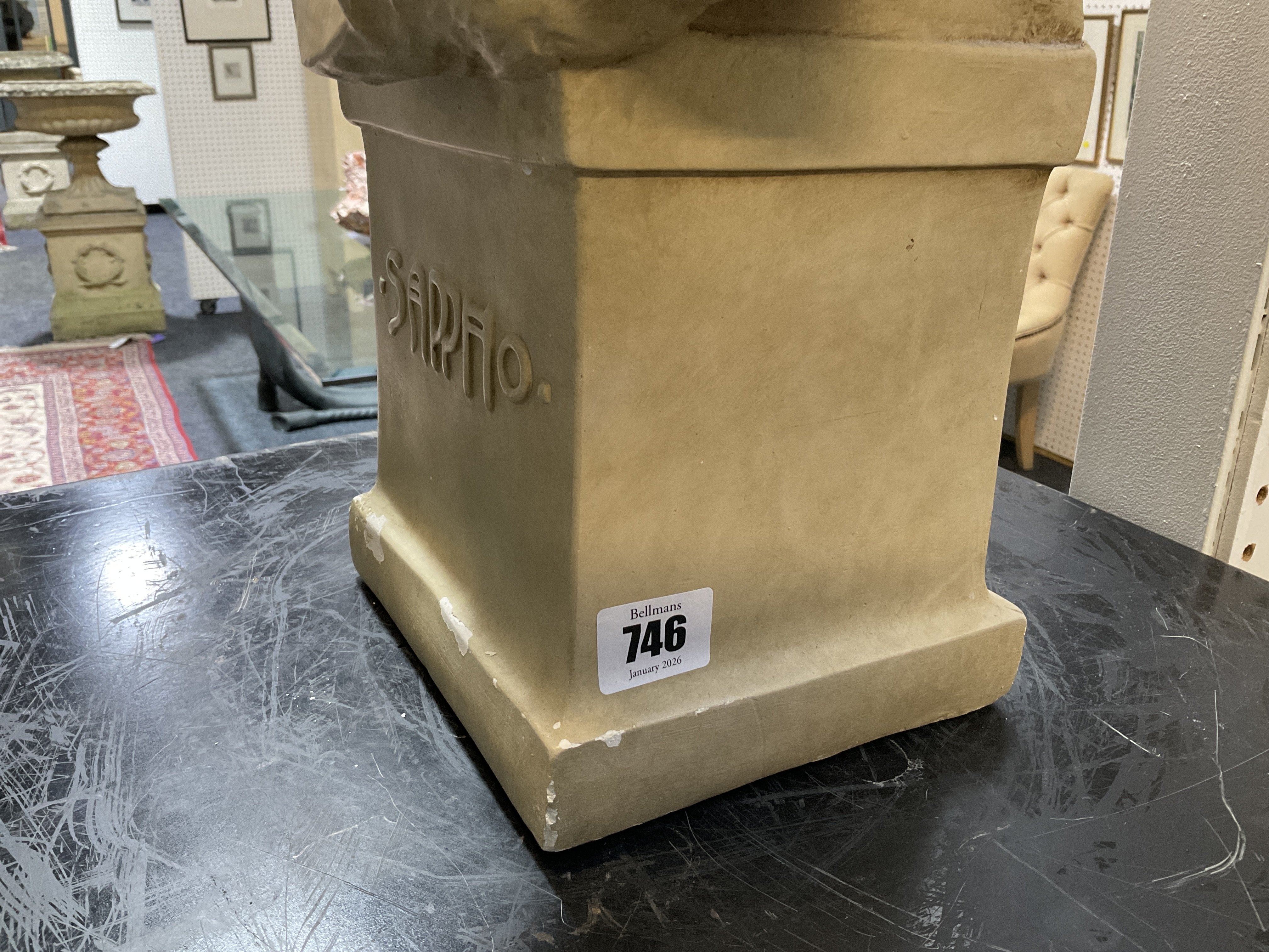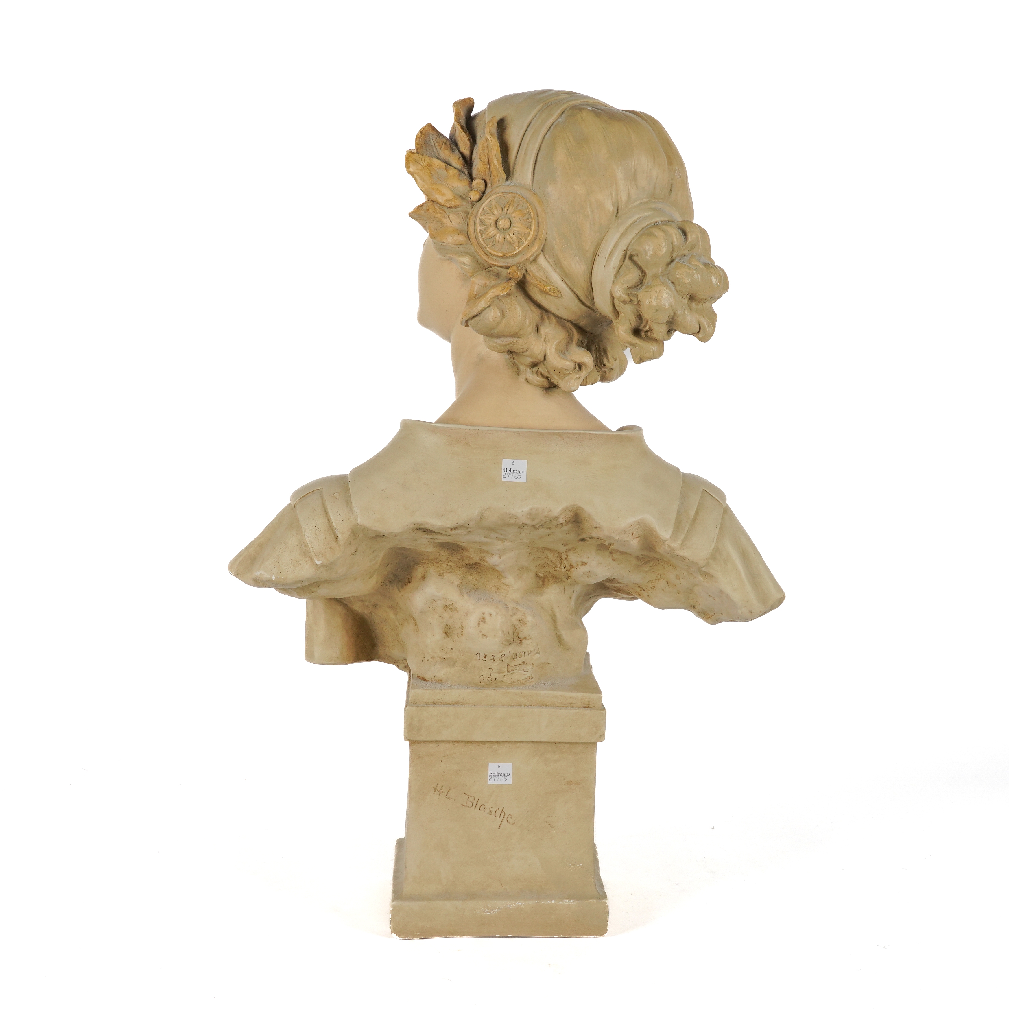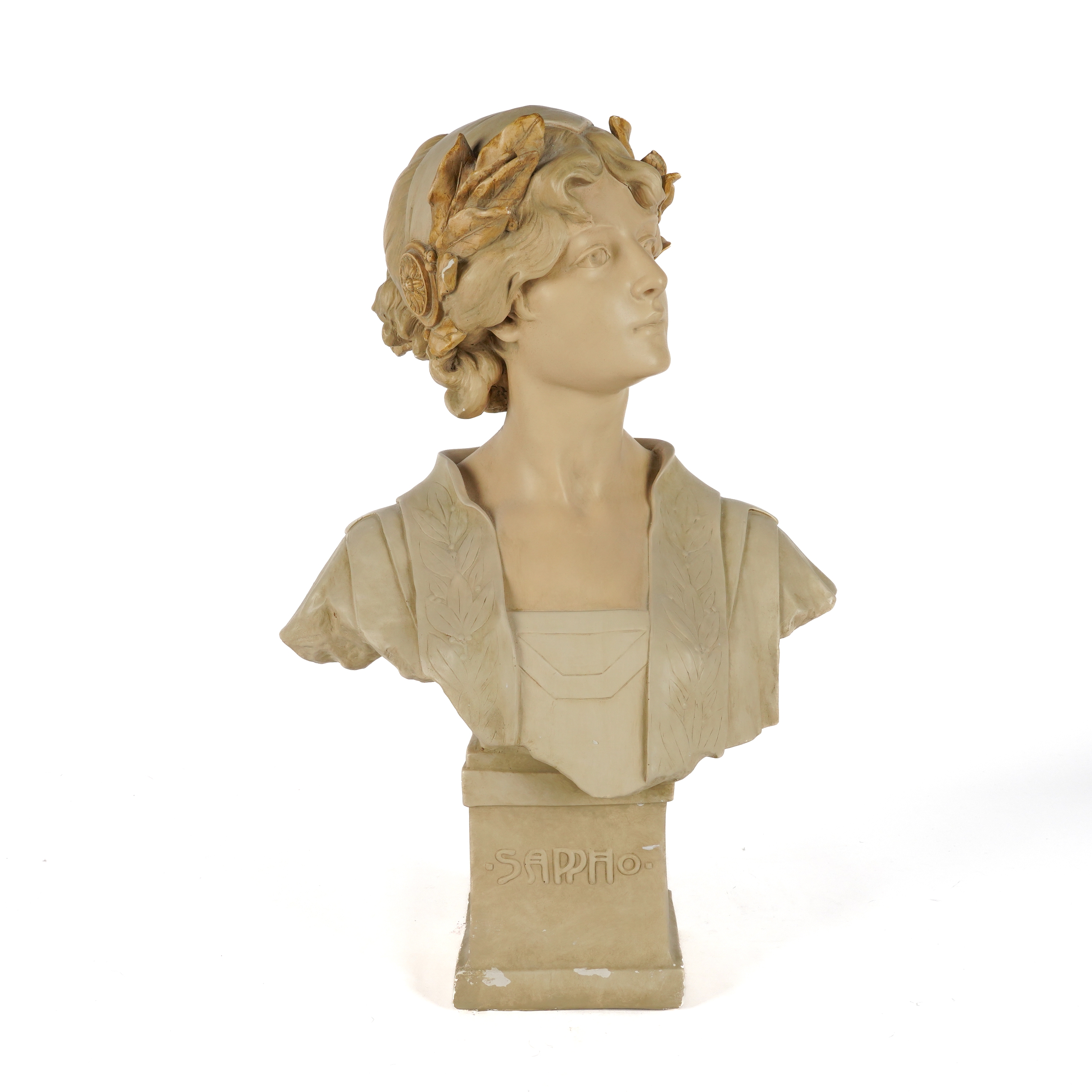 AFTER H. L BLASCHE (CIRCA1880-1950): AN ART NOUVEAU GERMAN PAINTED PLASTER BUST OF SAPPHO