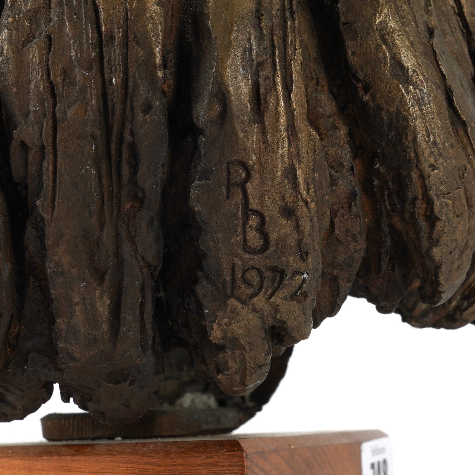 Modelled with short hair, inscribed to the cast 'R.B 1972', 30cm high