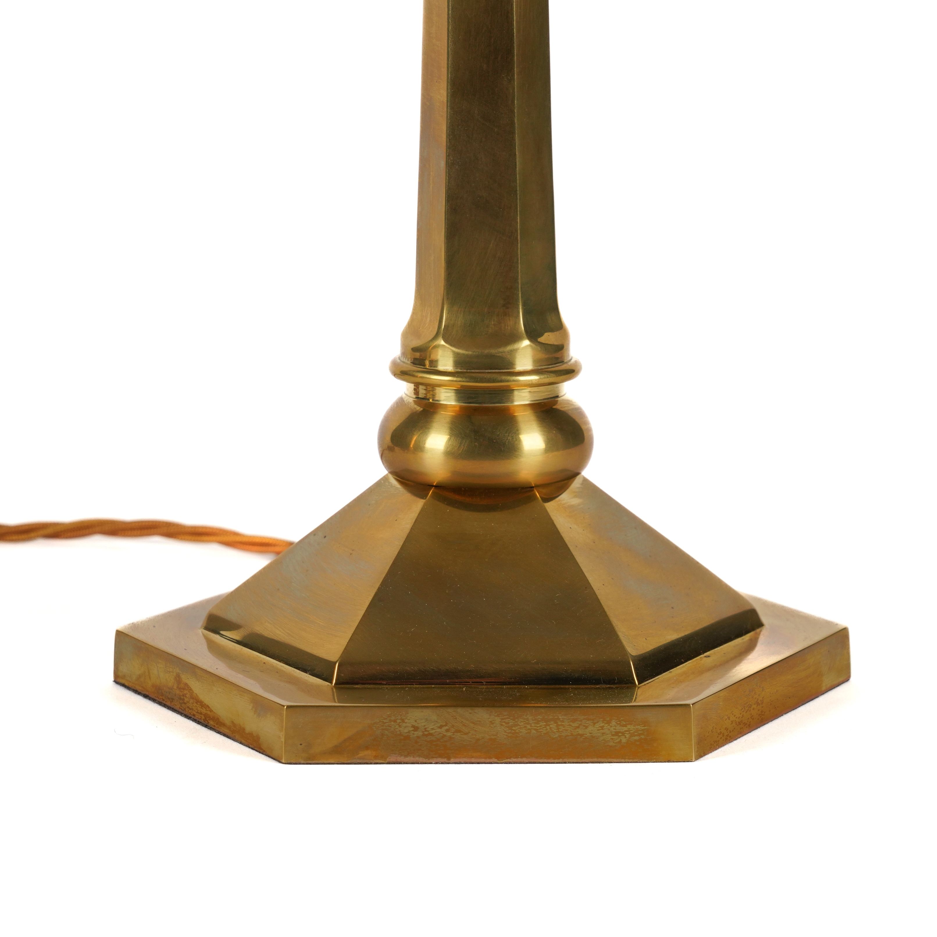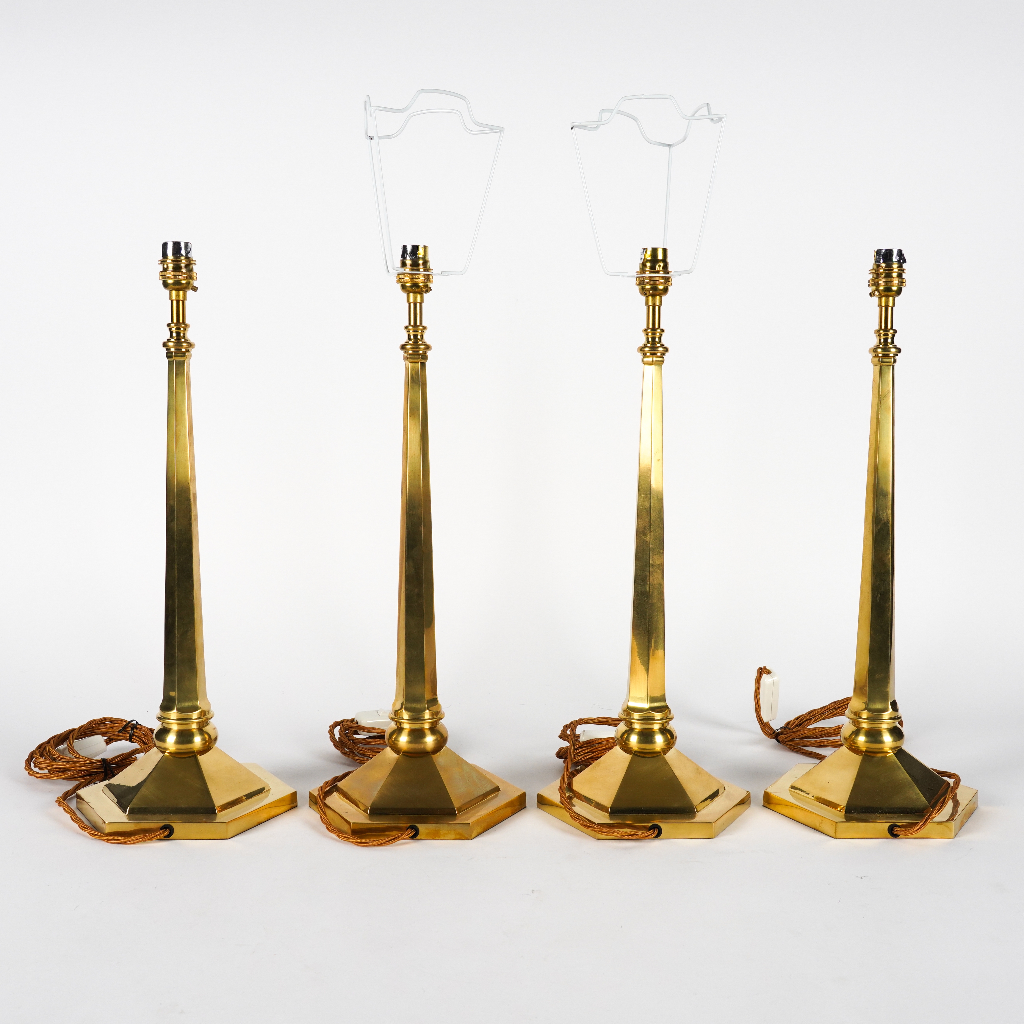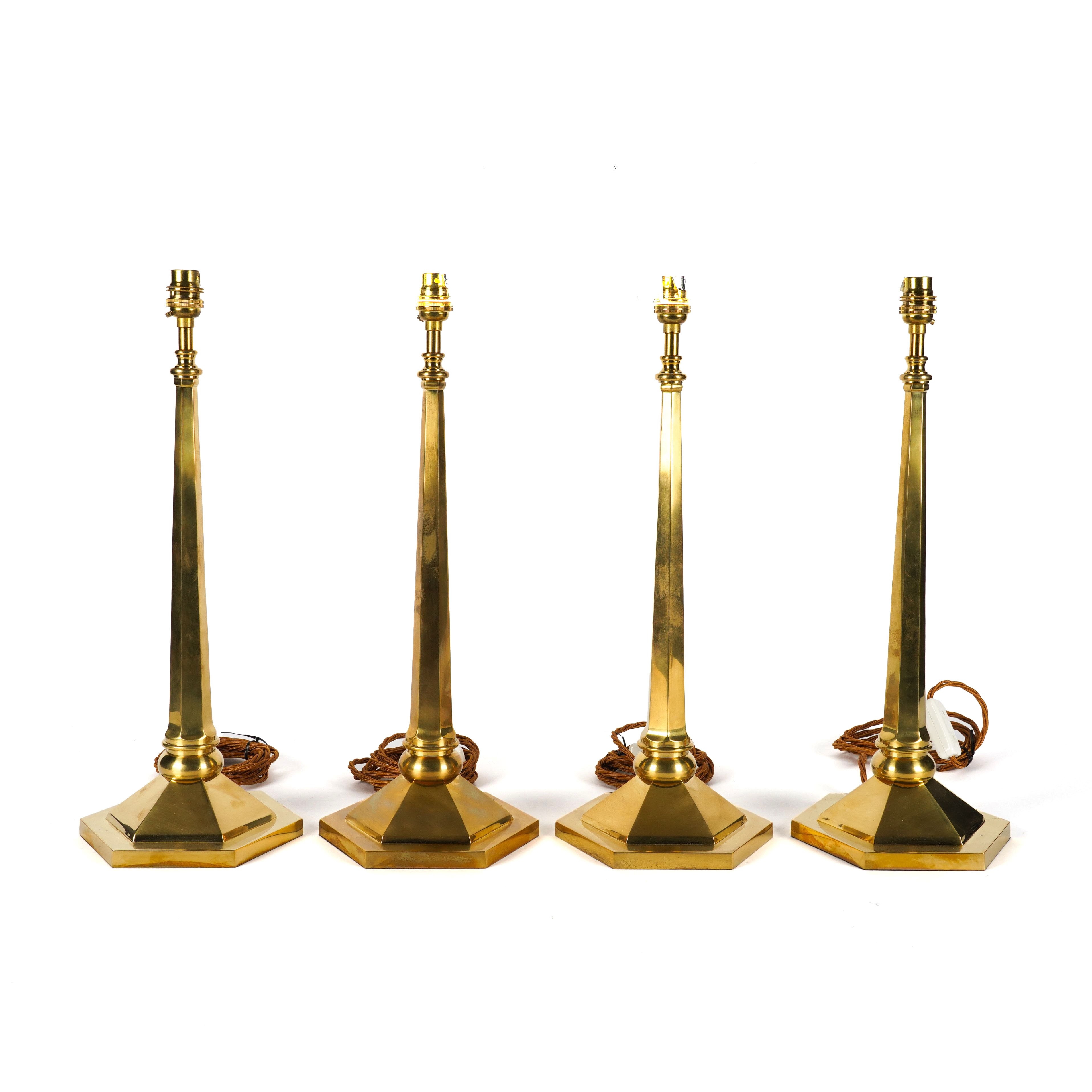 VAUGHAN DESIGNS: A SET OF FOUR POLISHED LACQUERED BRASS HEXAGONAL ‘CALSHOT’ TABLE LAMPS (4)