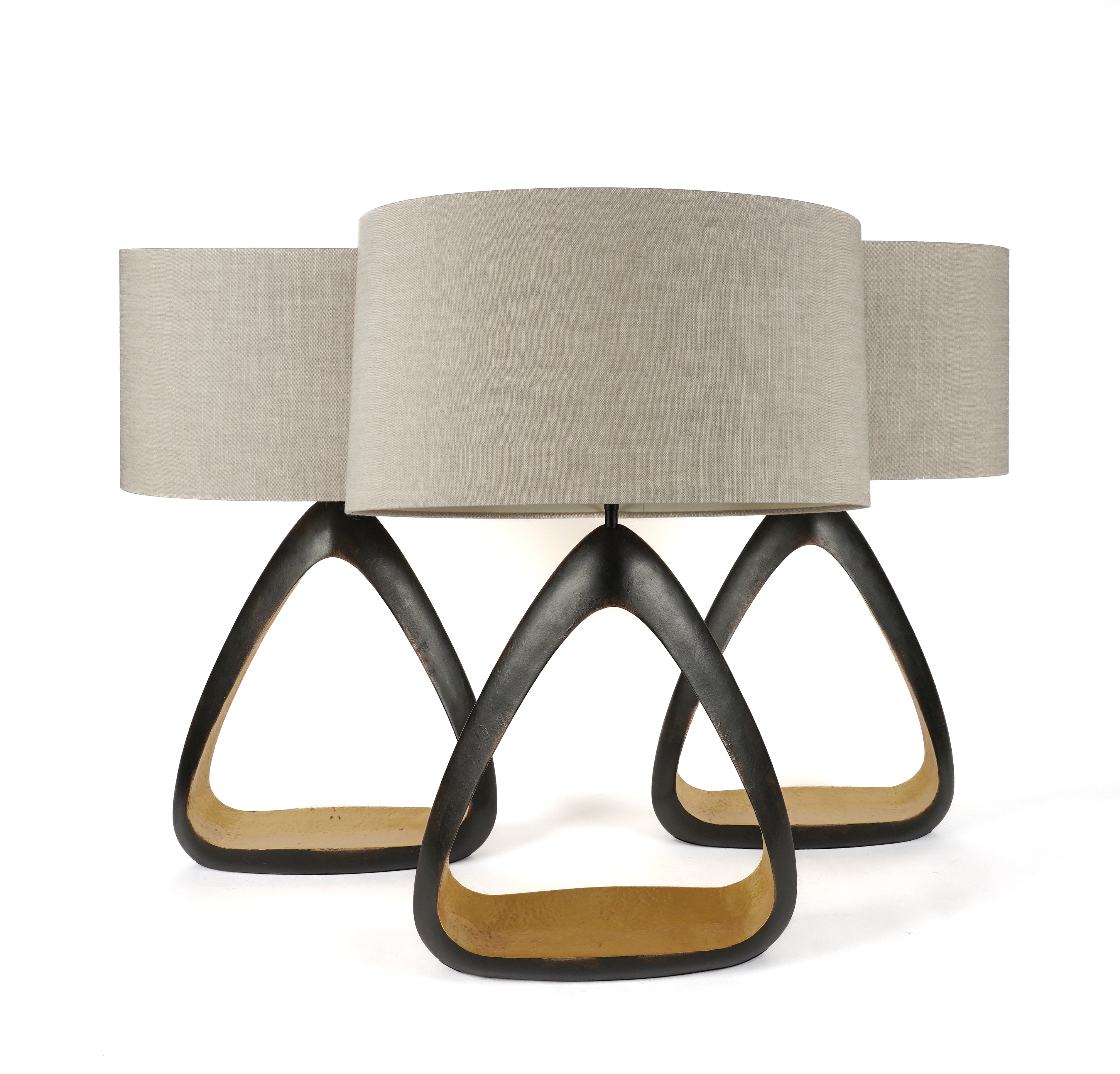 PORTA ROMANA: A SET OF THREE GILT AND BRONZE PATINATED COMPOSITE ‘BIANCA’ TABLE LAMPS (3)