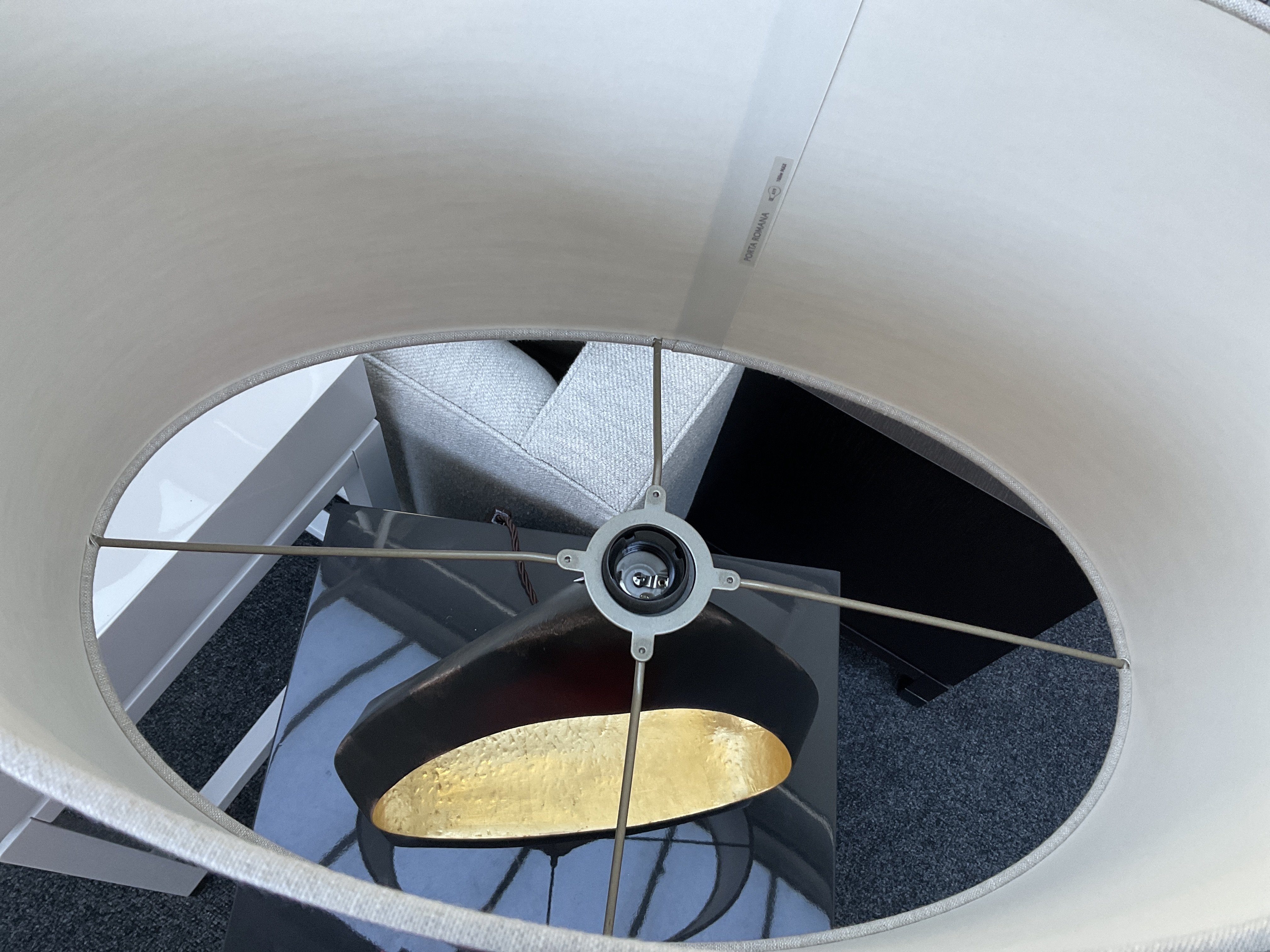 Of prism form, retailer’s label to underside, 75cm high including elliptical shade