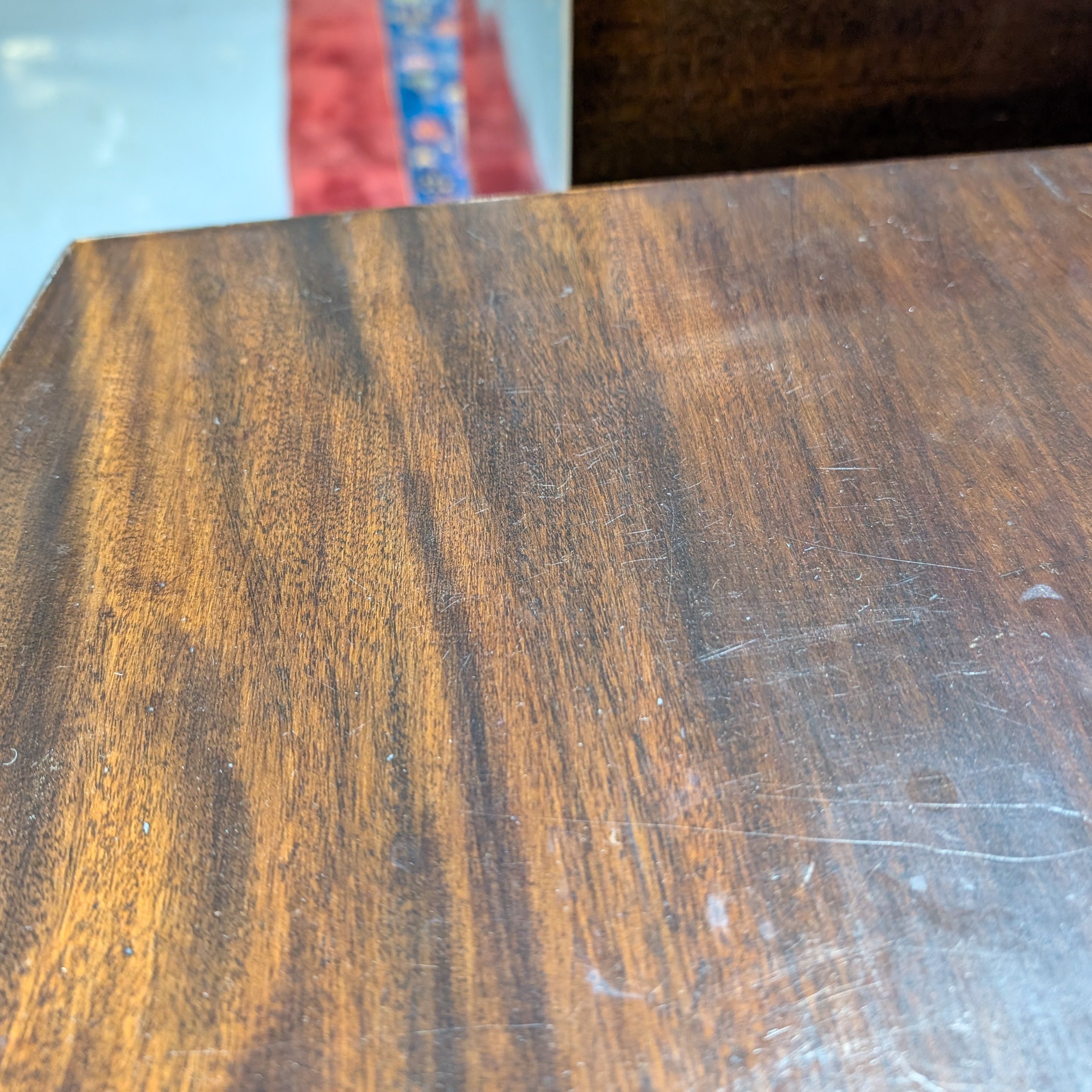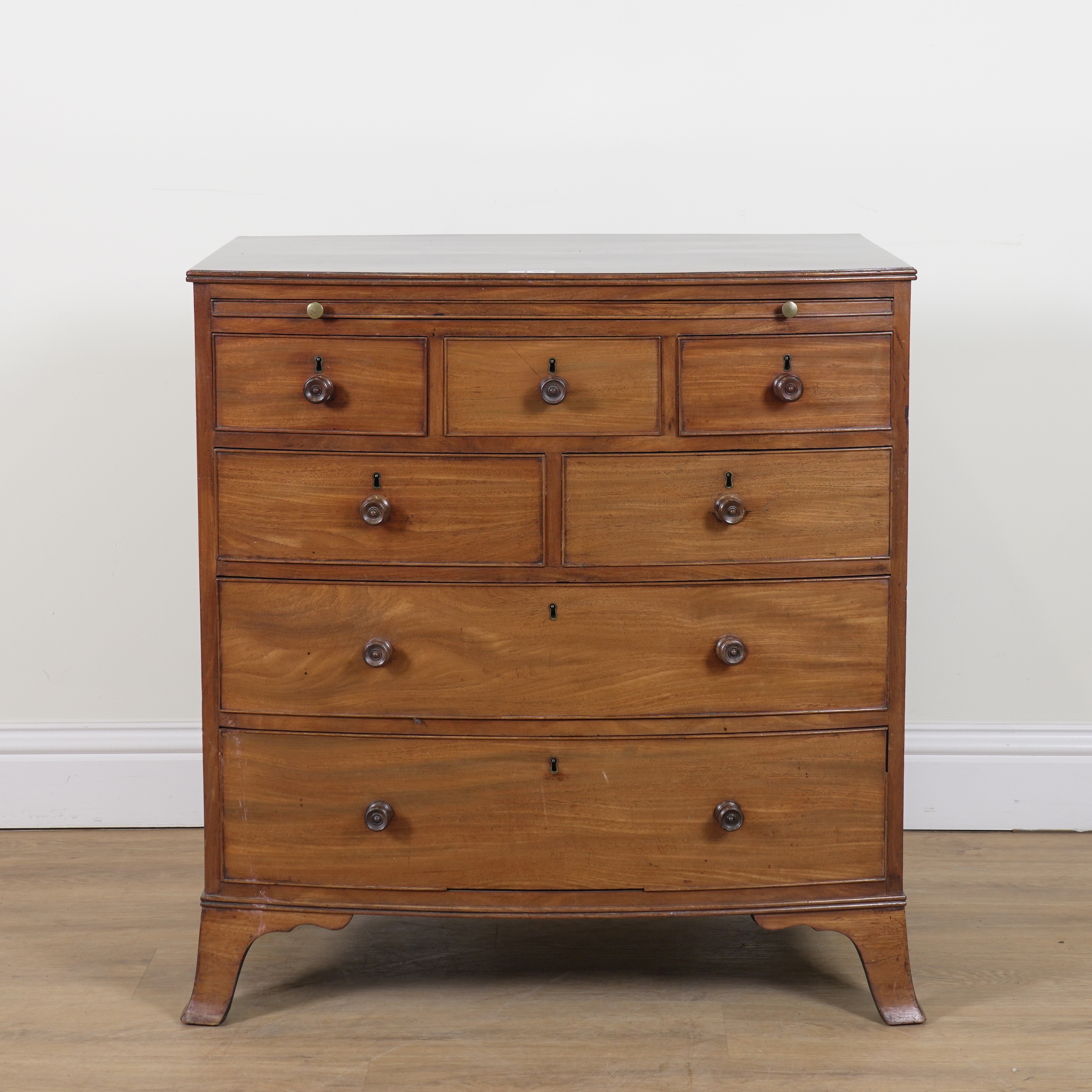 With brushing slide over an arrangement of seven drawers, 83cm wide; 53cm deep; 88cm high