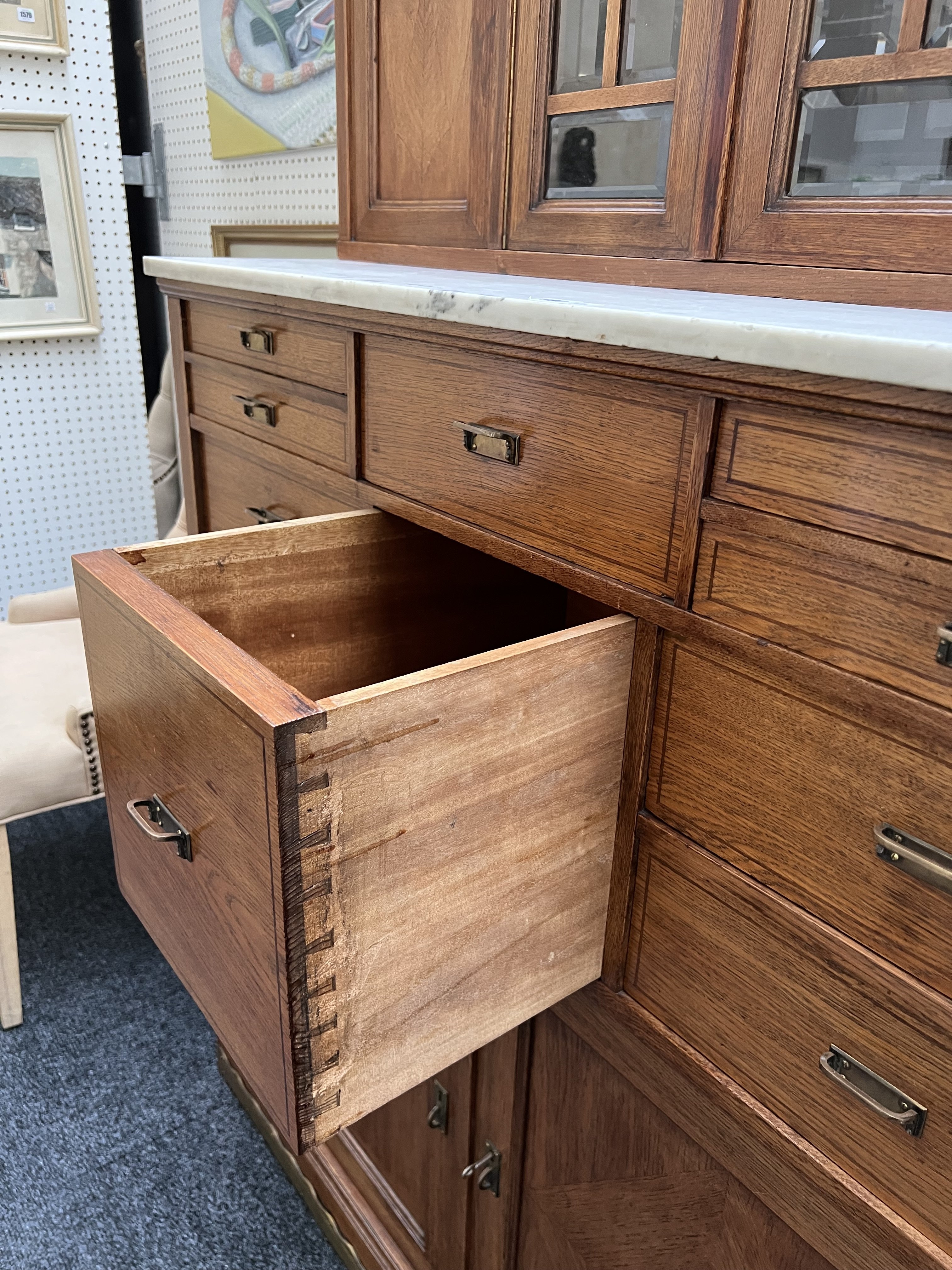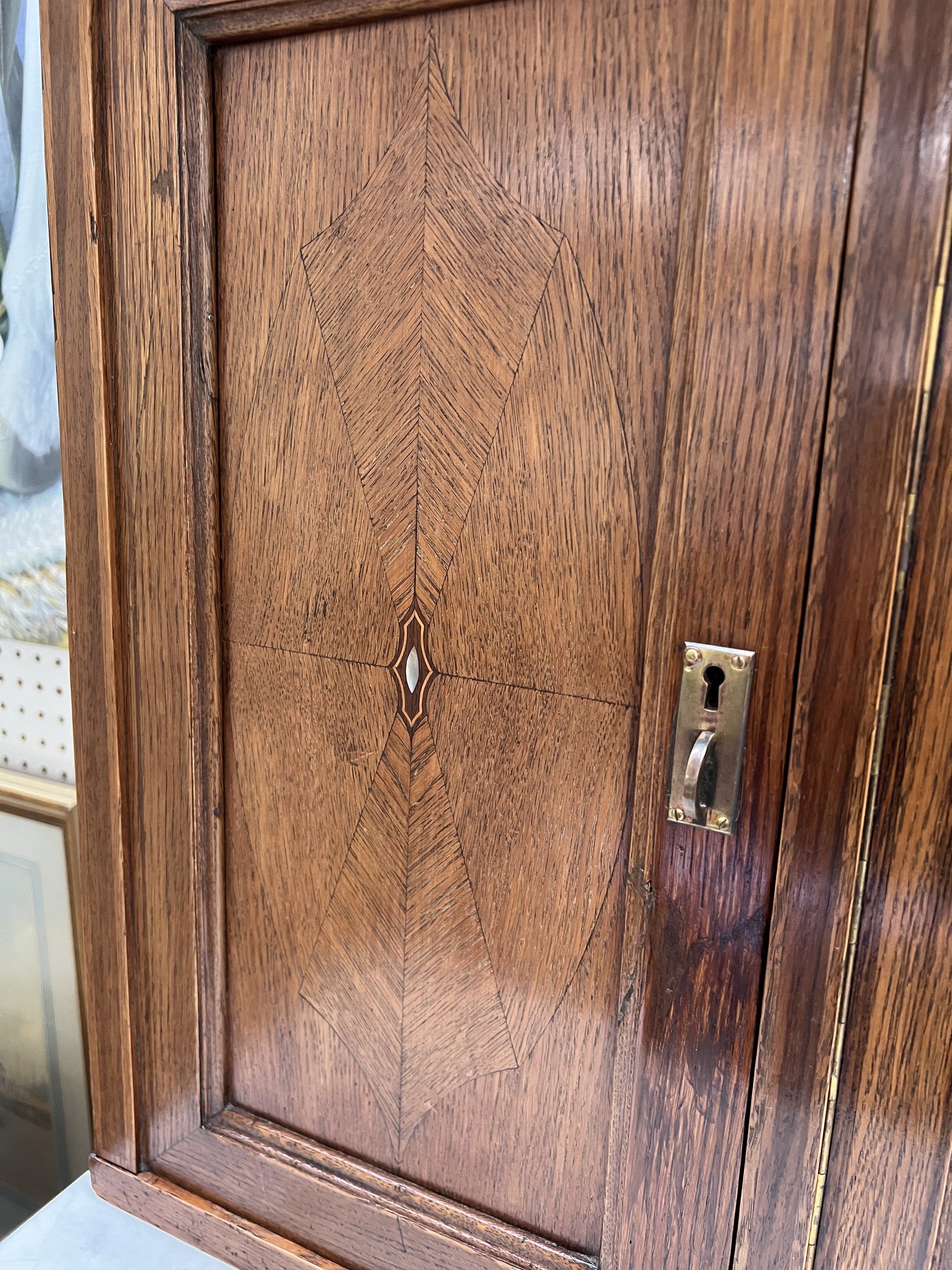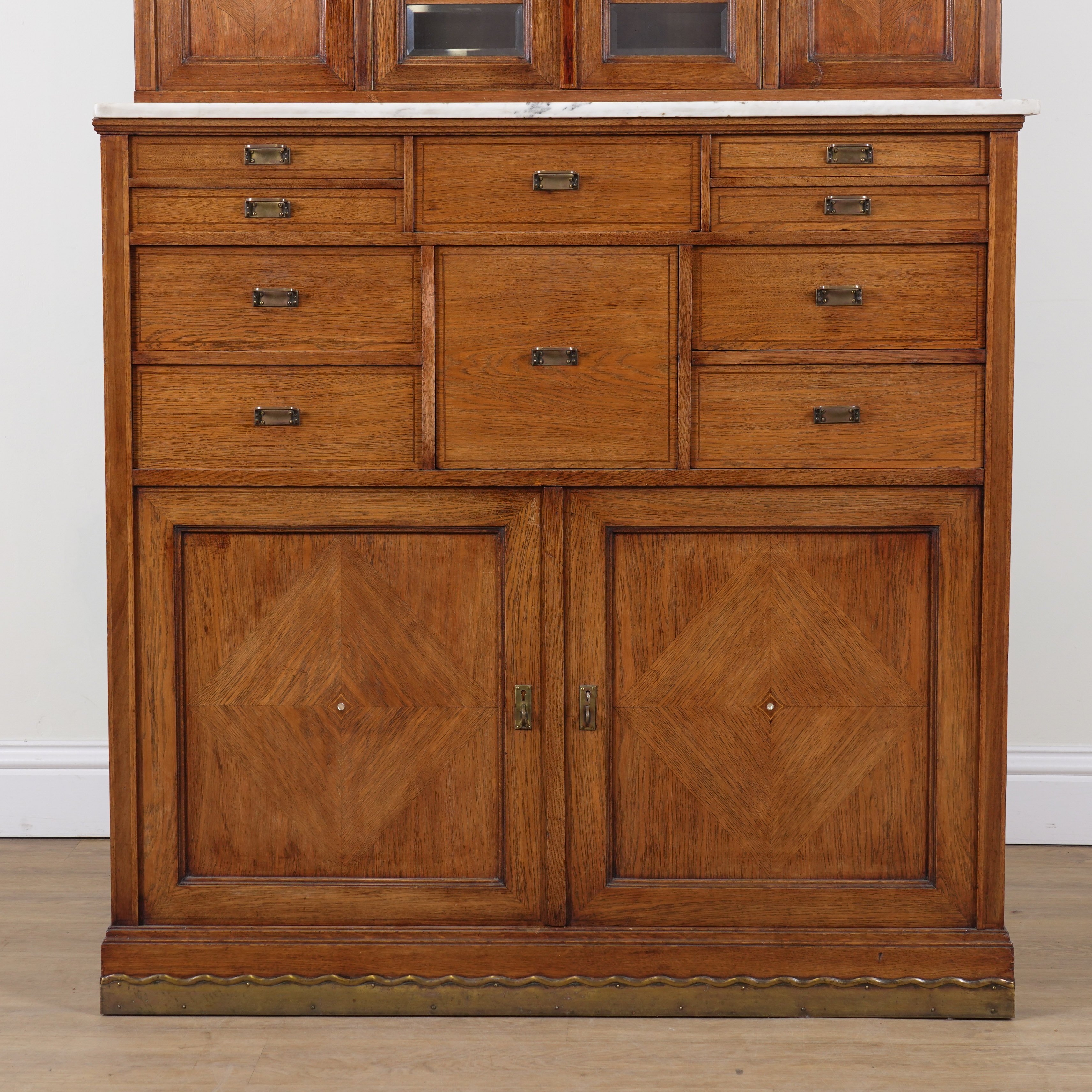 AN EARLY 20TH CENTURY INLAID OAK DENTIST'S CABINET