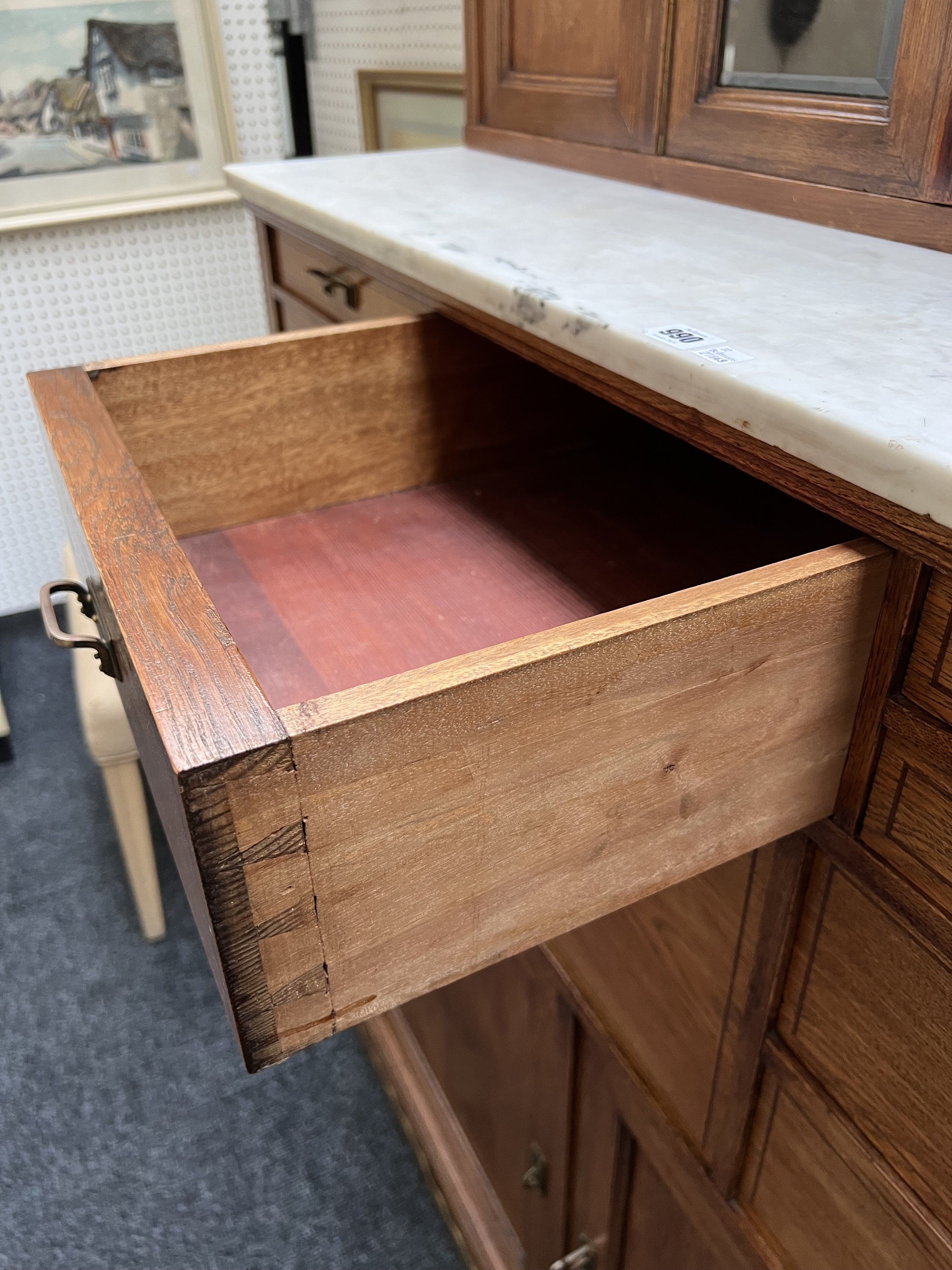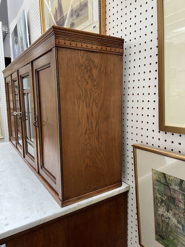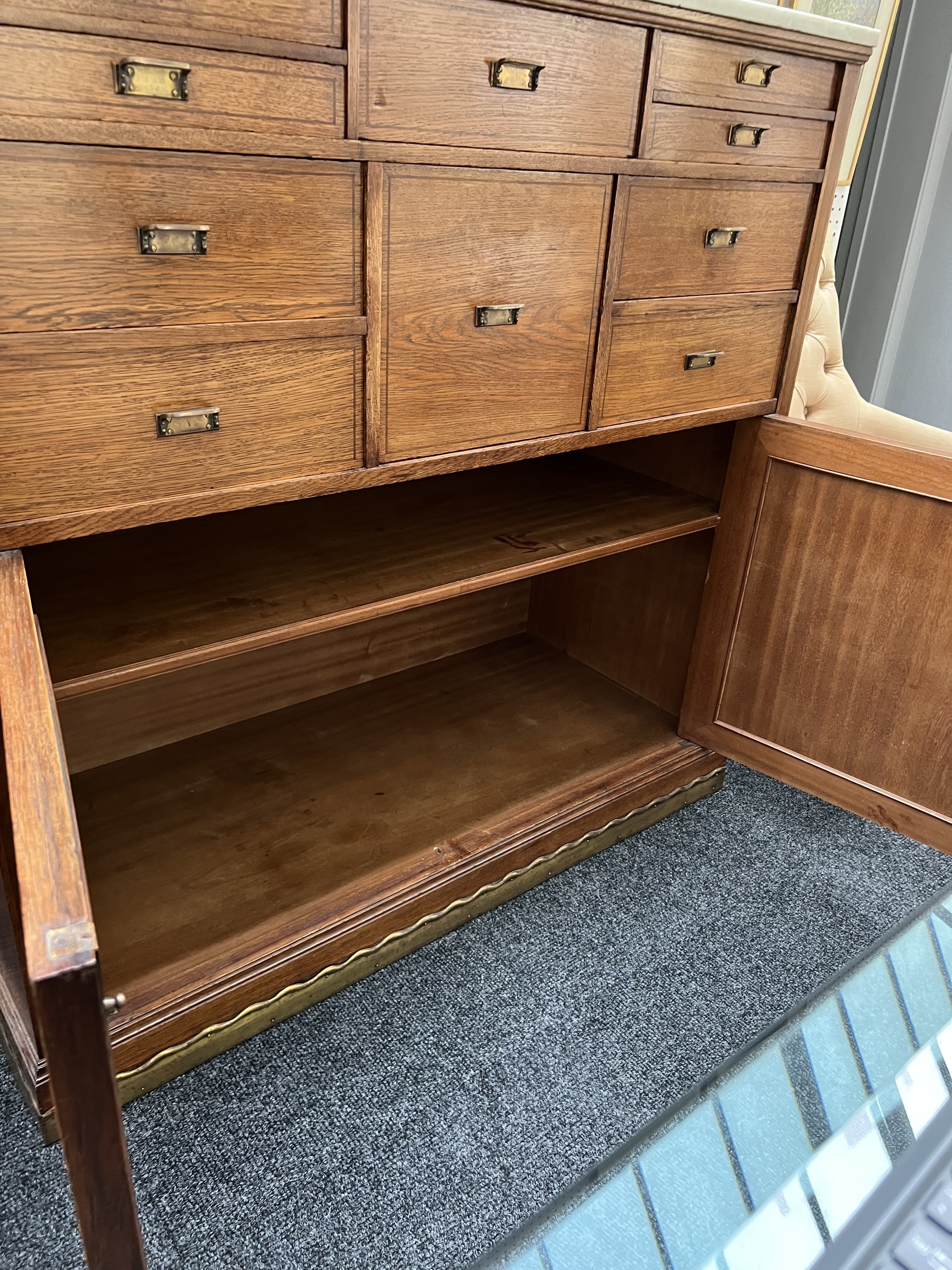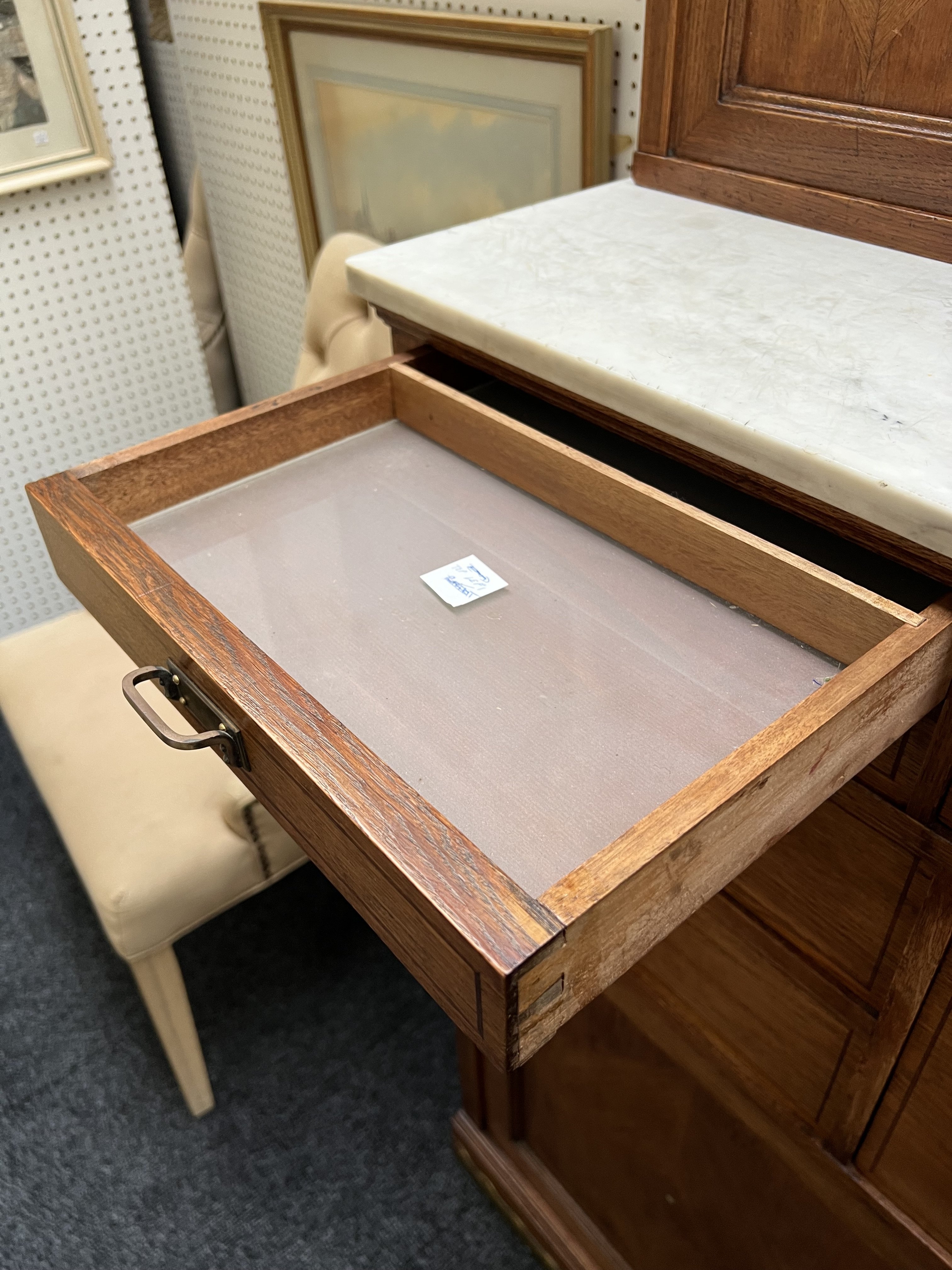 AN EARLY 20TH CENTURY INLAID OAK DENTIST'S CABINET