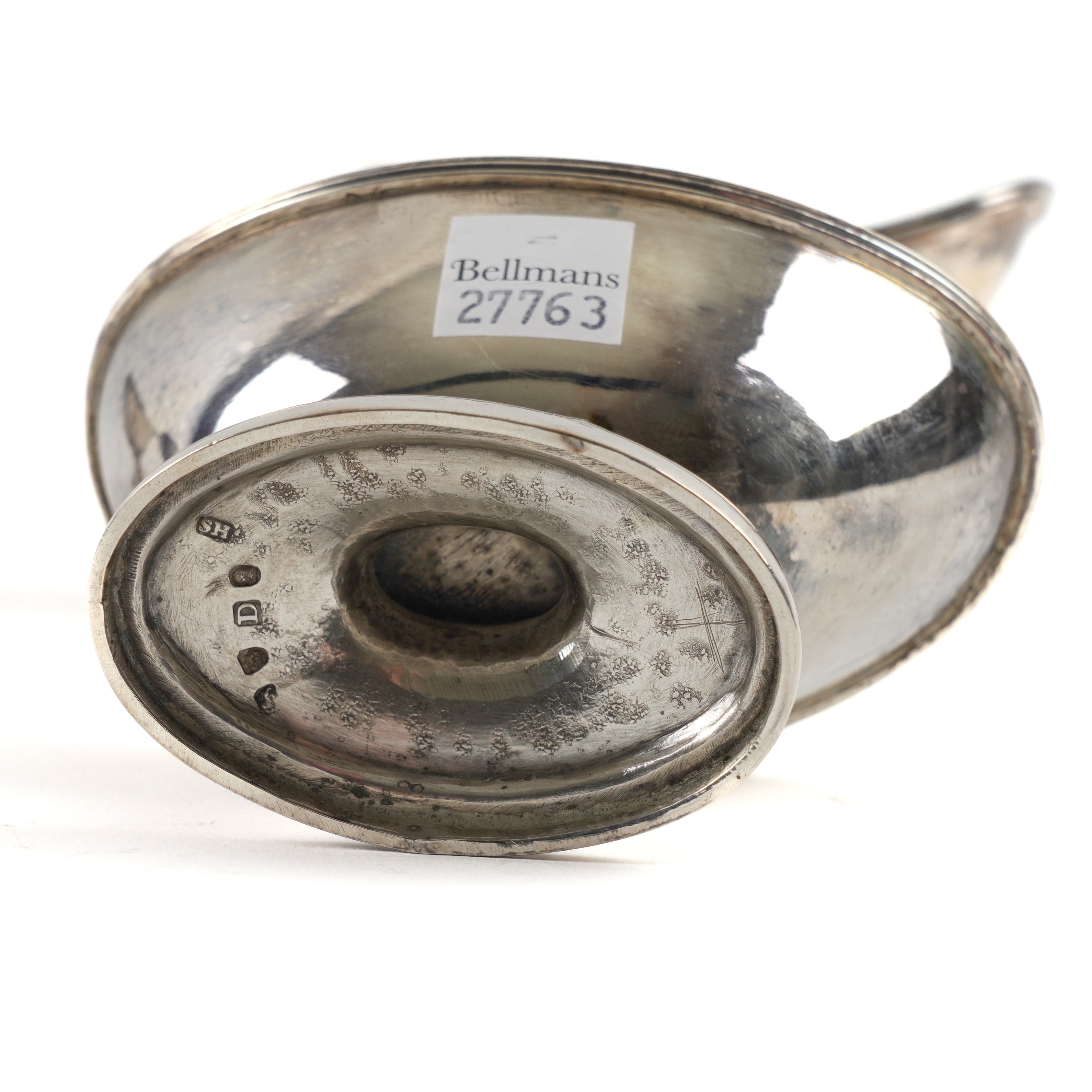 Each of oval form, the rim with a reeded band, crest and monogram engraved, raised on an oval foot, London 1799, maker Samuel Hennell, combined weight 325 grams