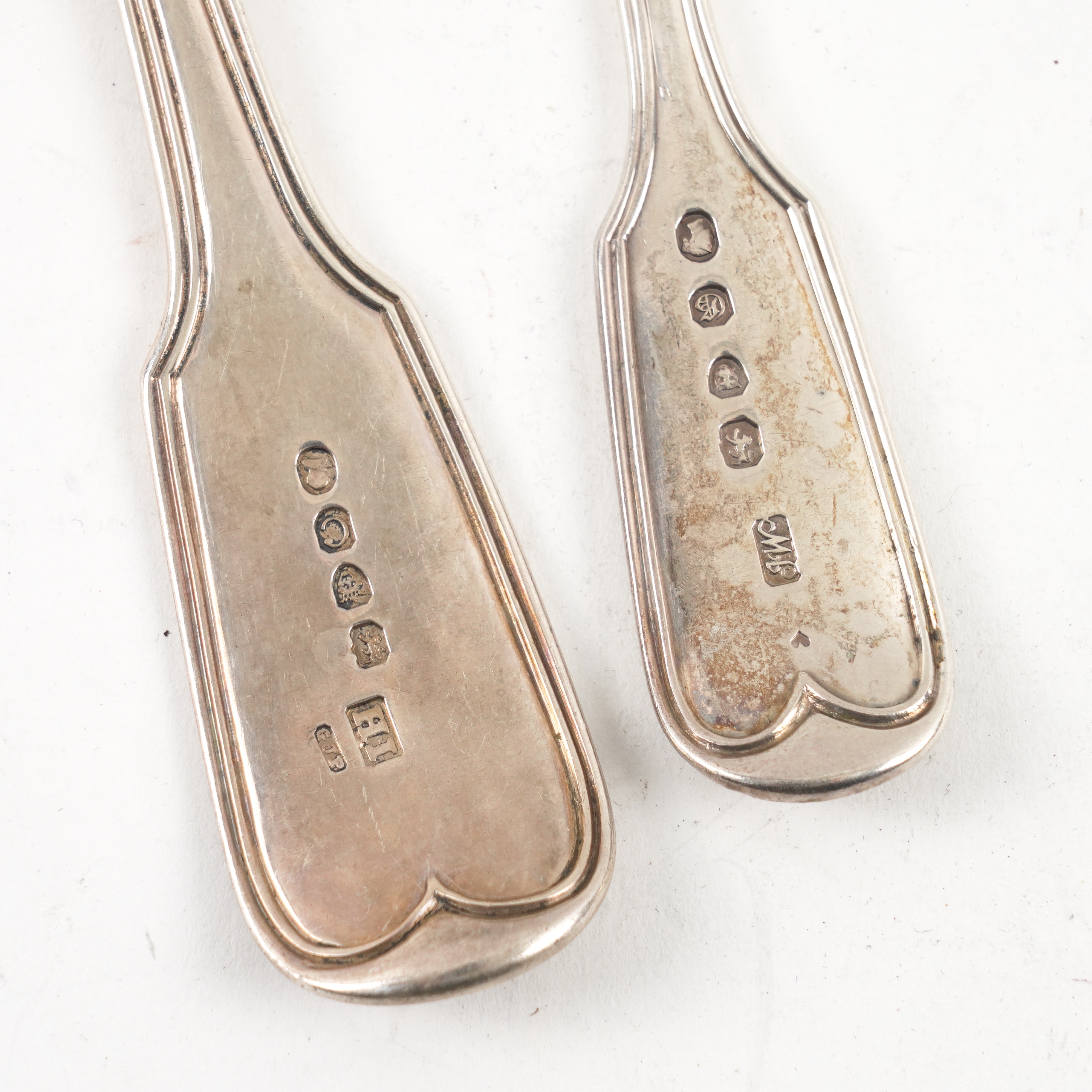 A GROUP OF SILVER DOUBLE STRUCK, FIDDLE AND THREAD PATTERN TABLE FLATWARE (5)