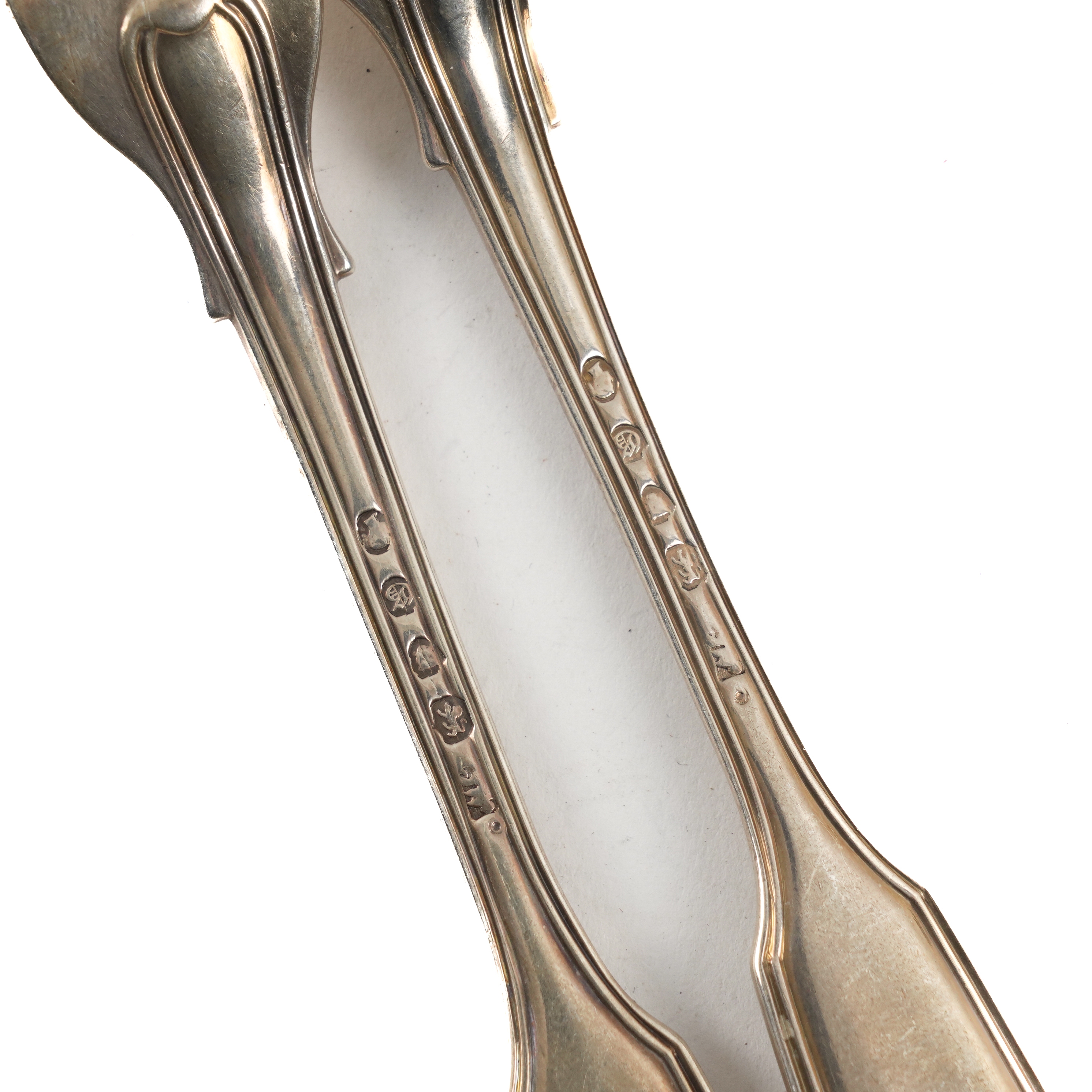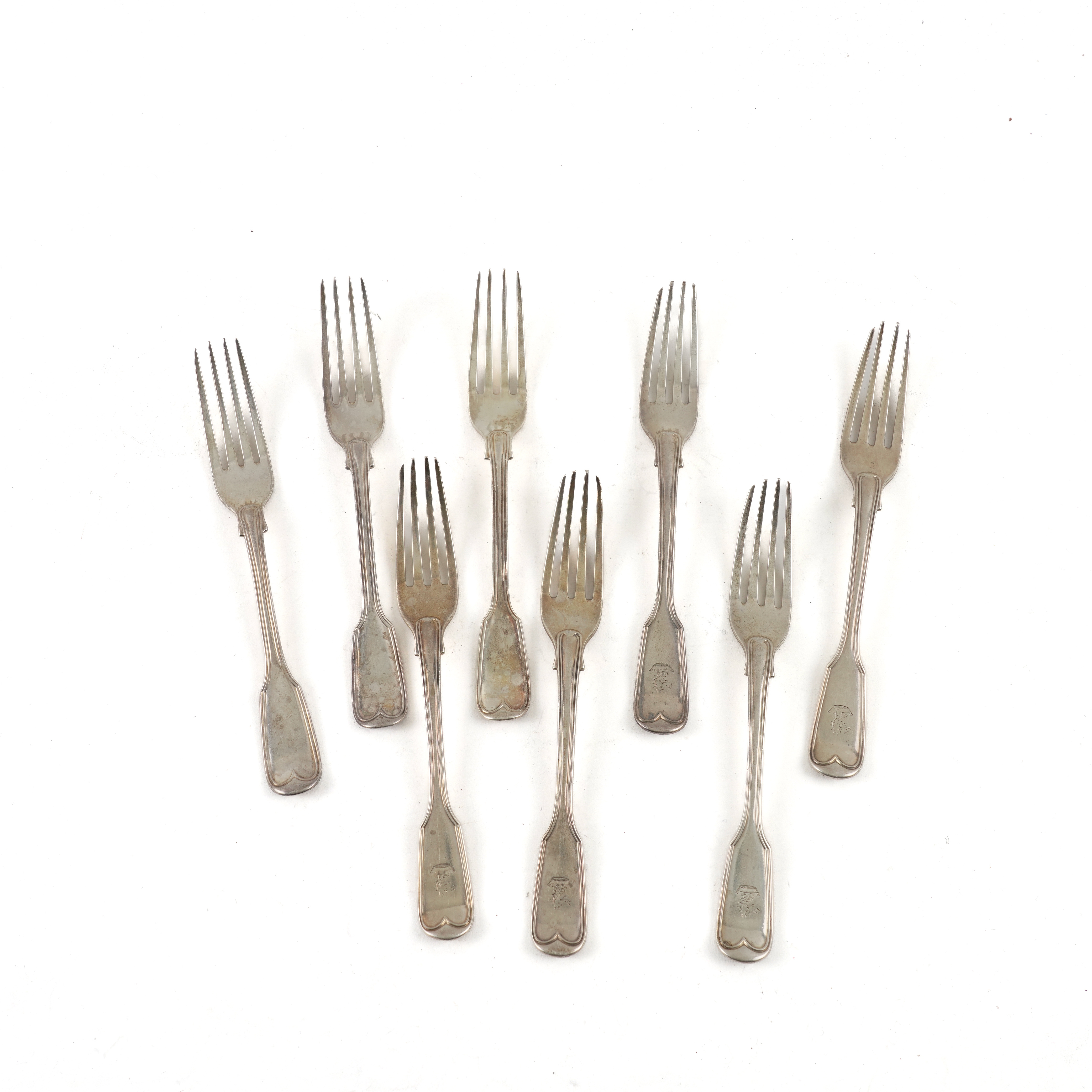 EIGHT SILVER DOUBLE STRUCK FIDDLE AND THREAD PATTERN DESSERT FORKS (8)