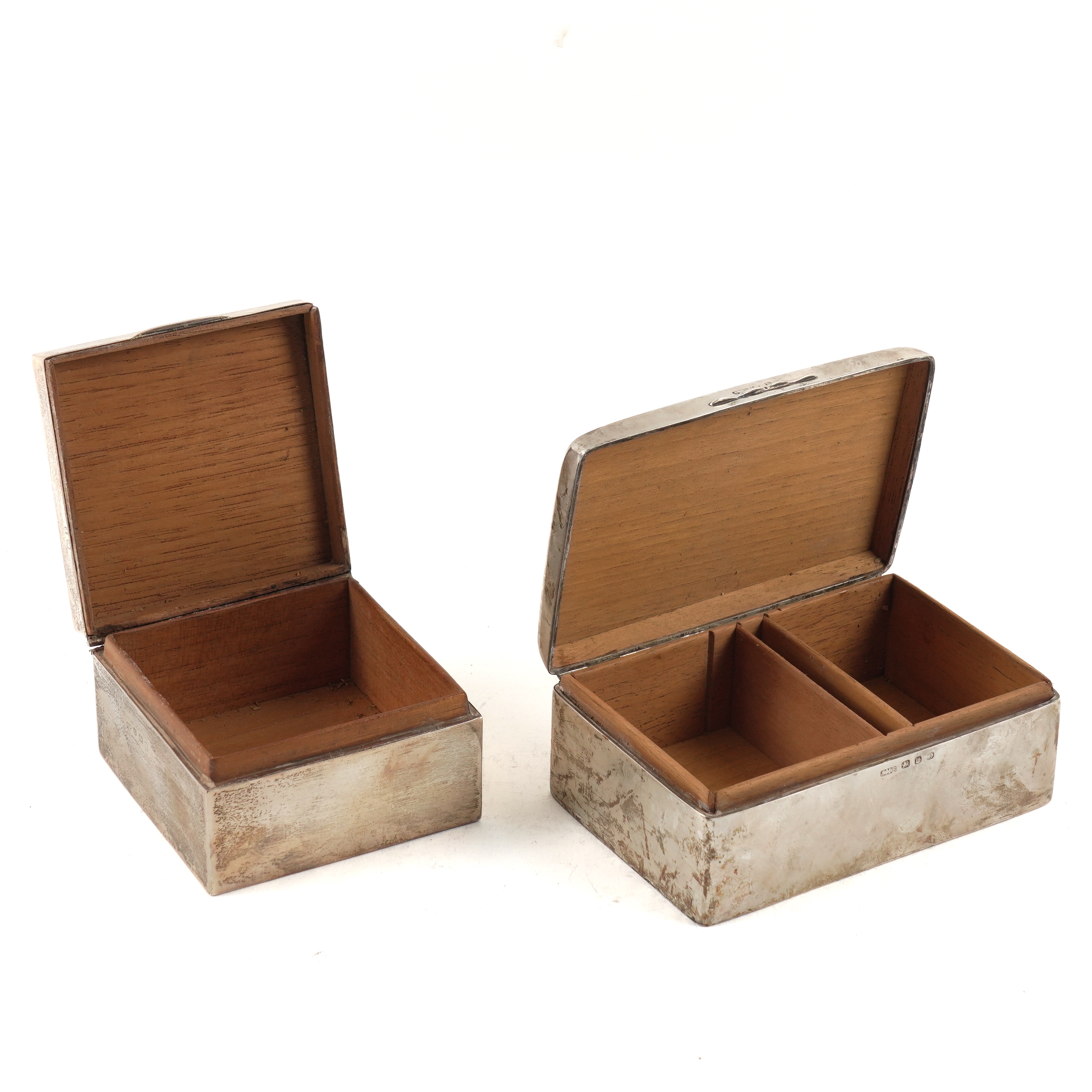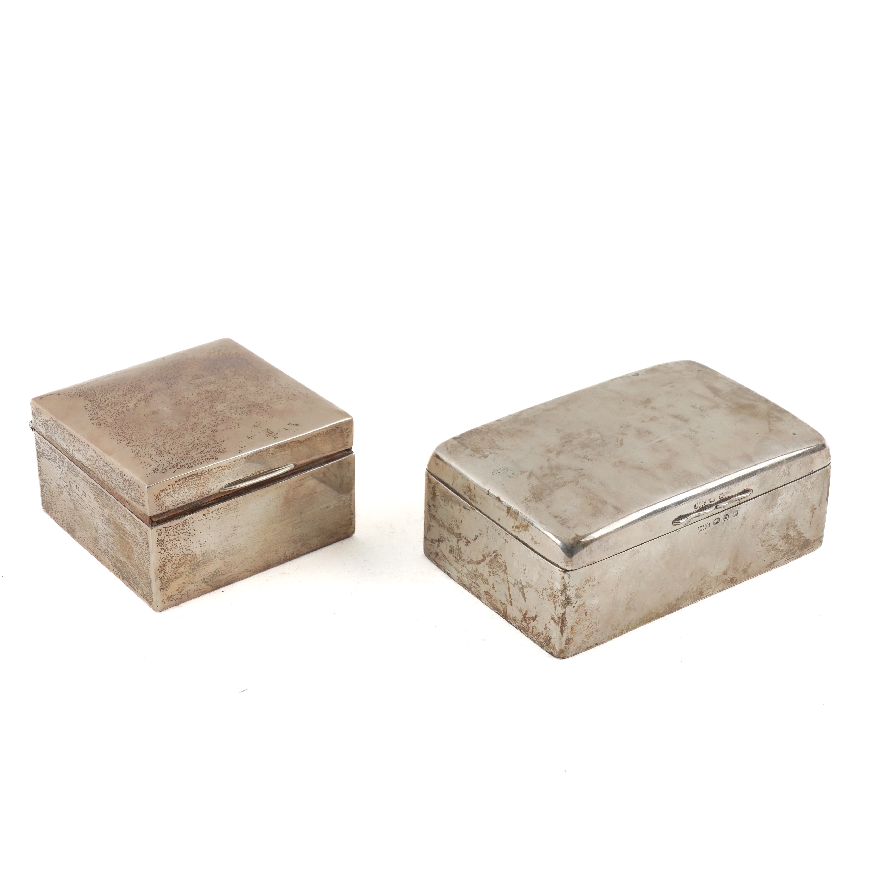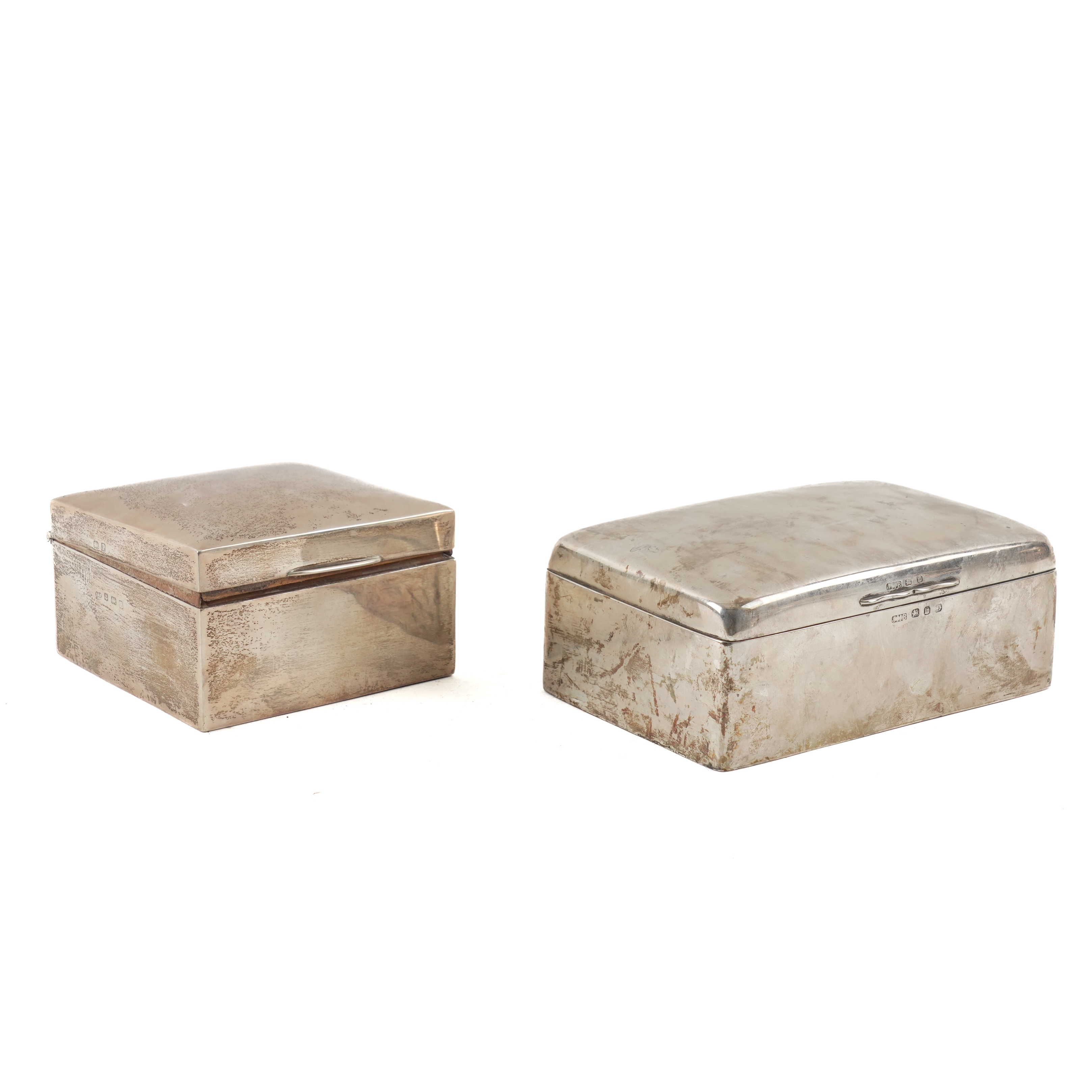 Both wooden lined within, the larger 13.7cm x 9cm, Birmingham 1896, the smaller 9.3cm x 9.2cm, Birmingham 1914