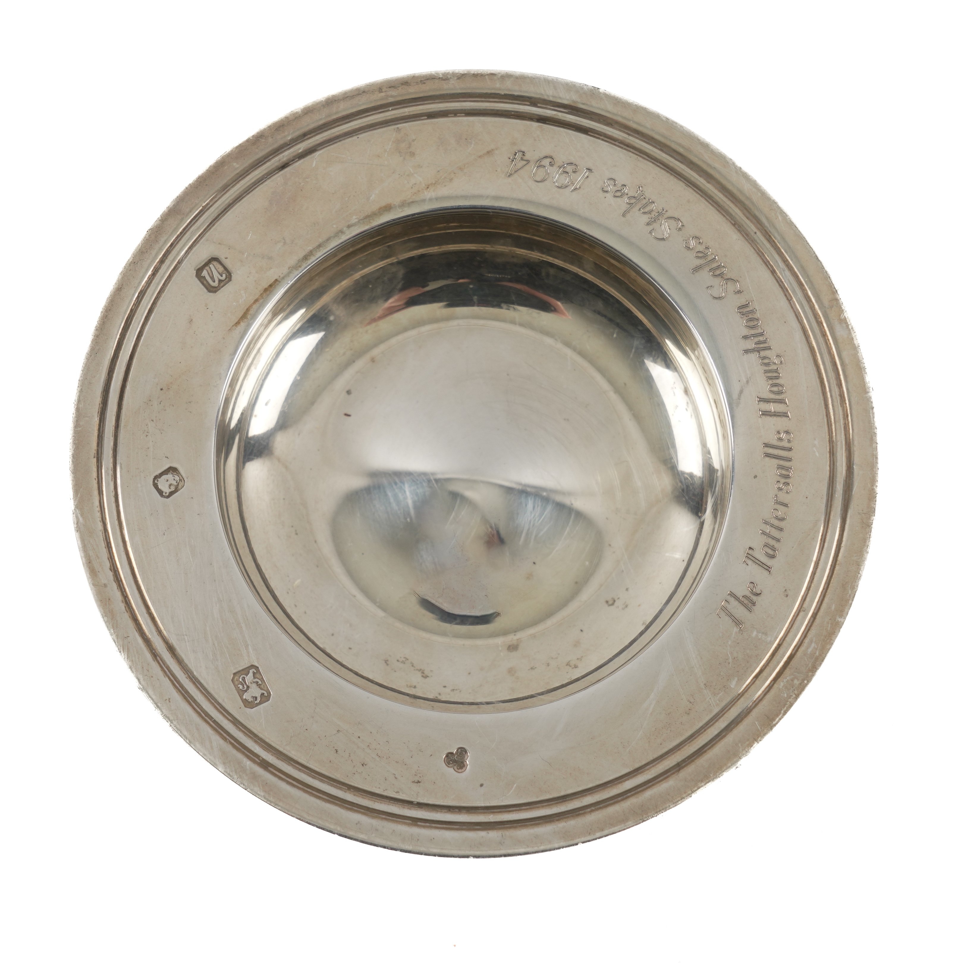 A SILVER SOUP LADLE, A PIN DISH AND A SALT (3)