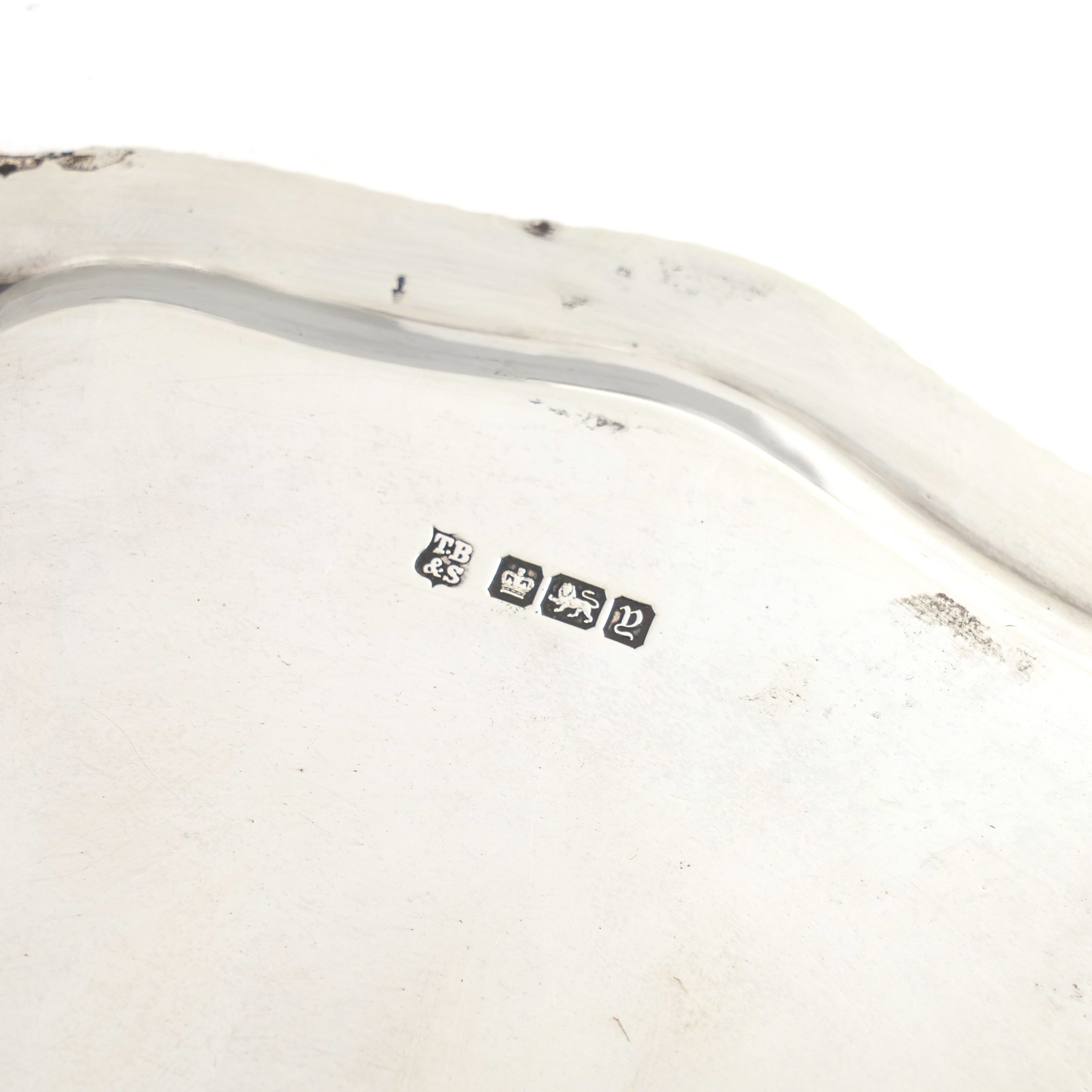 A SILVER SHAPED CIRCULAR SALVER
