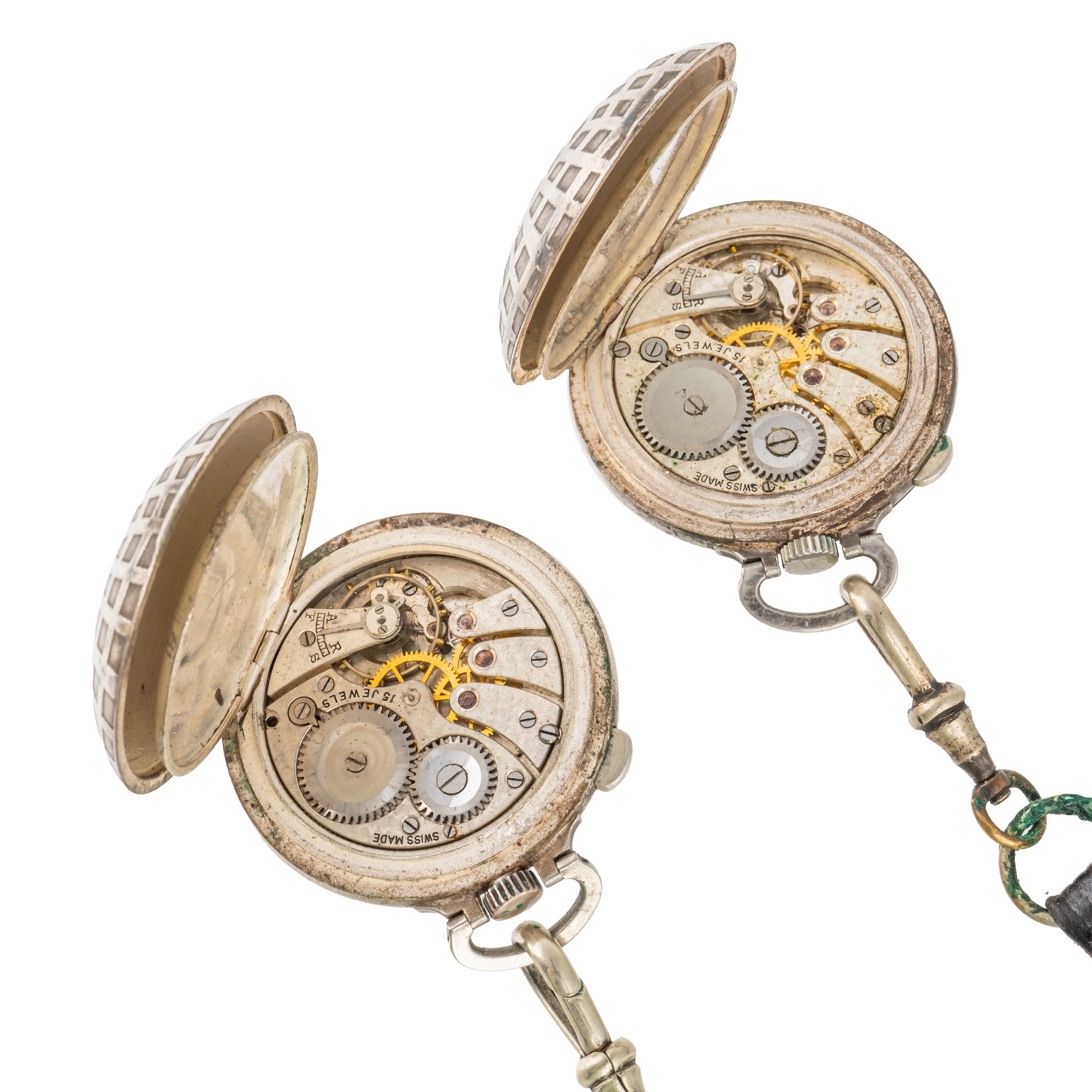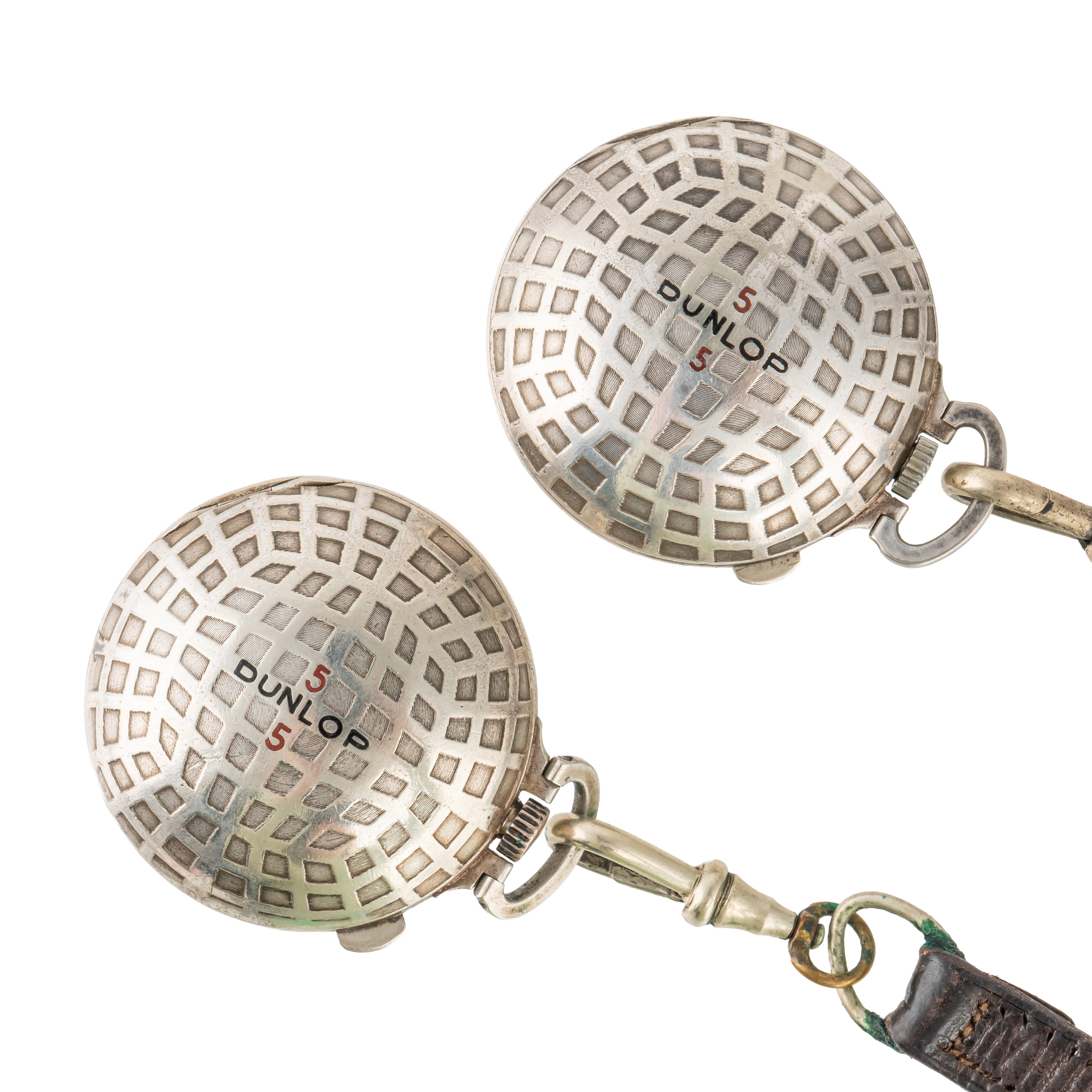 TWO SILVER PLATED NOVELTY GOLF BALL SHAPED HUNTING CASED FOB WATCHES (2)