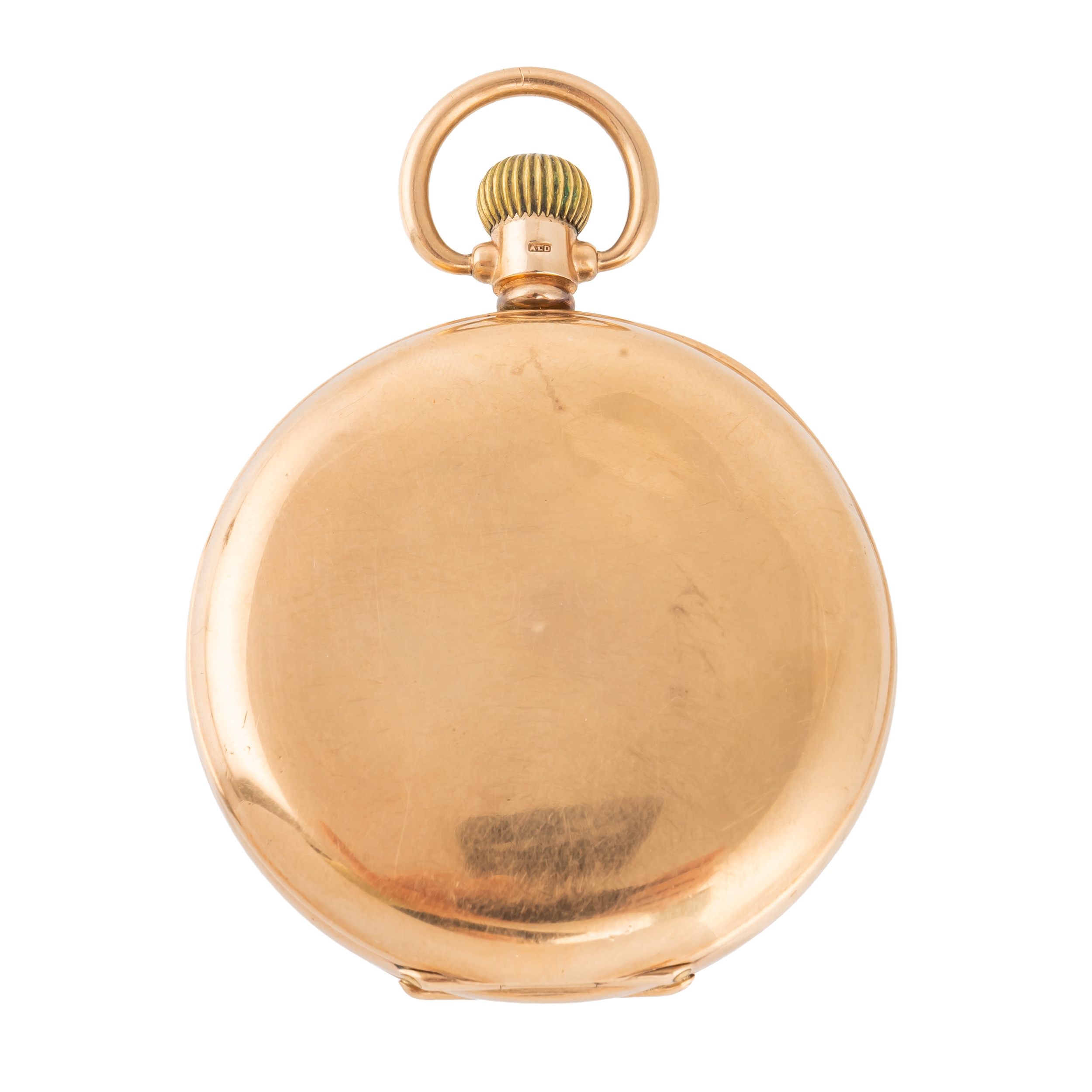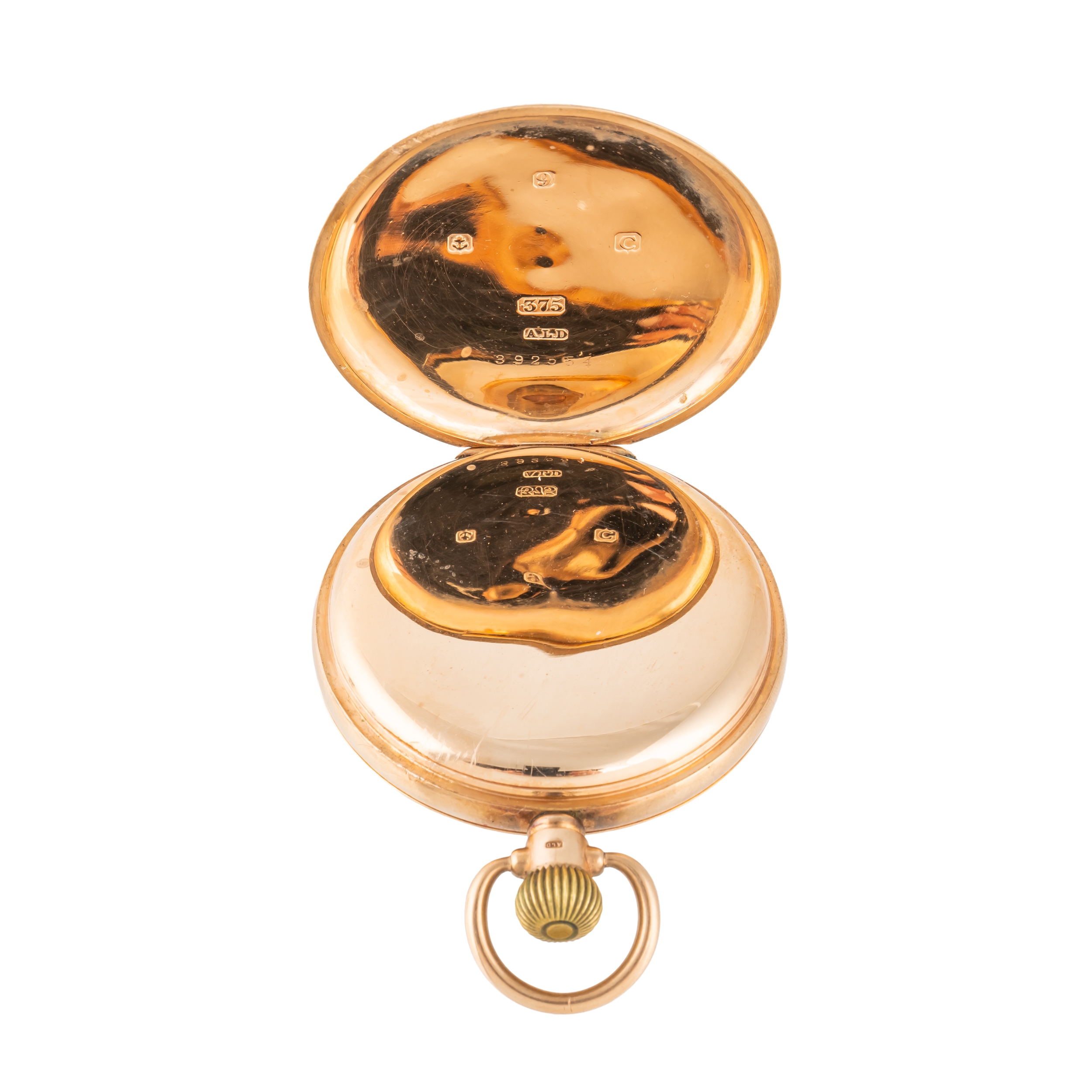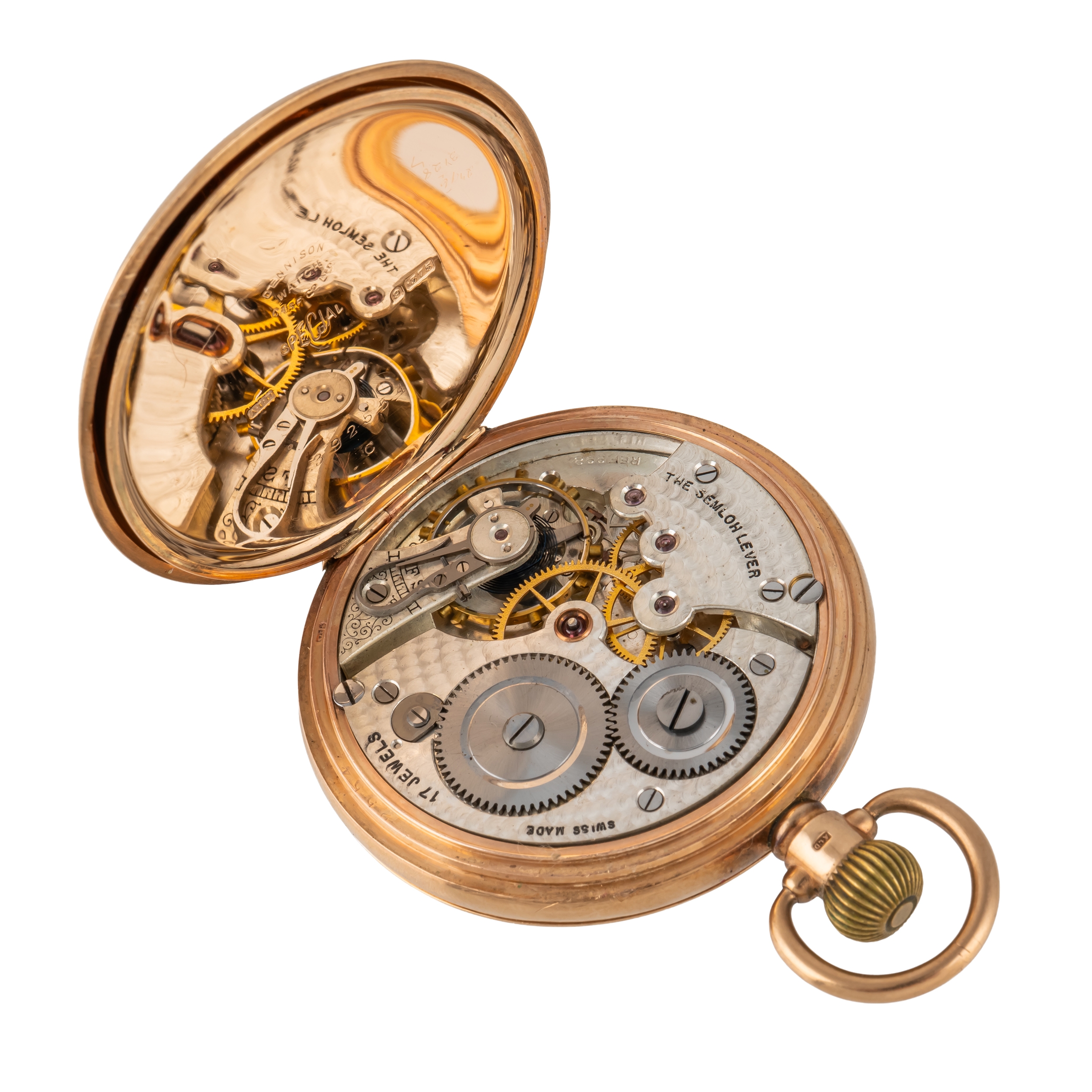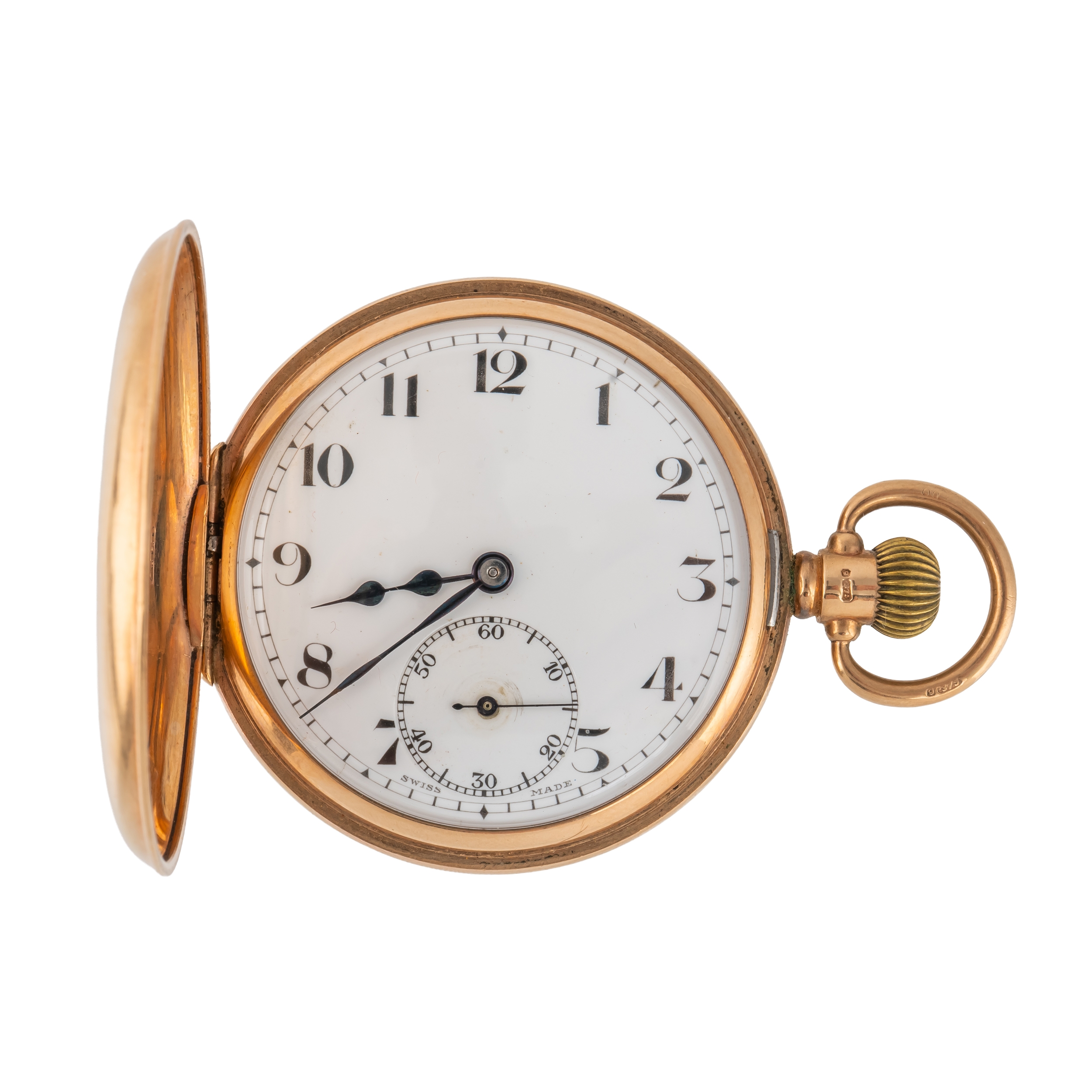 The jewelled lever movement with precision regulation, detailed The Semloh Lever, Swiss Made, 9ct gold inner case, the enamelled dial with black Arabic numerals, subsidiary seconds and with blued steel hands, Birmingham 1927, case diameter 49mm, gross weight 93.5 grams