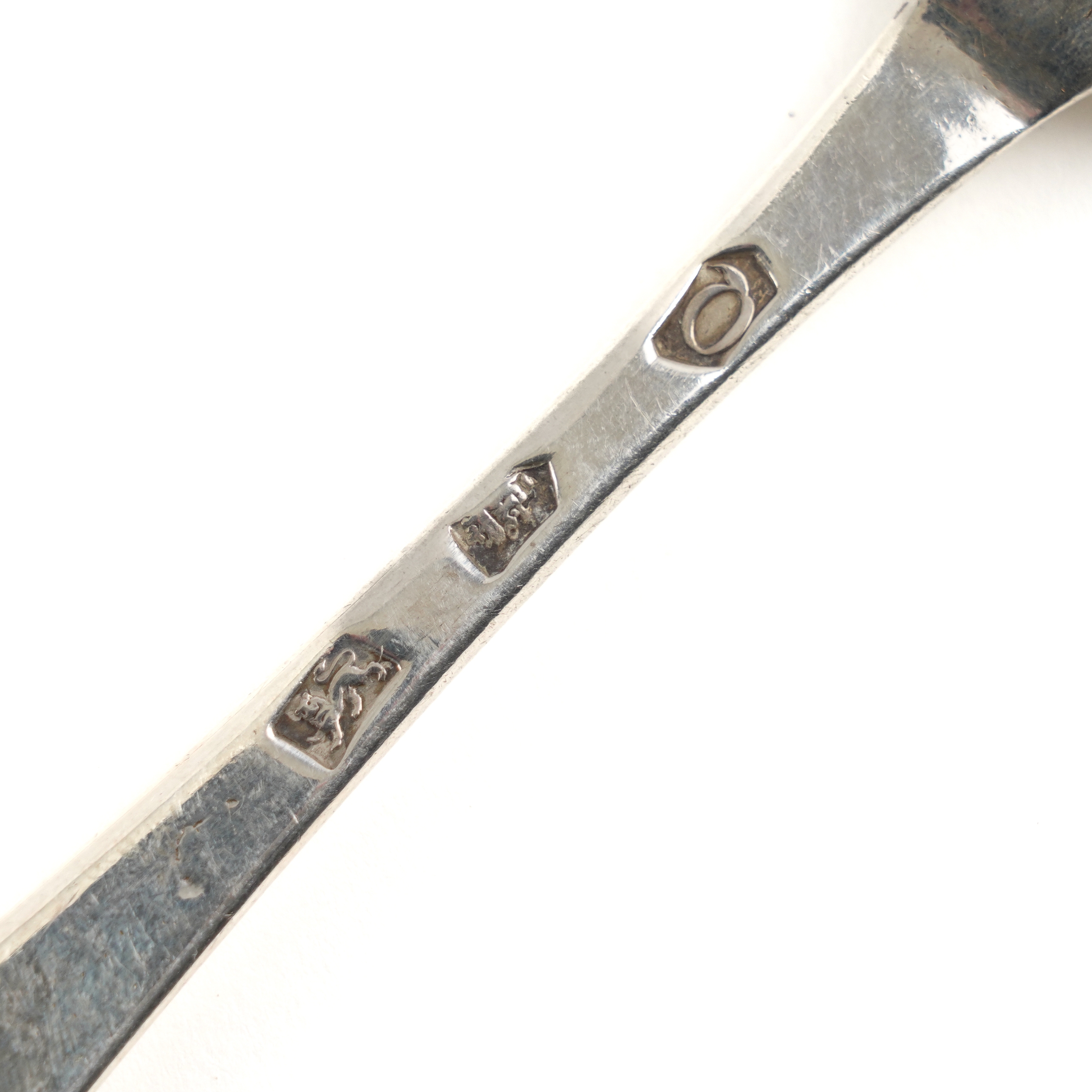 Comprising; a George II single example, London 1731 and two further examples, having trefid ends, these two engraved with cockerel crests, the hallmarks indistinct, combined weight 141 grams